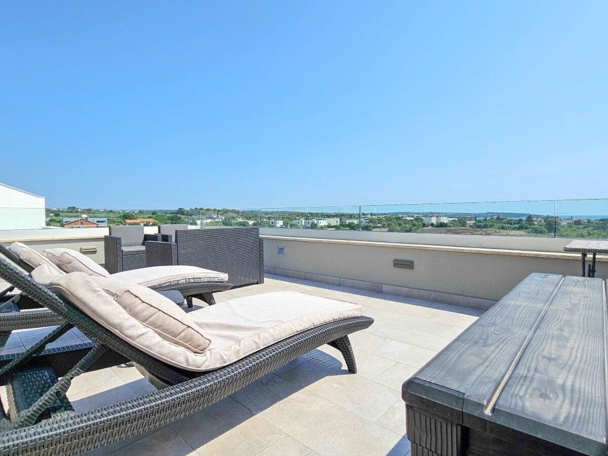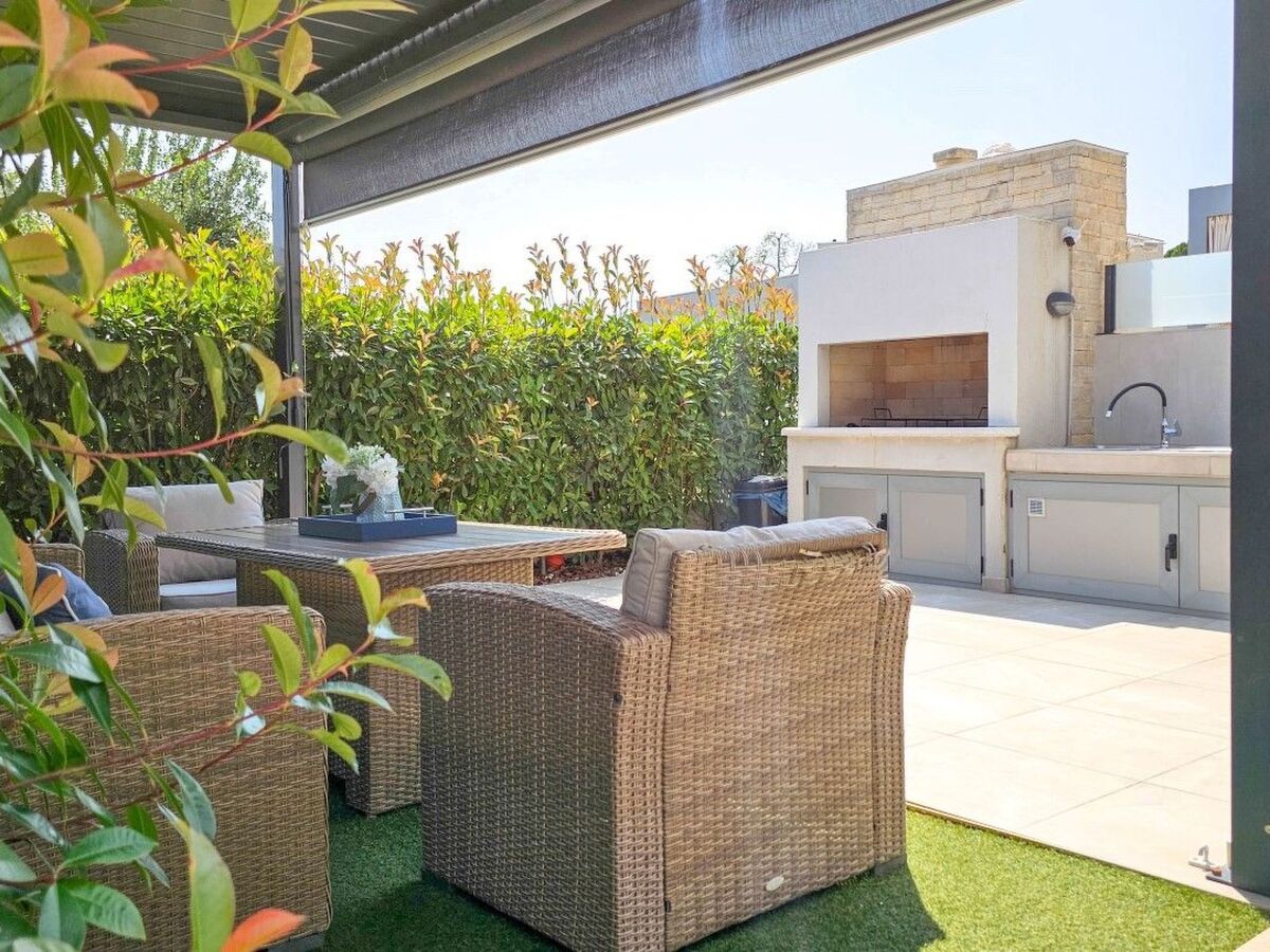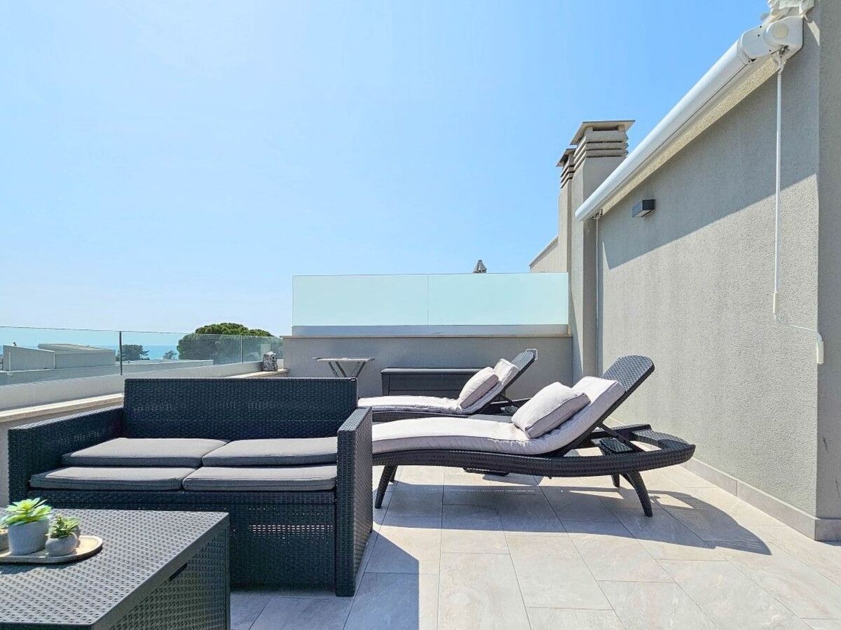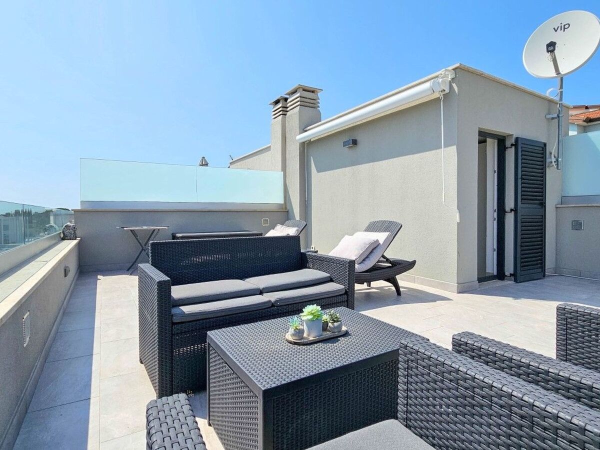 The roof terrace with seating is perfect for enjoying the sunsets and the panoramic view of the marina and the Old Town, while the ground floor terrace equipped with garden furniture, a barbecue and a sink is ideal for relaxed evenings with a barbecue and socializing.