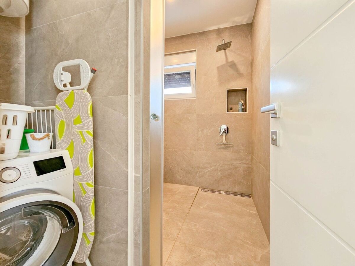 On the ground floor of the house there is a modern equipped kitchen with a dining room, a spacious living room with a sofa bed for 2 people, one bathroom and a laundry room.