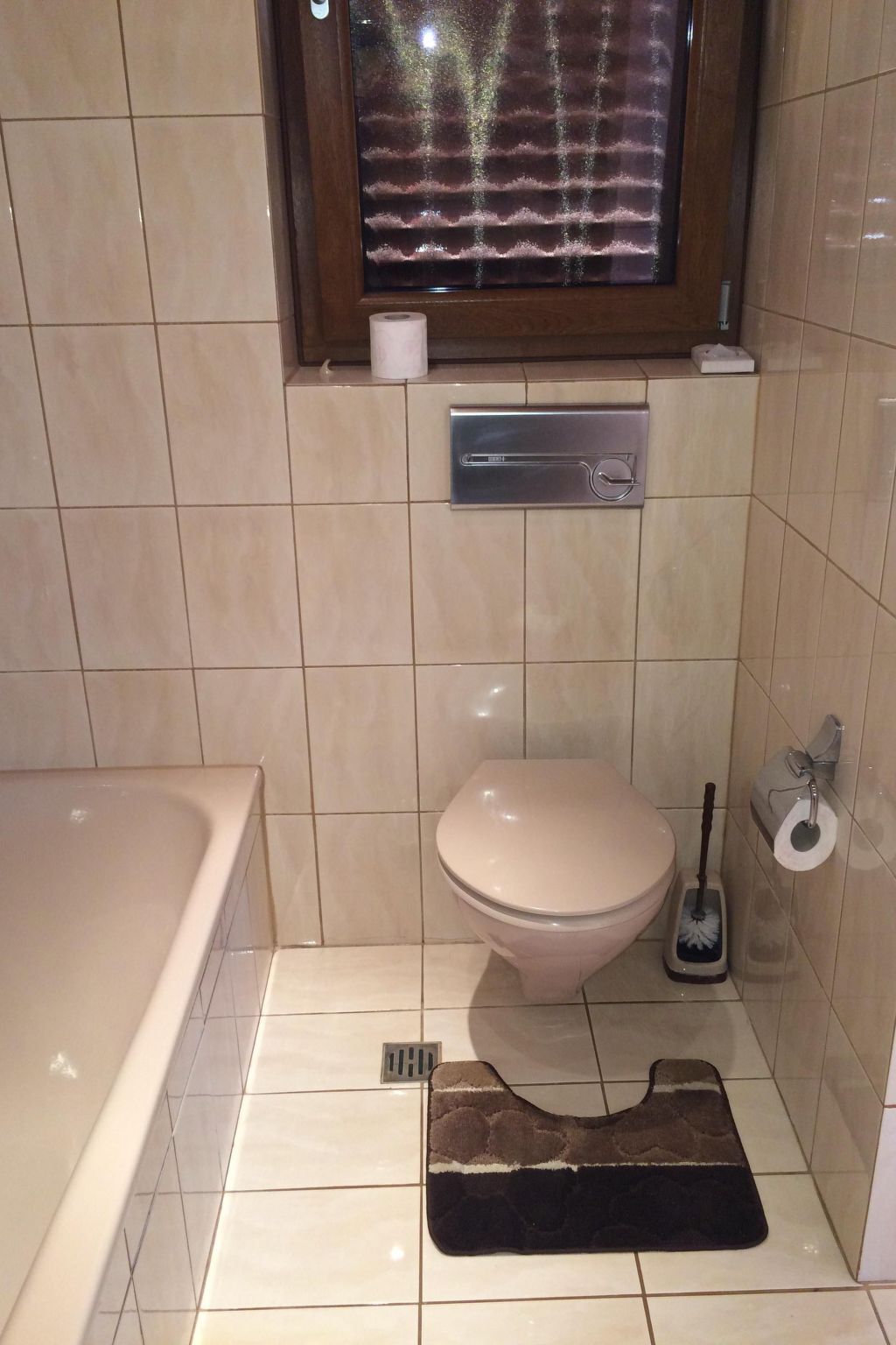 The big bathroom comprises a bath, a shower, two washbasins and a toilet.