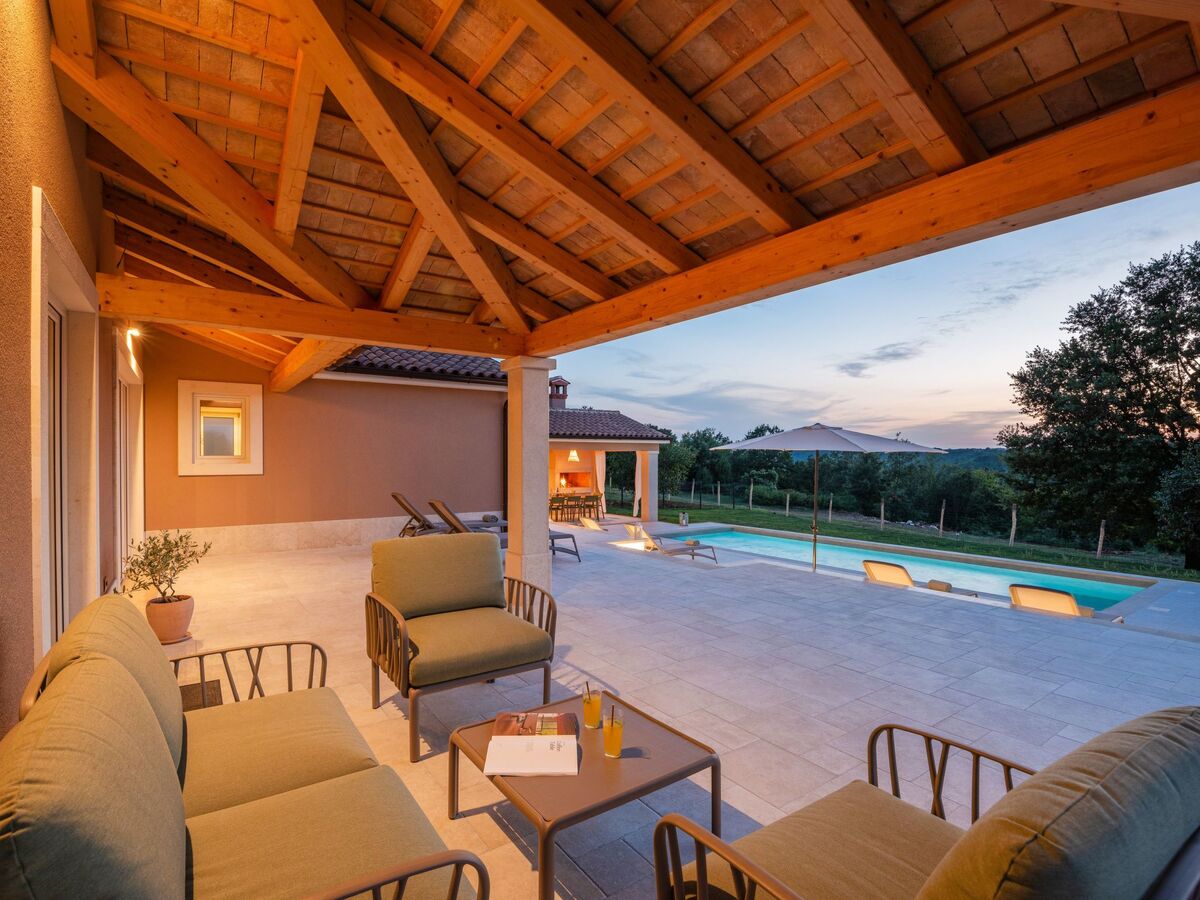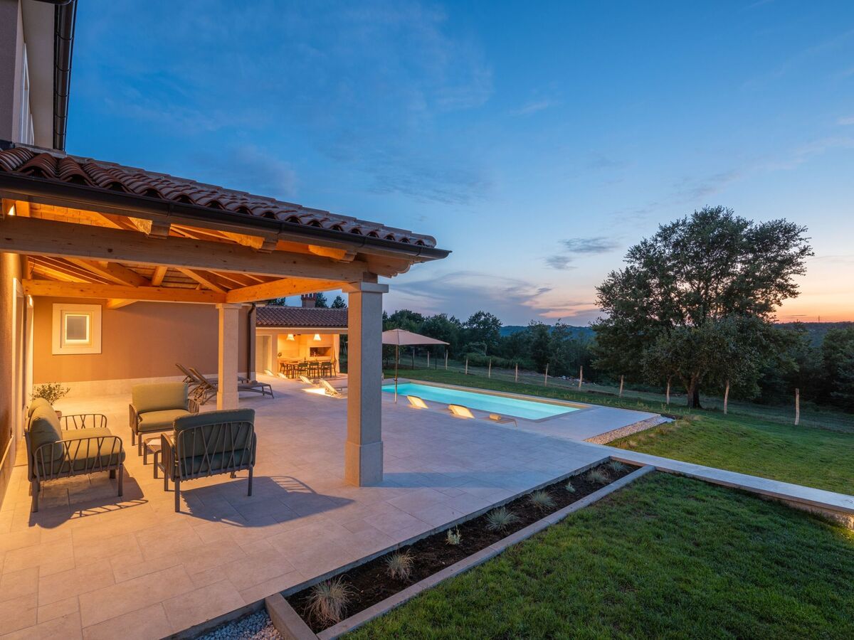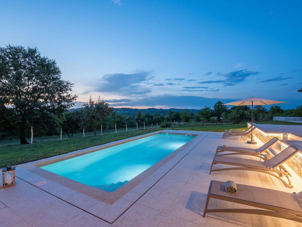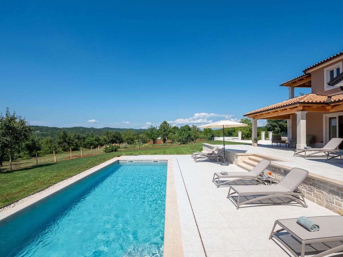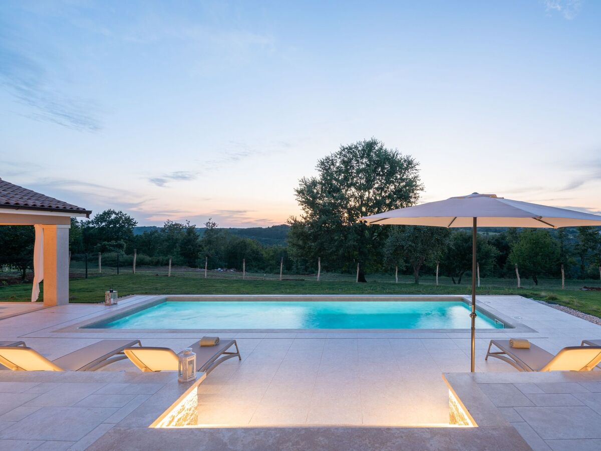 Villa Sentiero is a newly built, modern holiday home on a hill with a beautiful panoramic view of the green interior of Istria, not far from Pazin and only 25 minutes by car from Poreč and beautiful beaches.