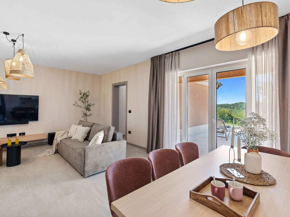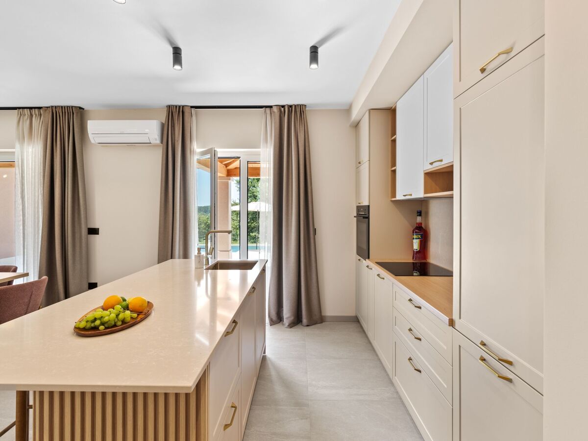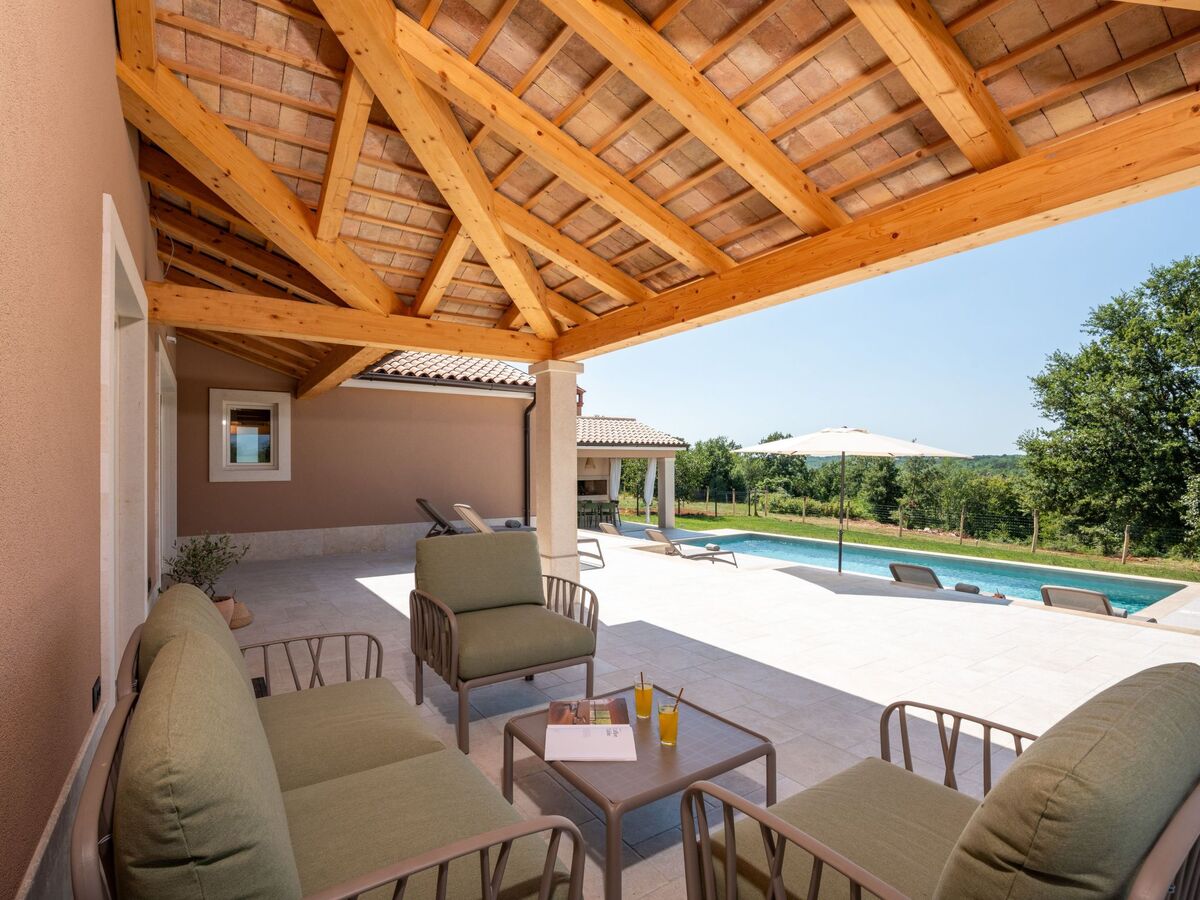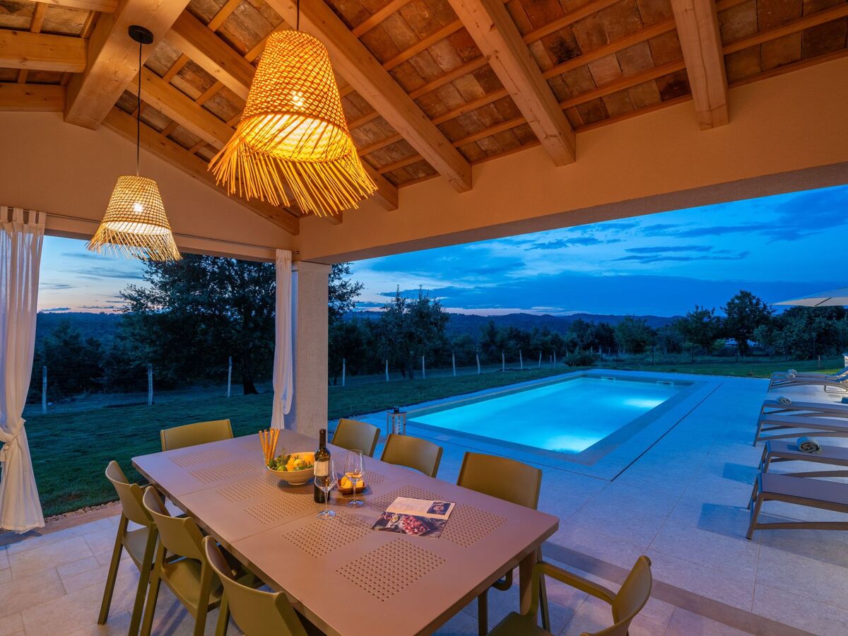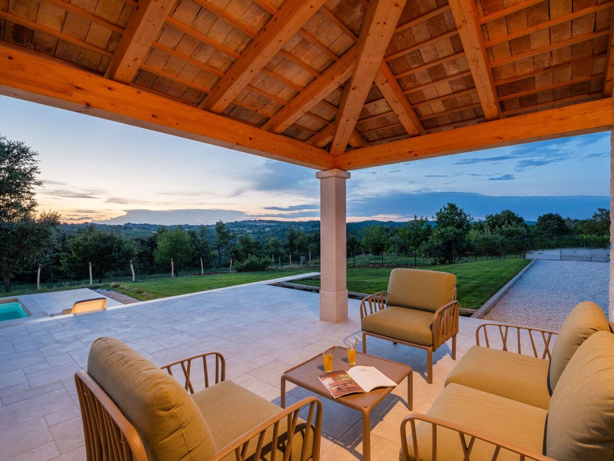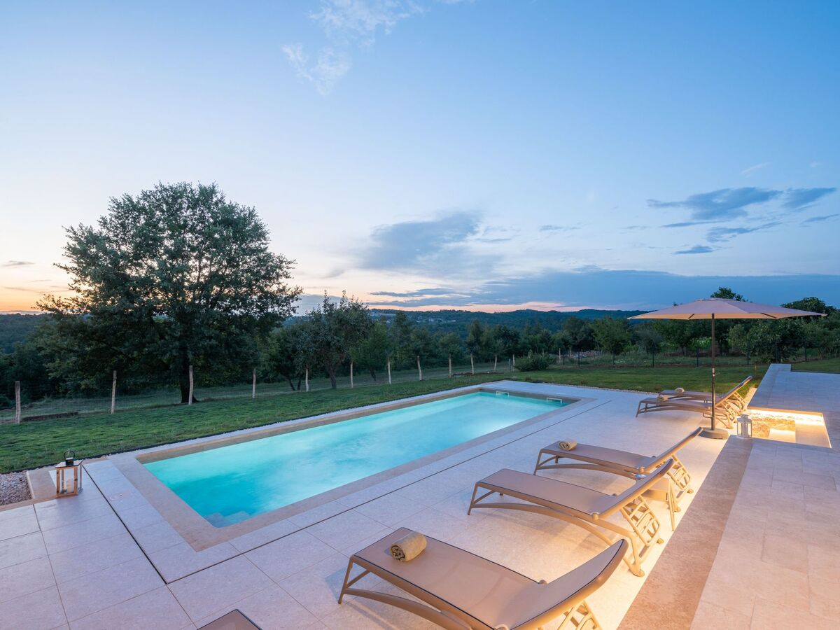 Villa Sentiero is a newly built, modern holiday home on a hill with a beautiful panoramic view of the green interior of Istria, not far from Pazin and only 25 minutes by car from Poreč and beautiful beaches.