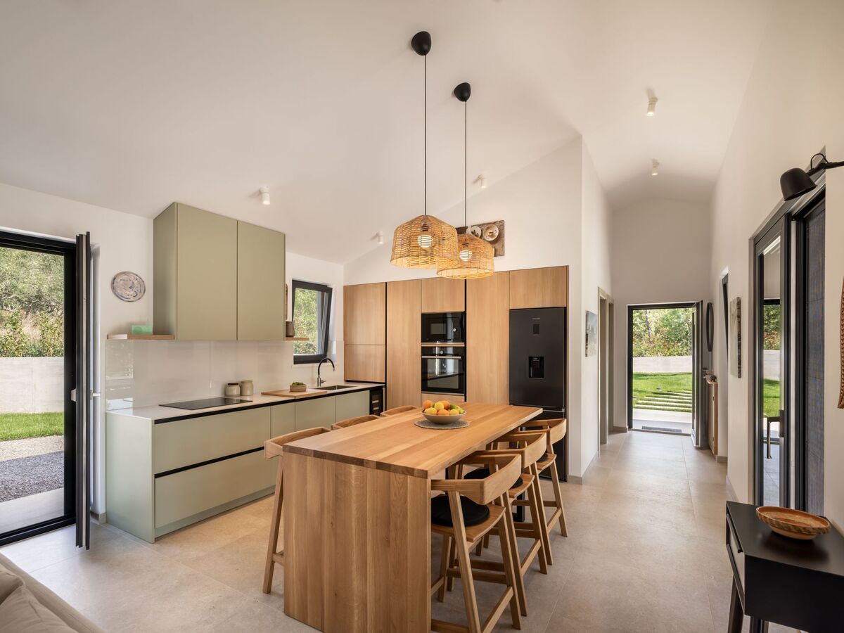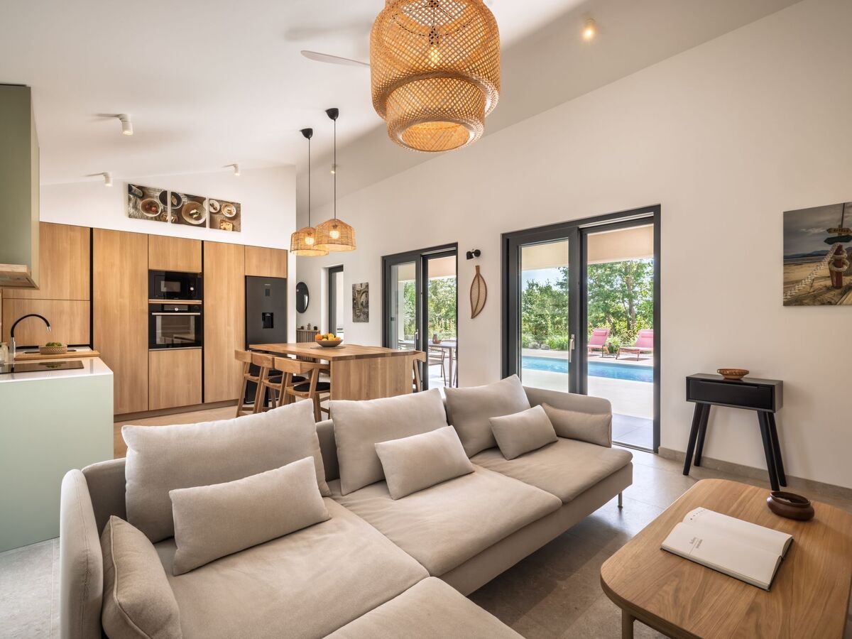 Outside, guests can unwind by the private 30 m² swimming pool or enjoy the shade of the spacious terrace.