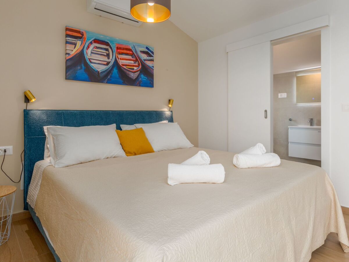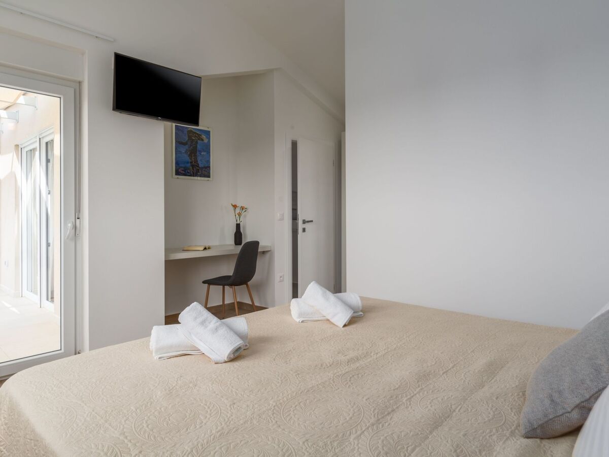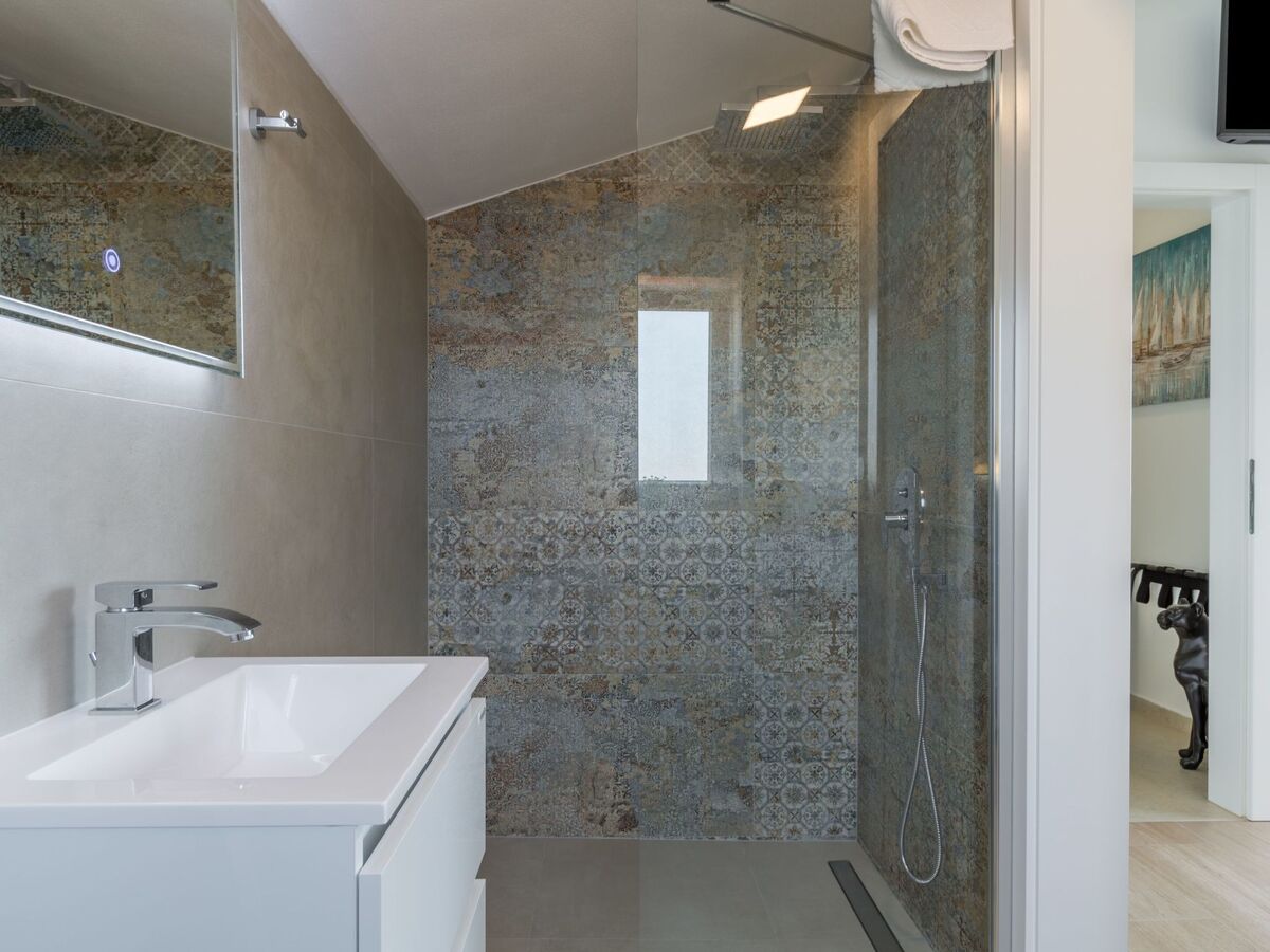 On the upper floor, guests will find two further double bedrooms, each with a private shower/WC and a shared terrace with breathtaking panoramic views of the sea.