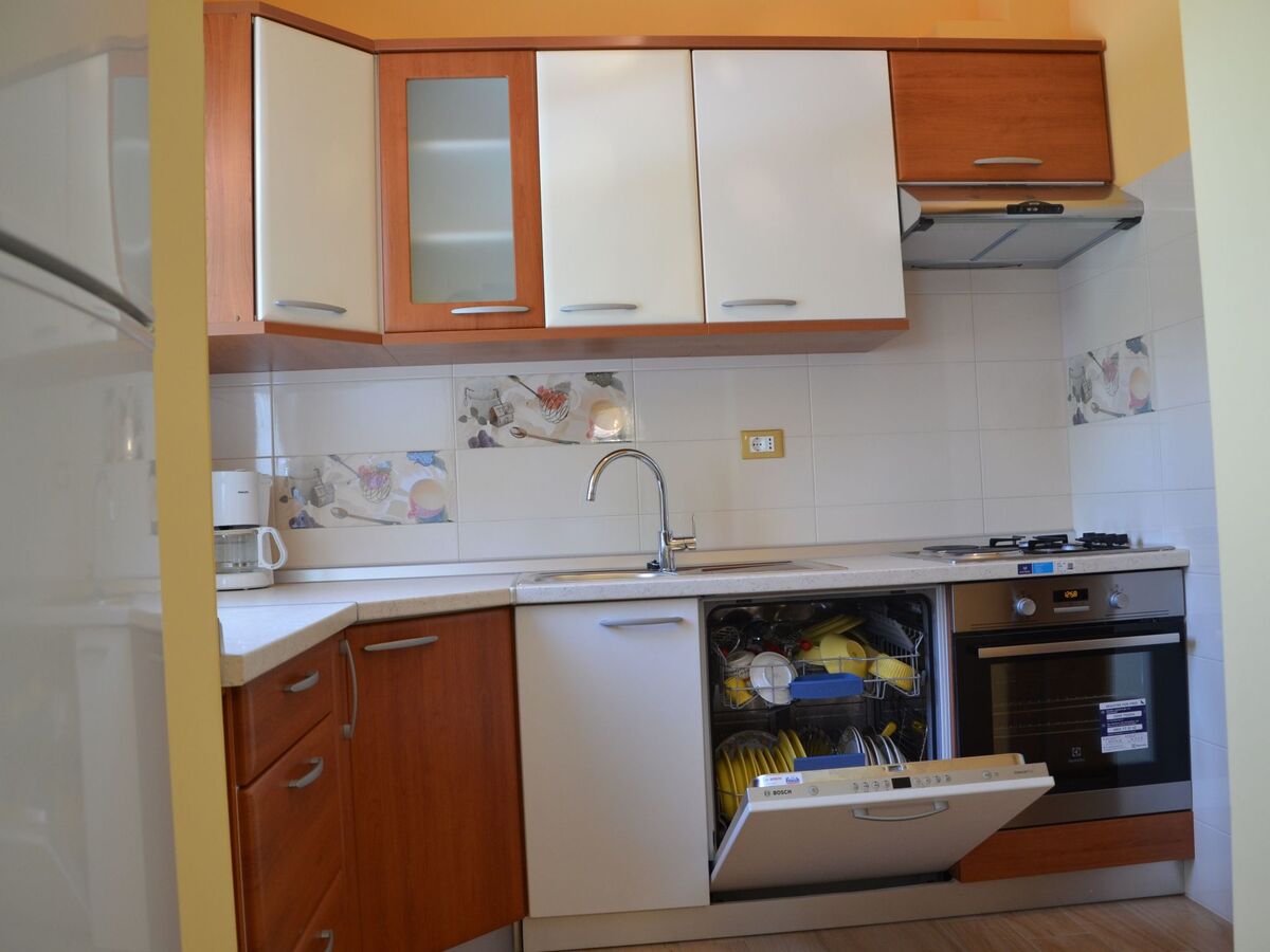 The kitchen is fully equipped with a gas and electric stove, dishwasher and a fridge-freezer.