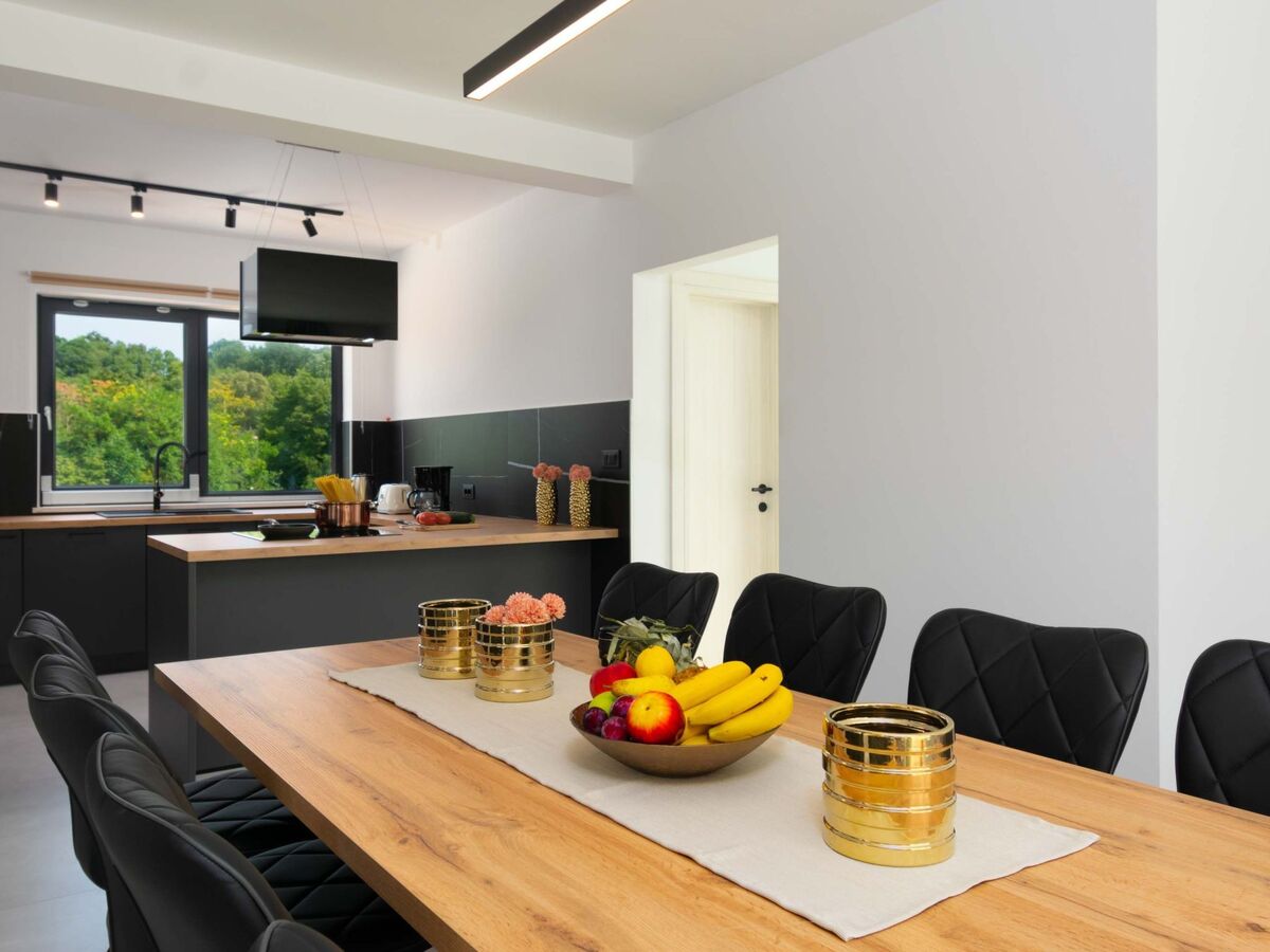 Inside, the villa showcases a stunning confluence of style and functionality, starting with a fully equipped kitchen on the right, ready to cater to your culinary exploits.
