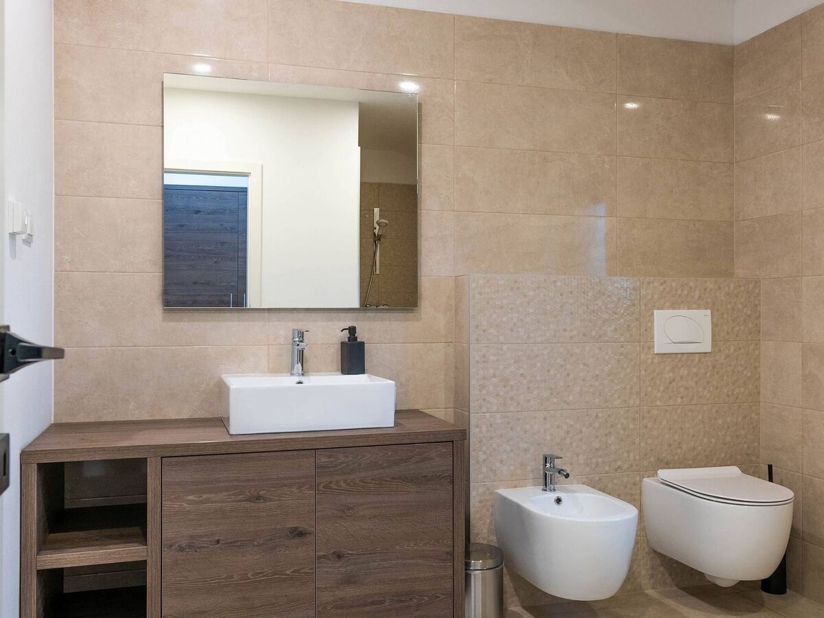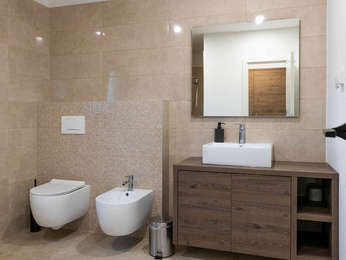 It consists of 3 bedrooms, 3 private bathrooms, toilet, living room and kitchen.On the ground floor there is a living room with TV, a fully equipped kitchen with 8 seats and a toilet.One bedroom is on the ground floor and the other two are on the first floor.