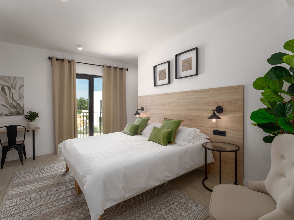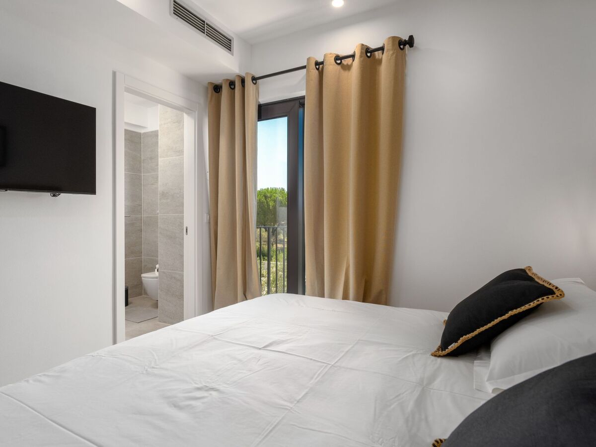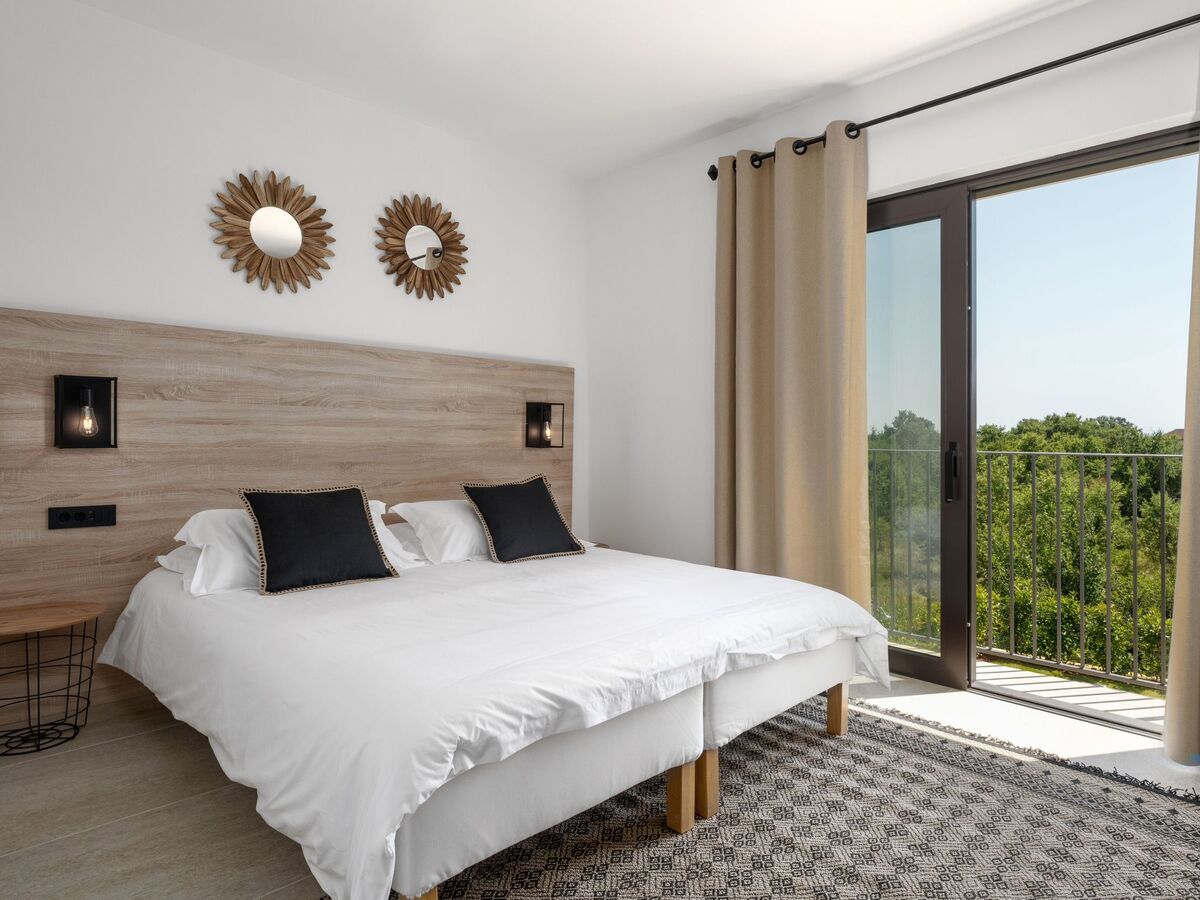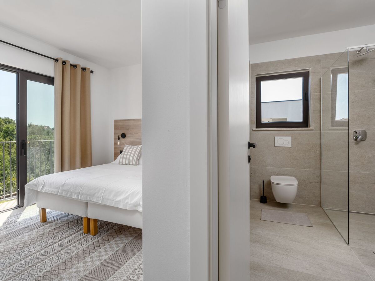 On the first floor of the house there are four bedrooms with double beds, each with its own shower/toilet and a small balcony with a view of the pool and greenery.
