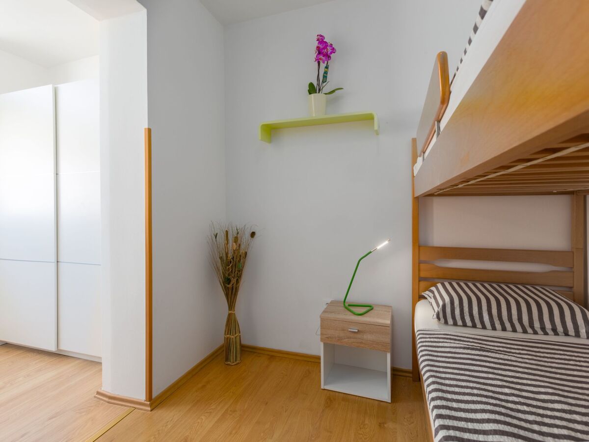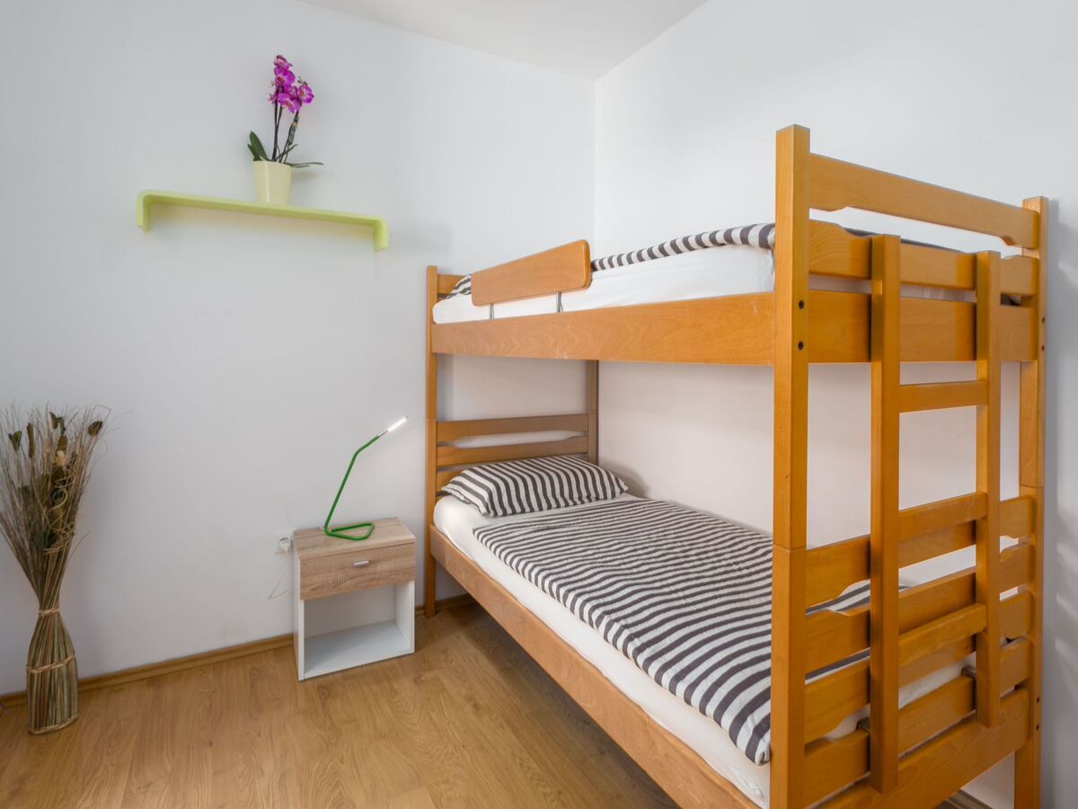 On the first floor there are 3 bedrooms, 2 of them with double bed and balcony, one with bunk beds, and bathroom with shower/WC.