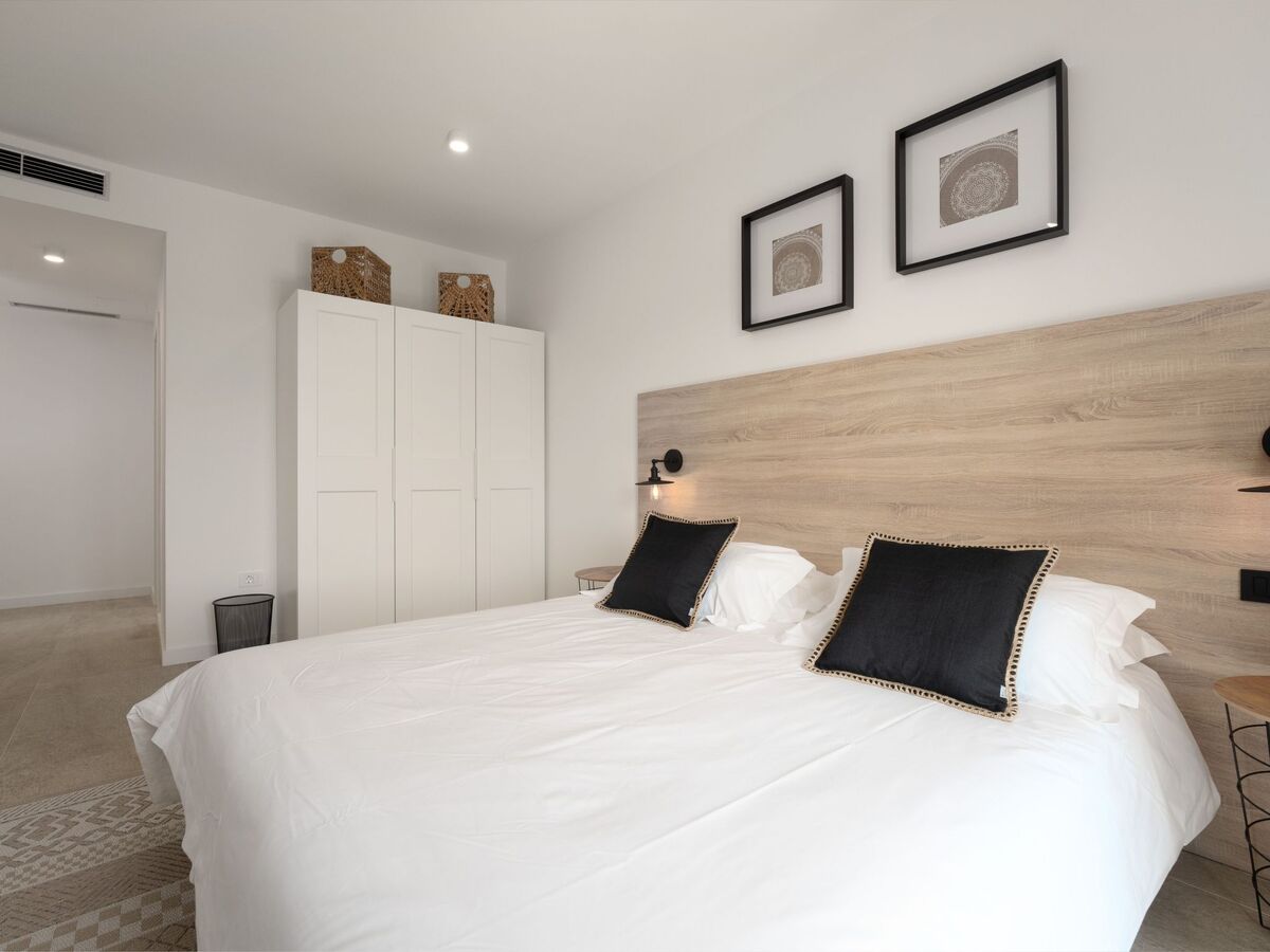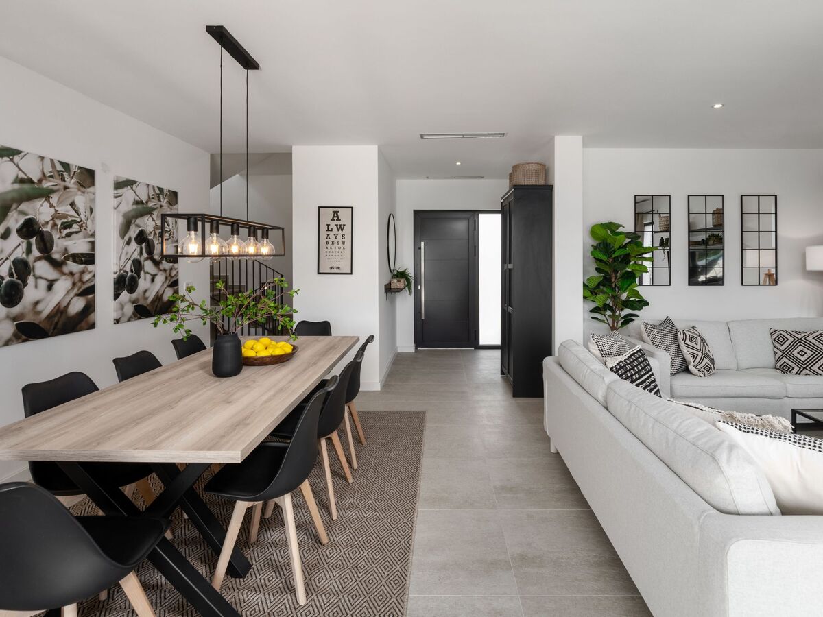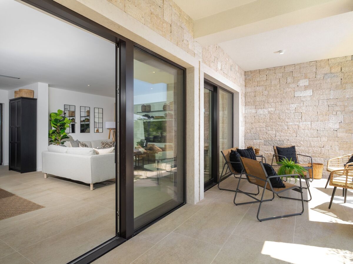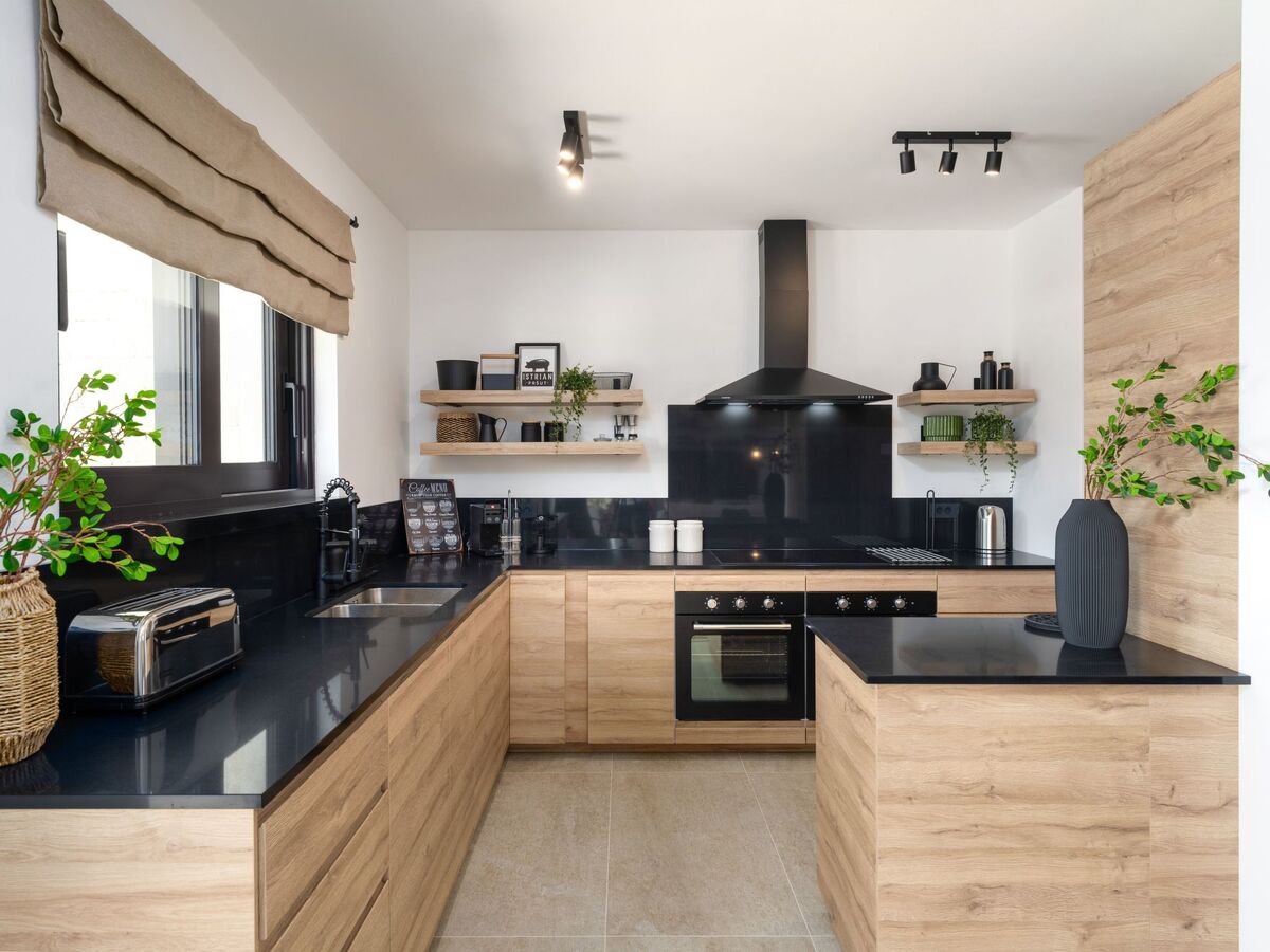 On the ground floor there is a spacious living room with access to the terrace and pool, a fully equipped kitchen, dining table and a separate toilet.