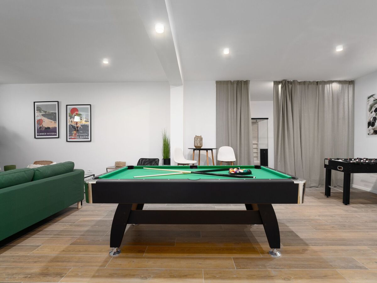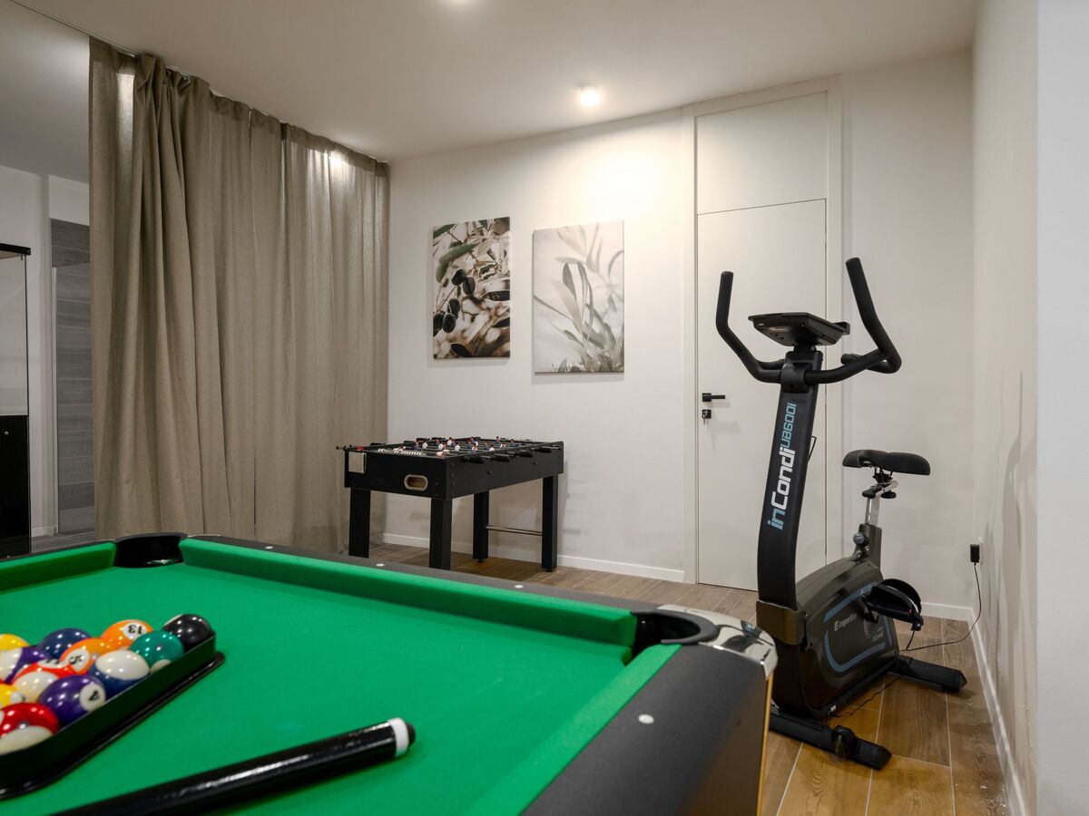 The special feature of this villa is the entertainment room with sofa and TV, table football, billiards, exercise bike and sauna, as well as another shower.