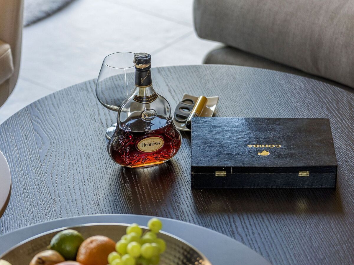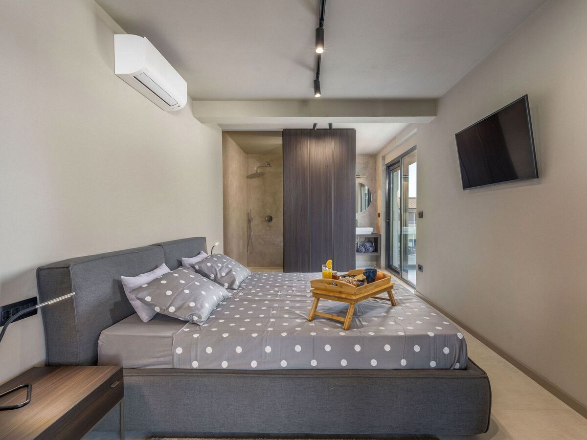 On the first floor there are two air-conditioned bedrooms, each with its own shower/WC and satellite TV and on the second floor there is another double bedroom with its own special wellness bathroom from which you can enjoy the sunset through the glass wall.