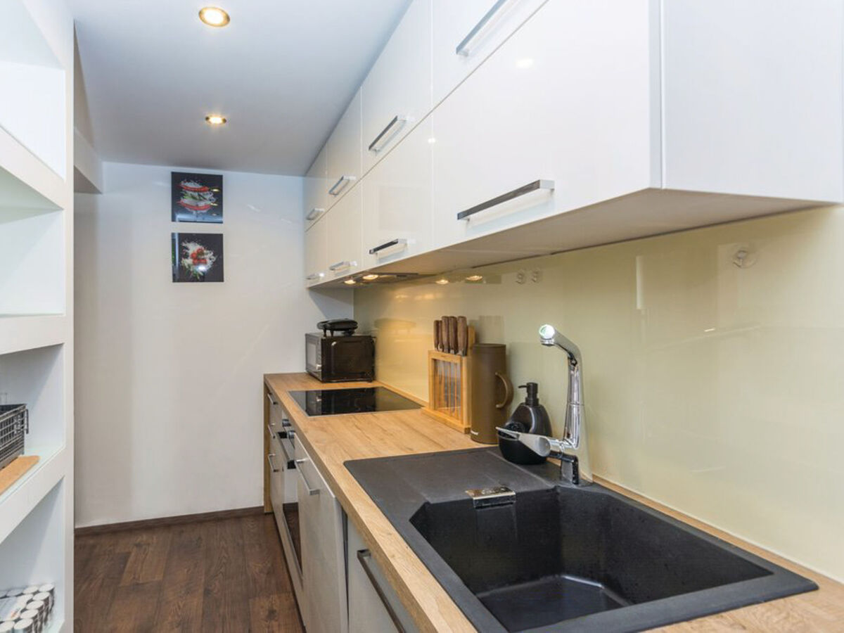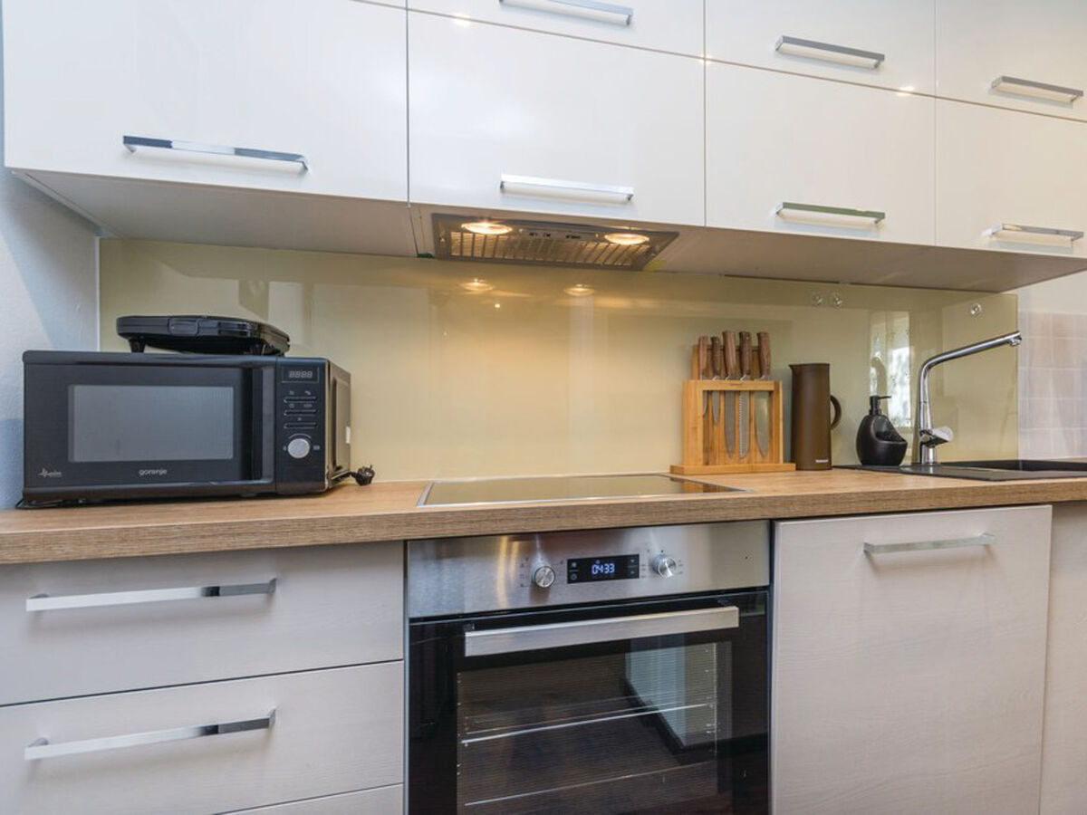 Cuisine ouverte (lave-vaisselle, 4 plaques vitrocéramiques, bouilloire électrique, micro-ondes, congélateur, cafetière électrique).