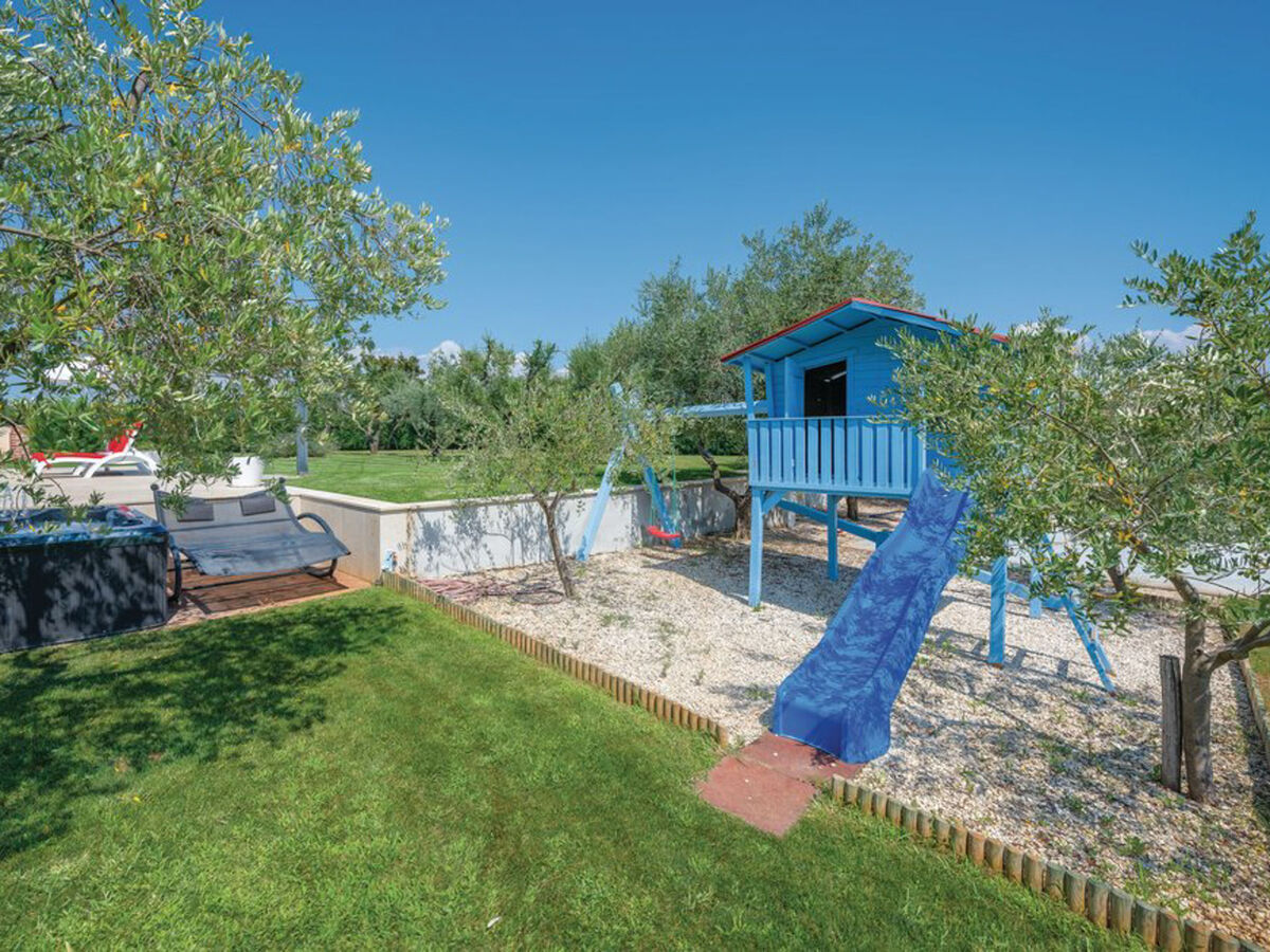 Douche extérieure, bain à remous , meubles de jardin, barbecue, espace de jeux pour les enfants (toboggan, balançoire).