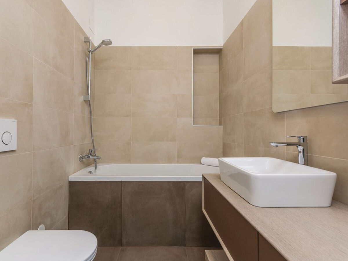 1 chambre 15 m2 avec 1 grand-lit (160 cm, longueur 200 cm), bain/WC.