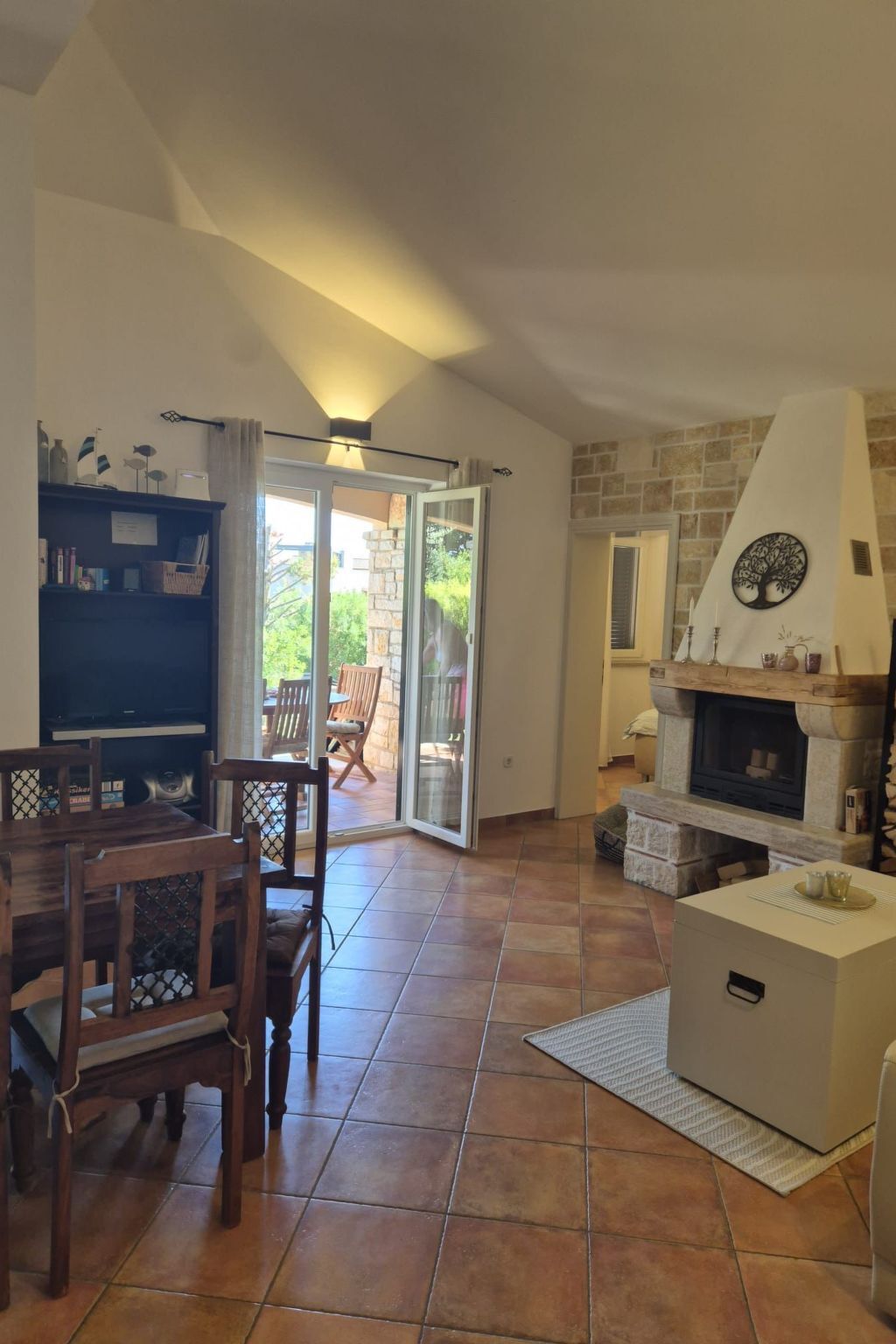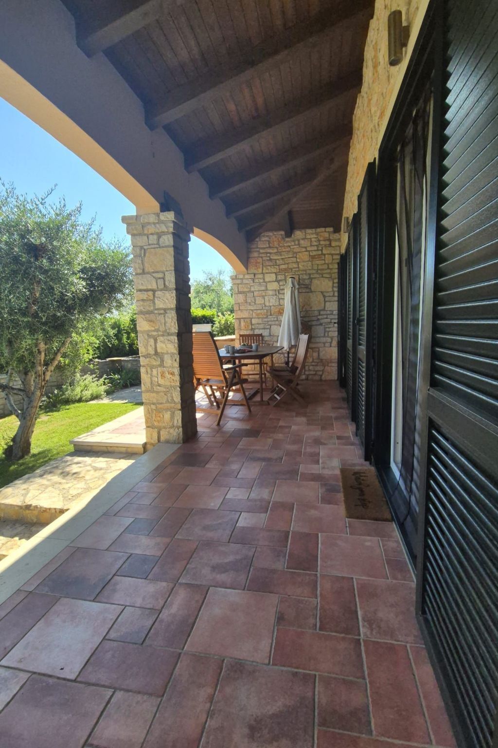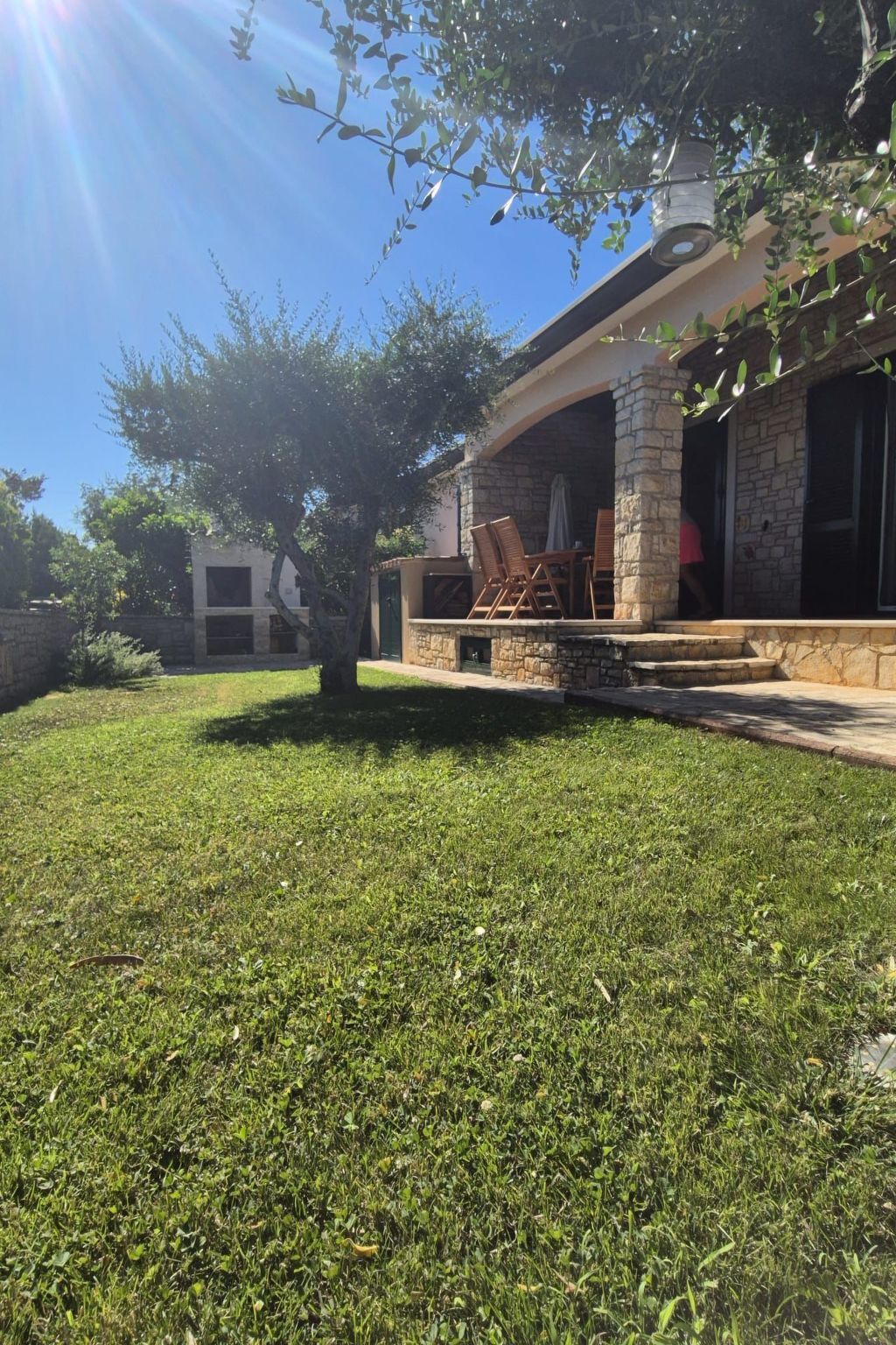 The natural stone house is in a very quiet location in a picturesque village, surrounded by olive trees.