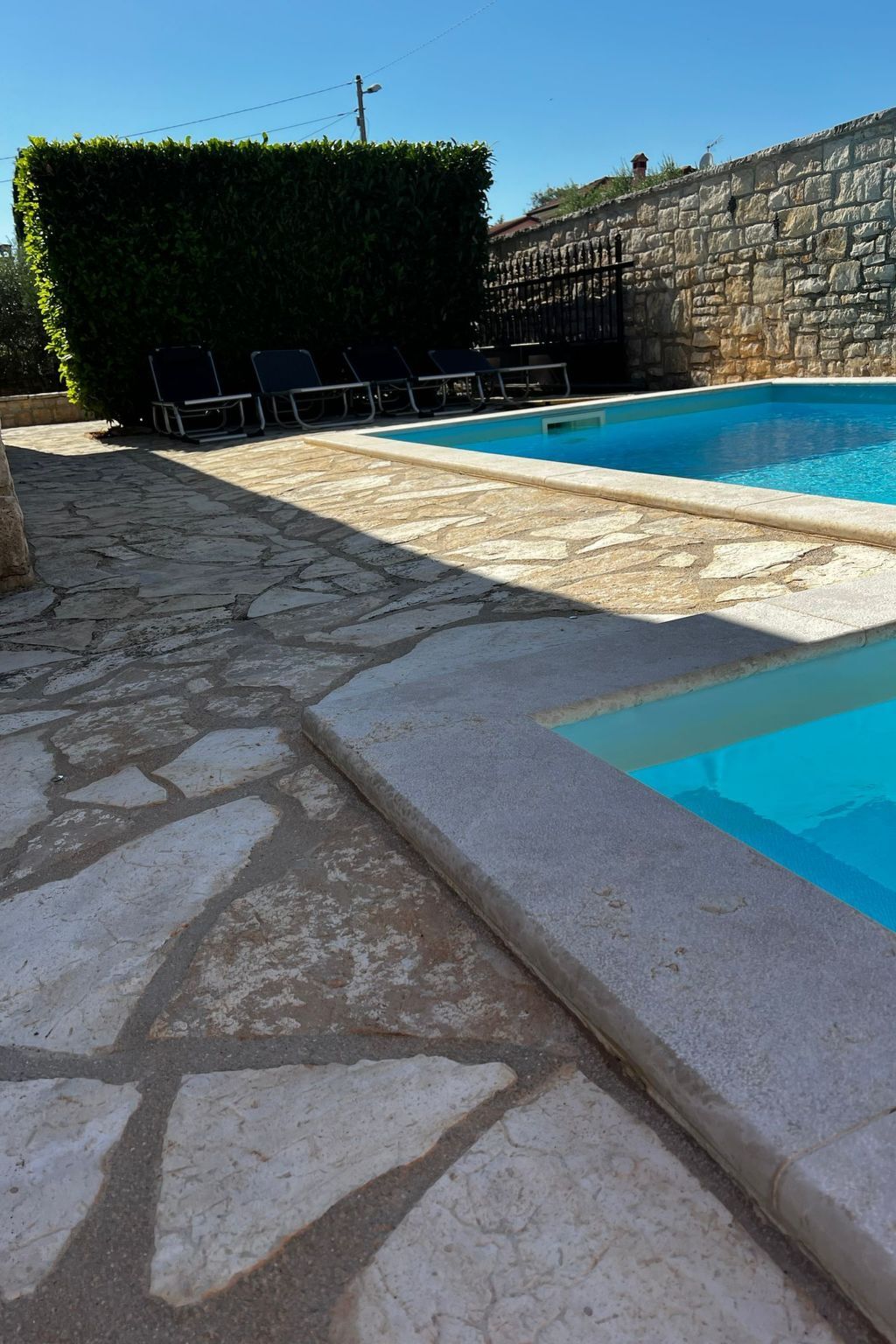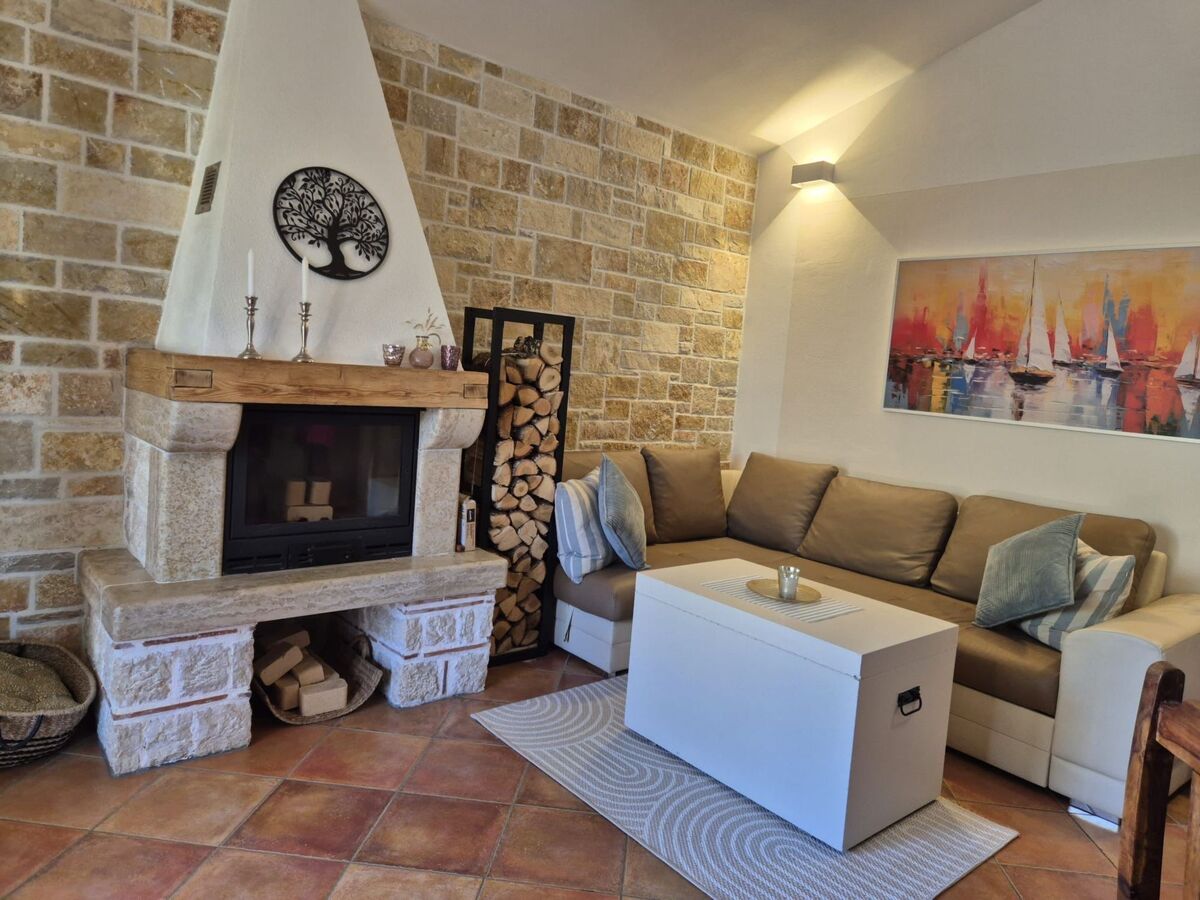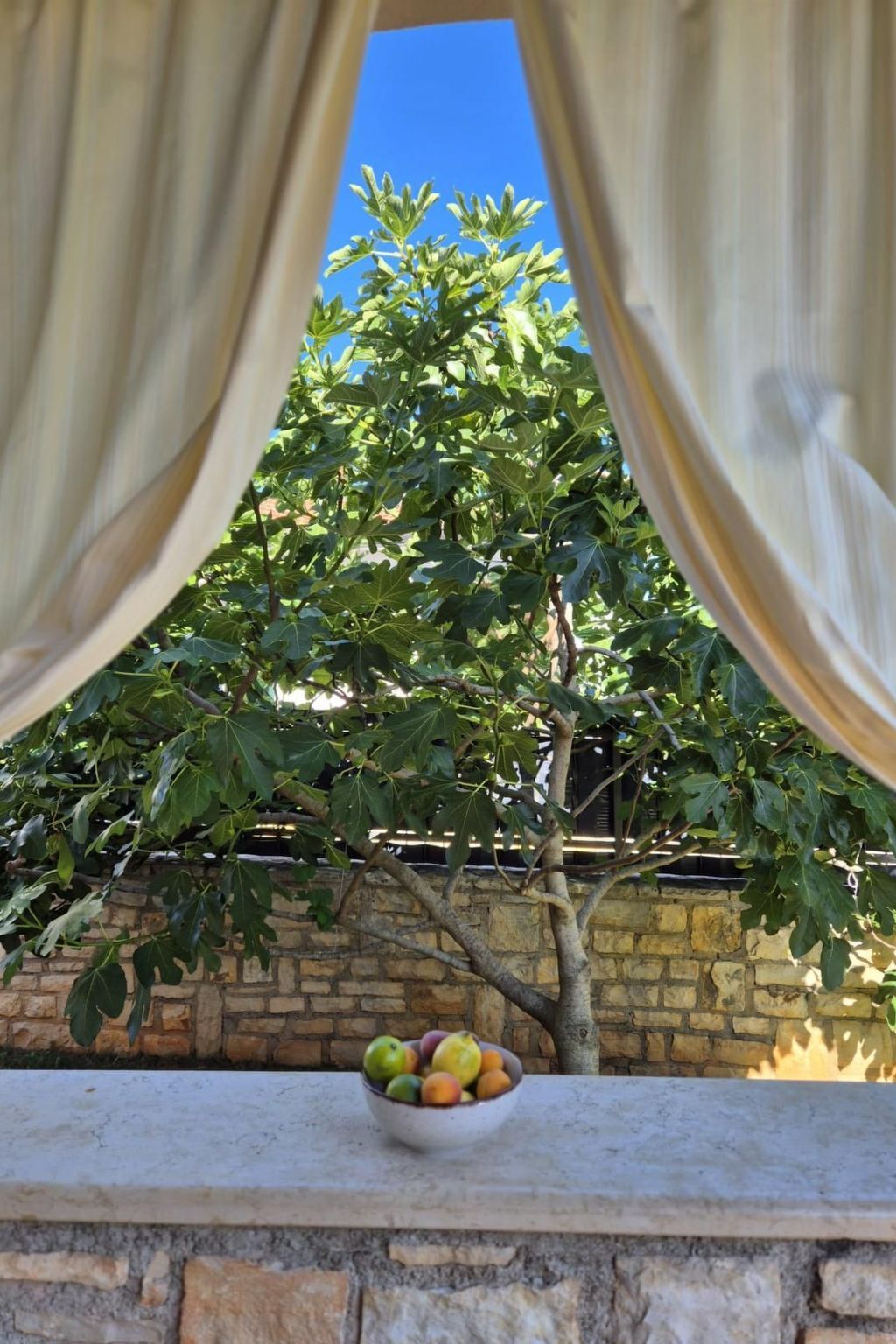 The natural stone house is in a very quiet location in a picturesque village, surrounded by olive trees.