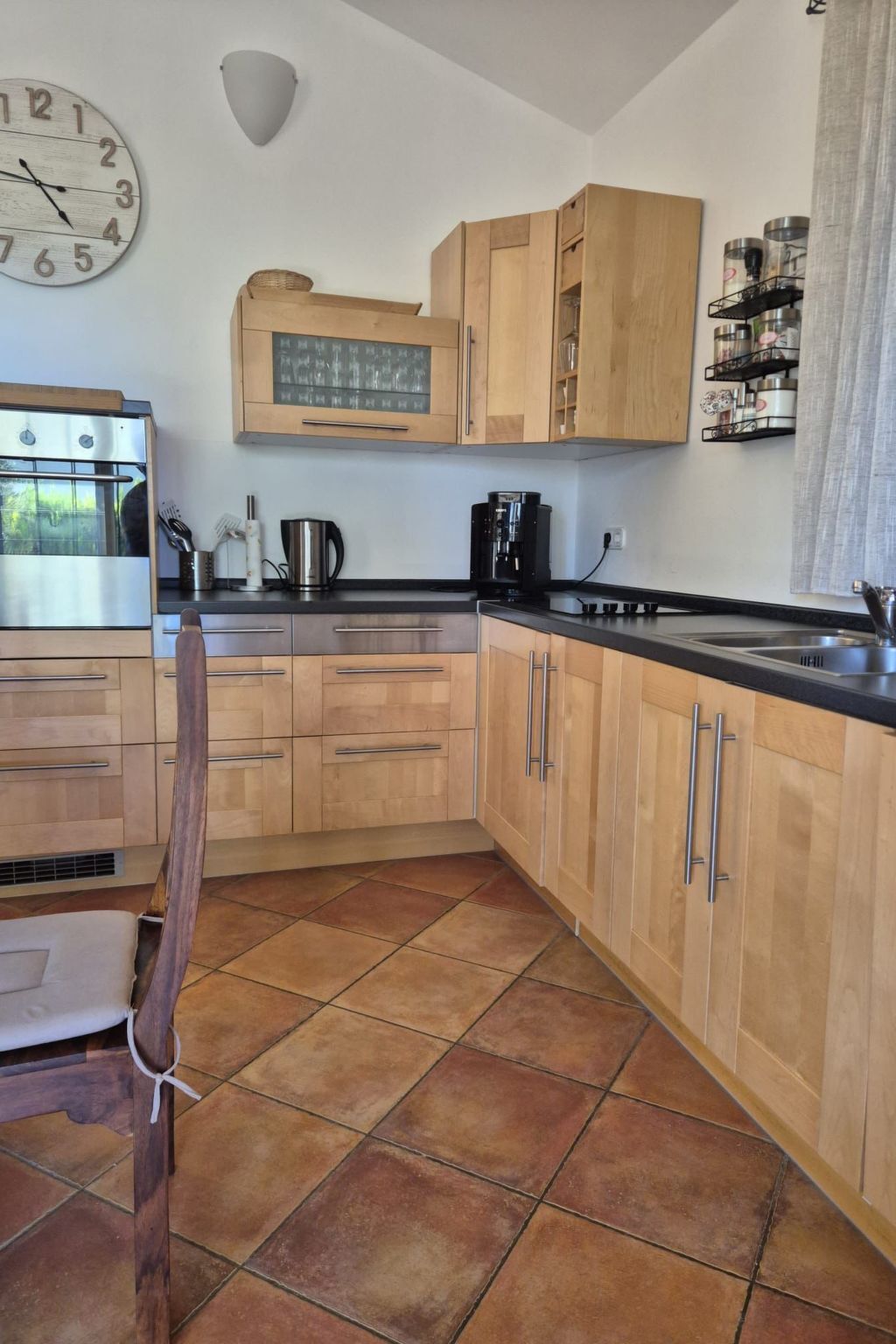 The well-kept kitchen is fully equipped.