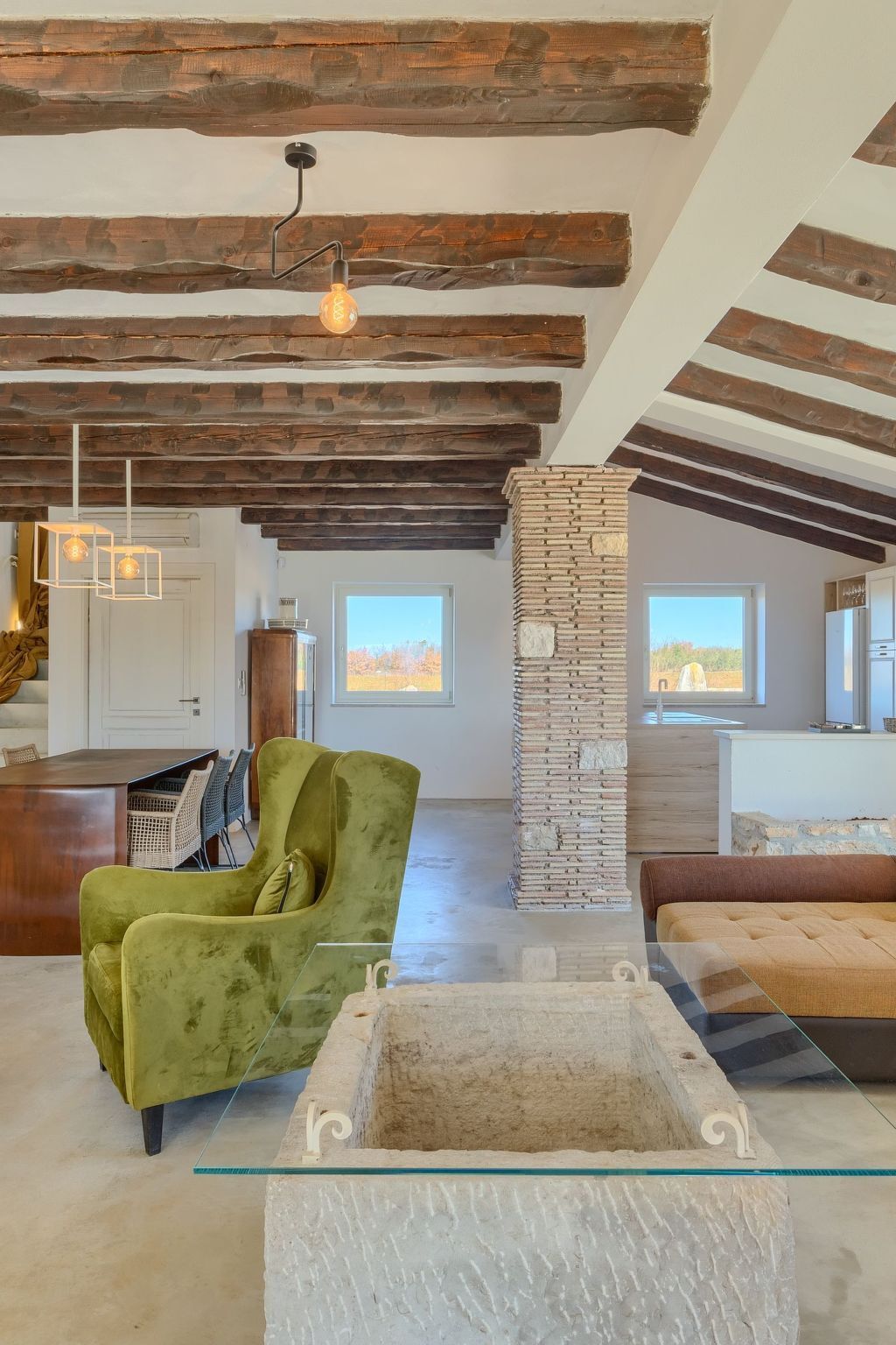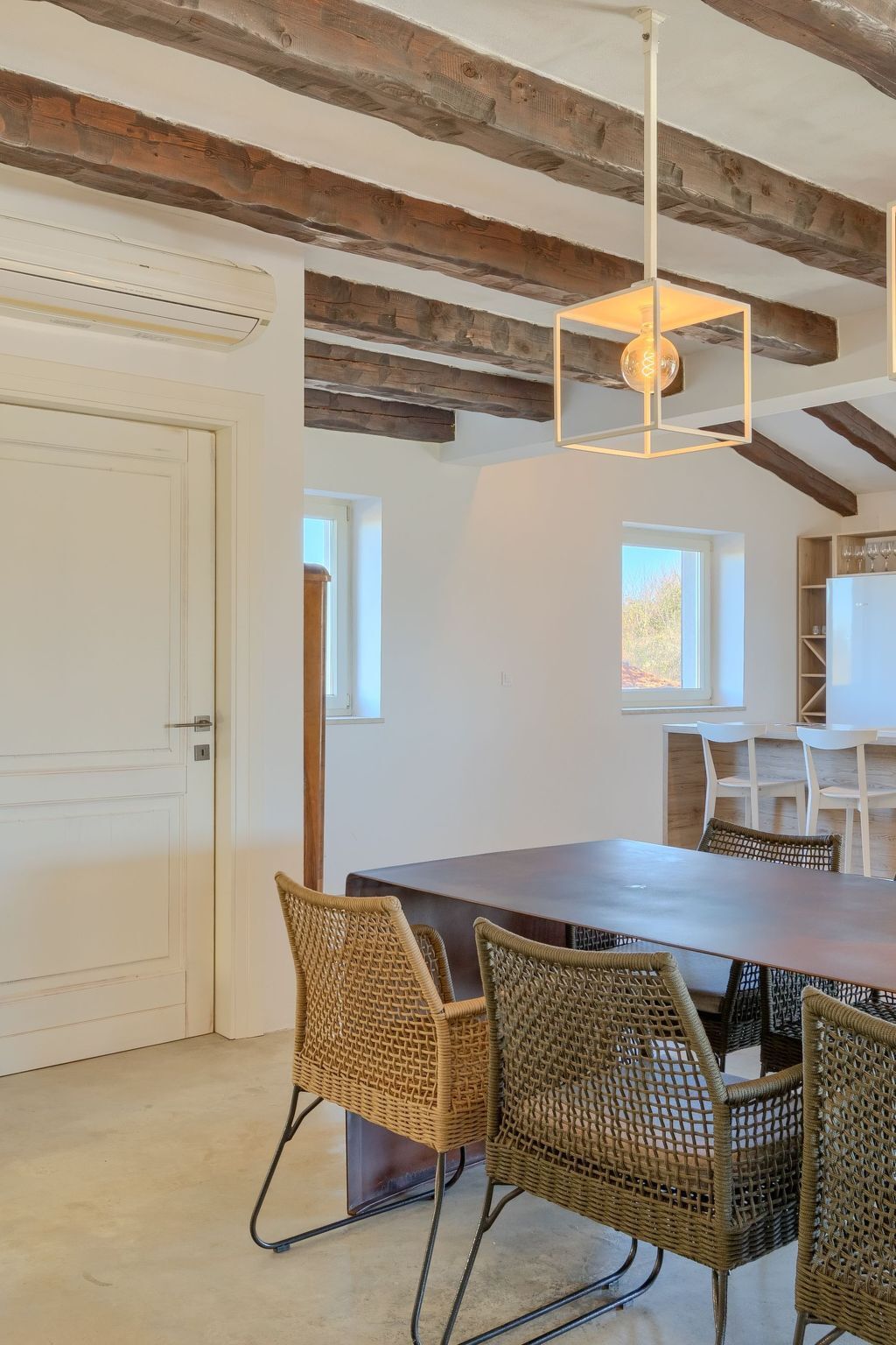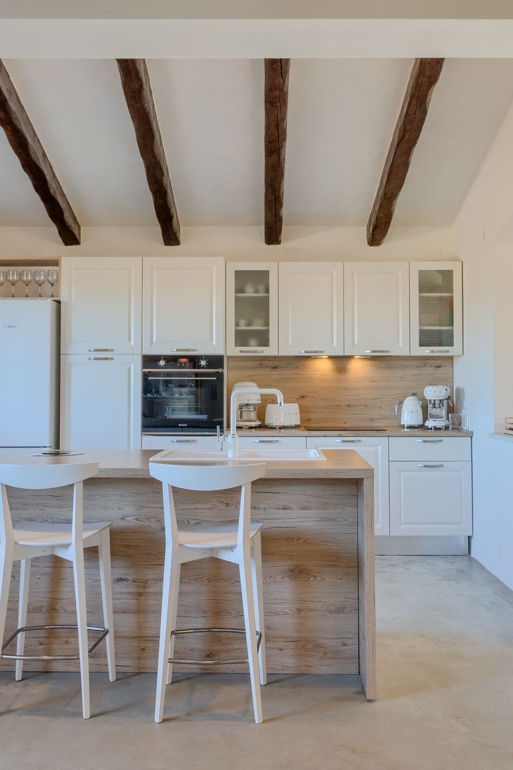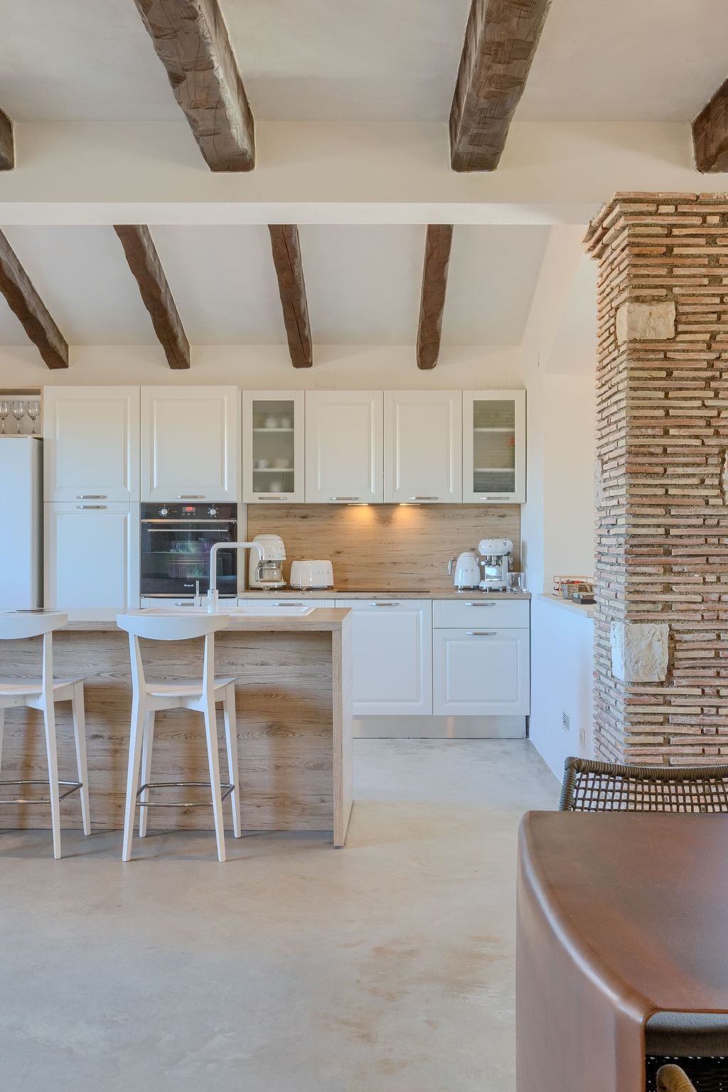 Inside, you will find a modern and fully equipped kitchen with an elegant island that invites you to cook together.