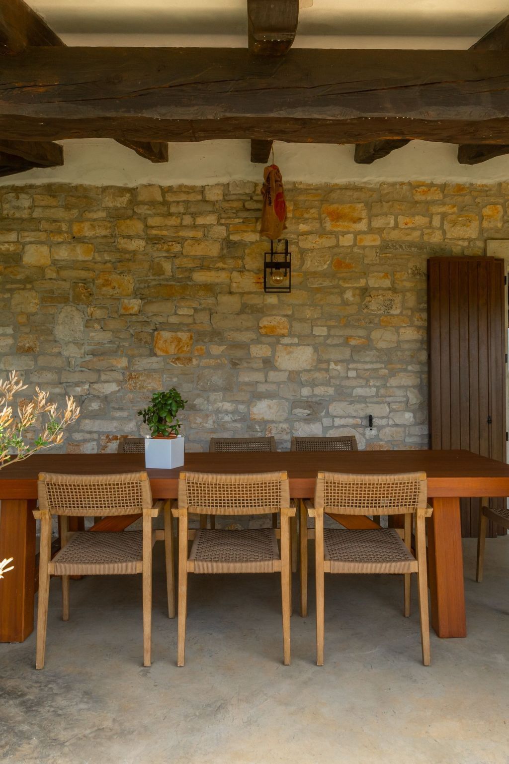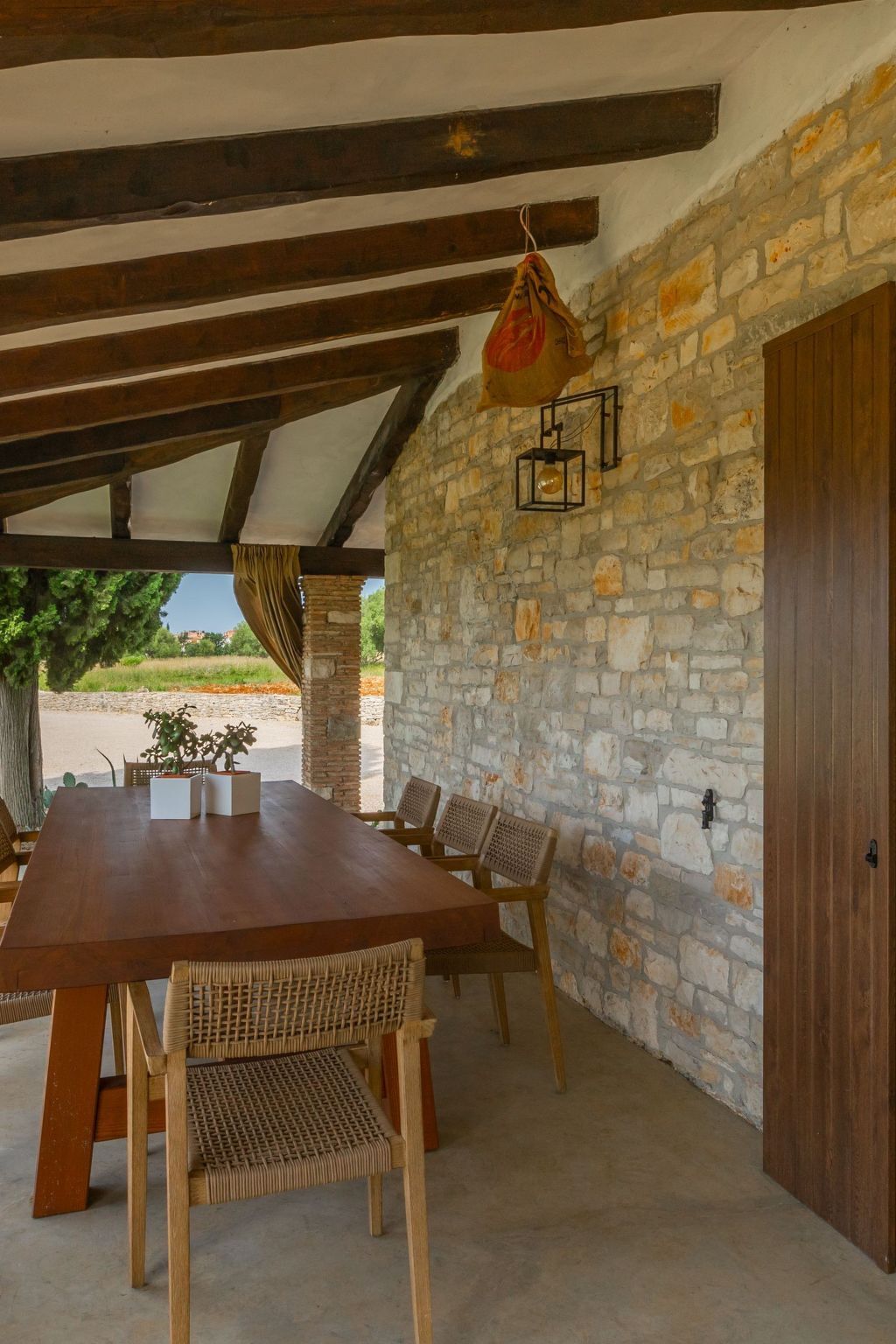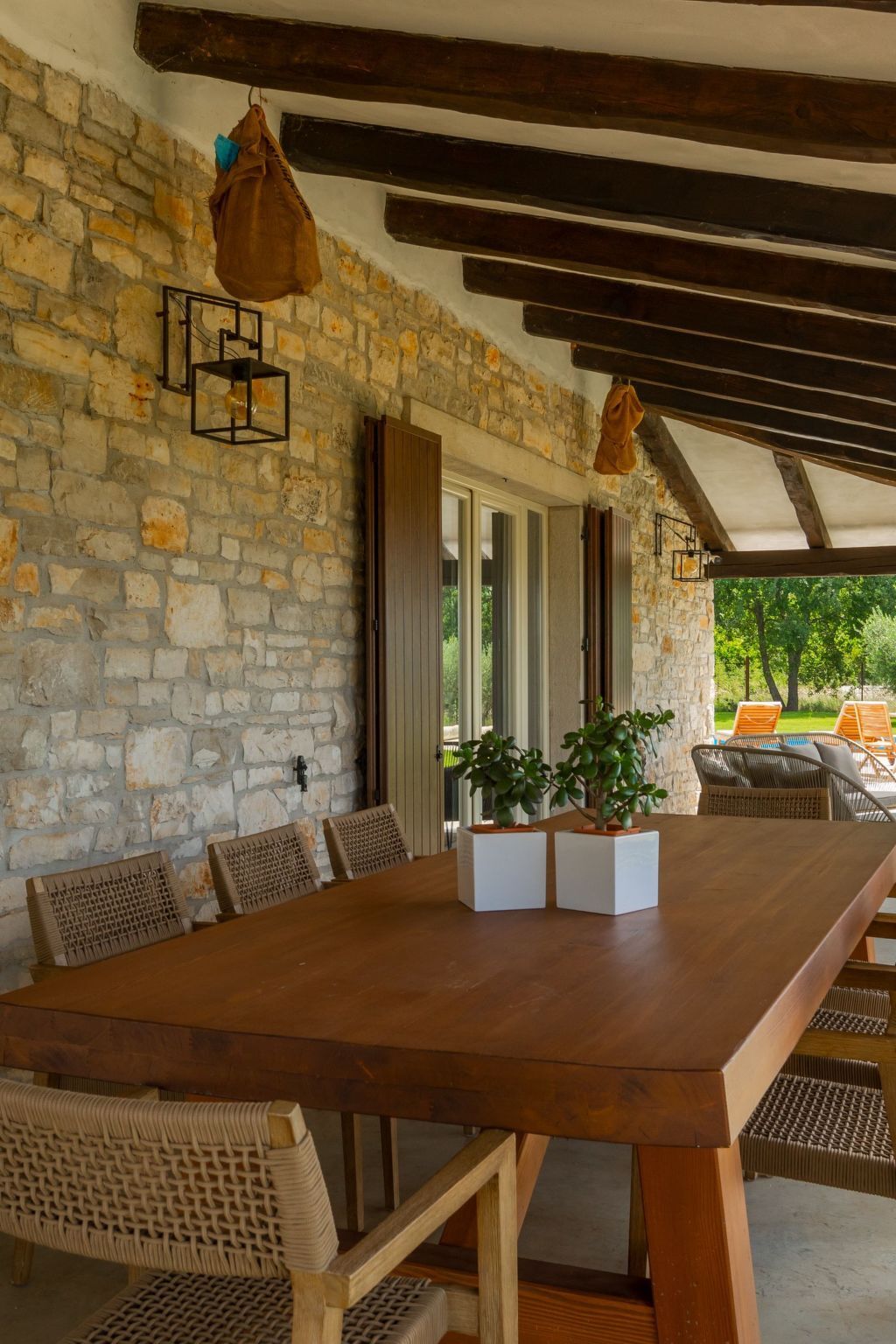 The covered terrace with a large dining table invites you to dine al fresco, while the private car park on the property offers comfort and security for your vehicles.