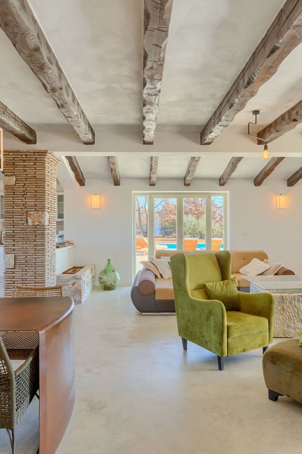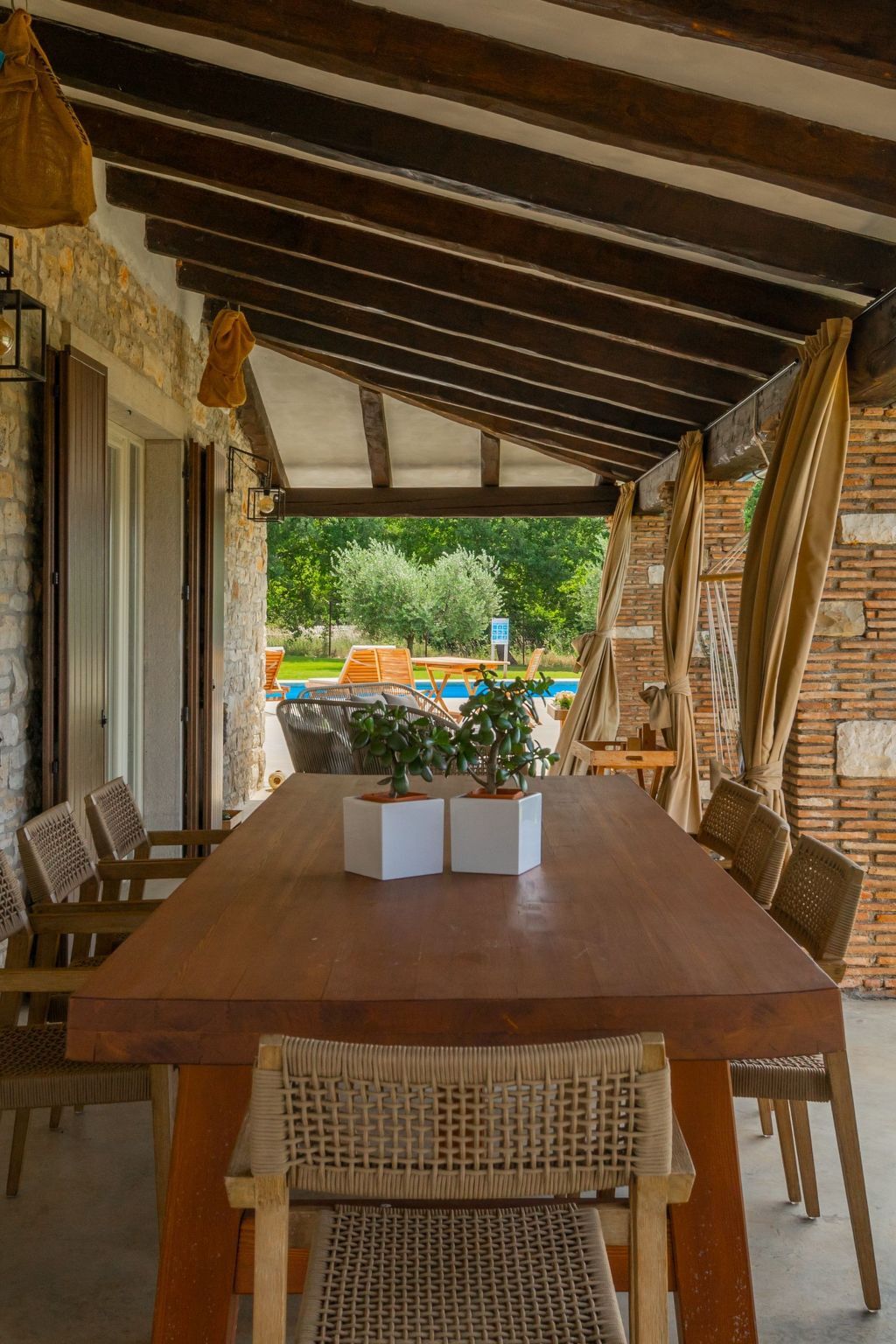 From the living room you have access to a large covered terrace, which offers a wonderful view of the pool and garden.