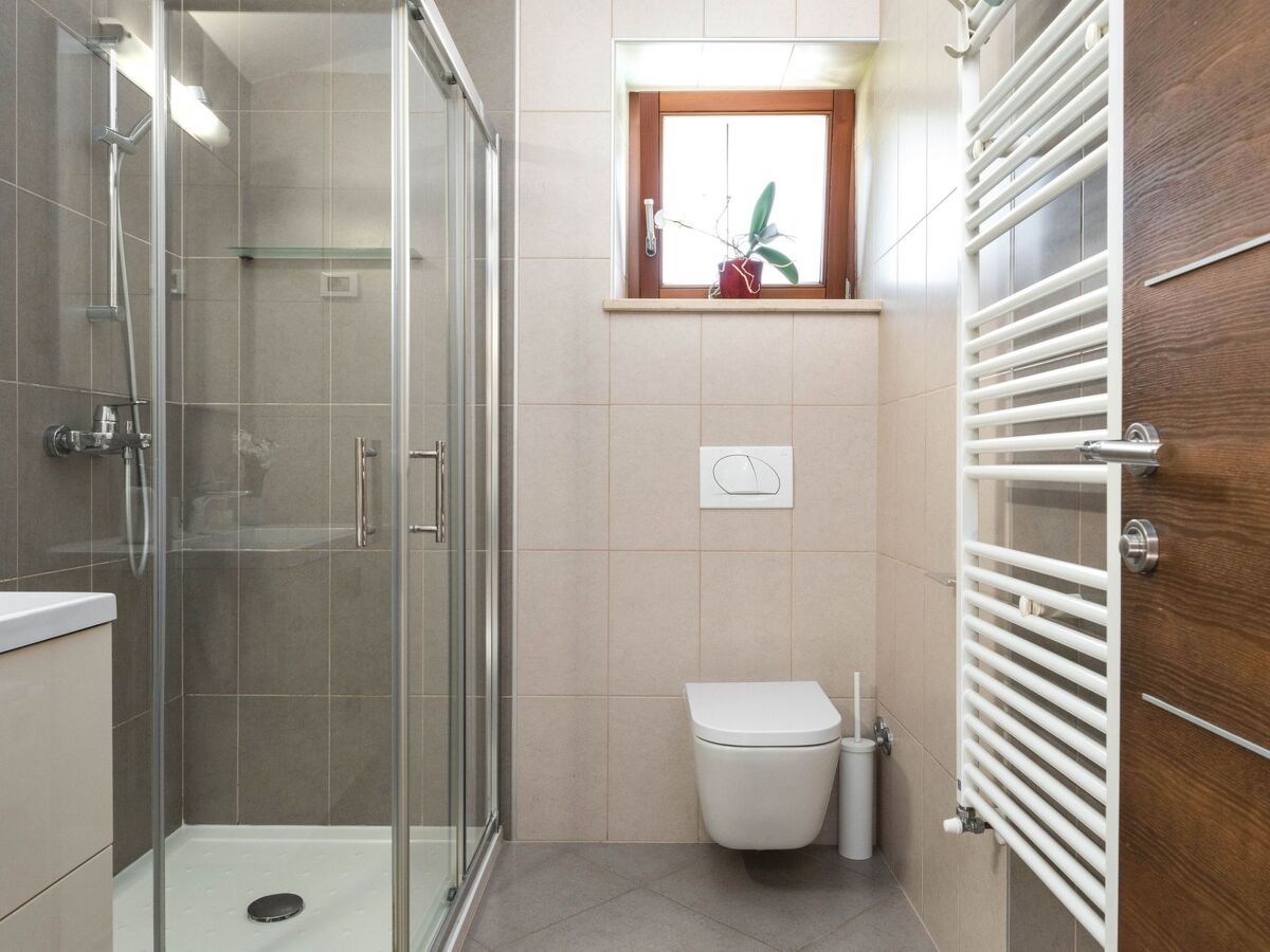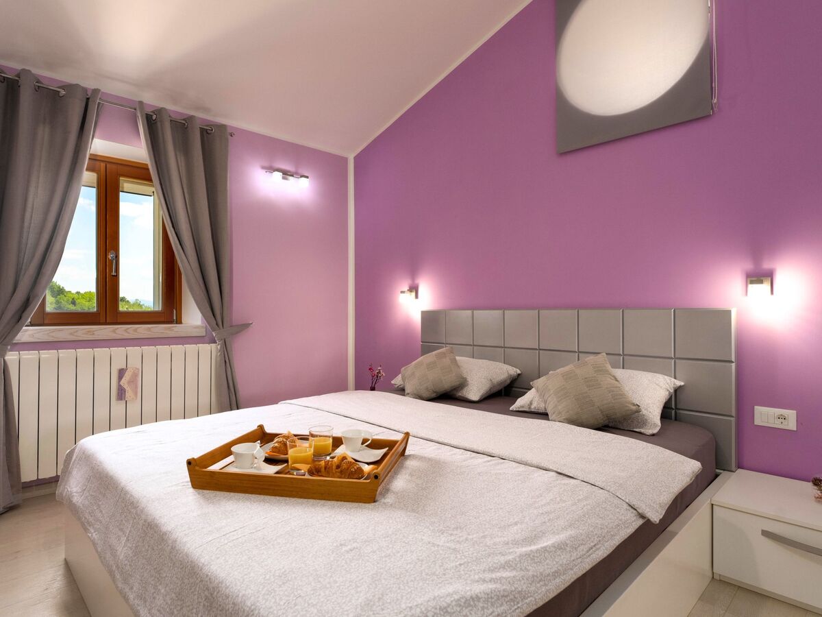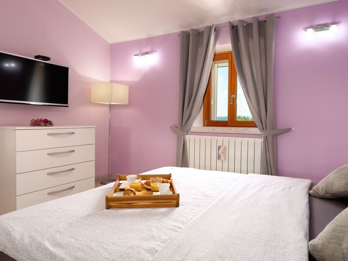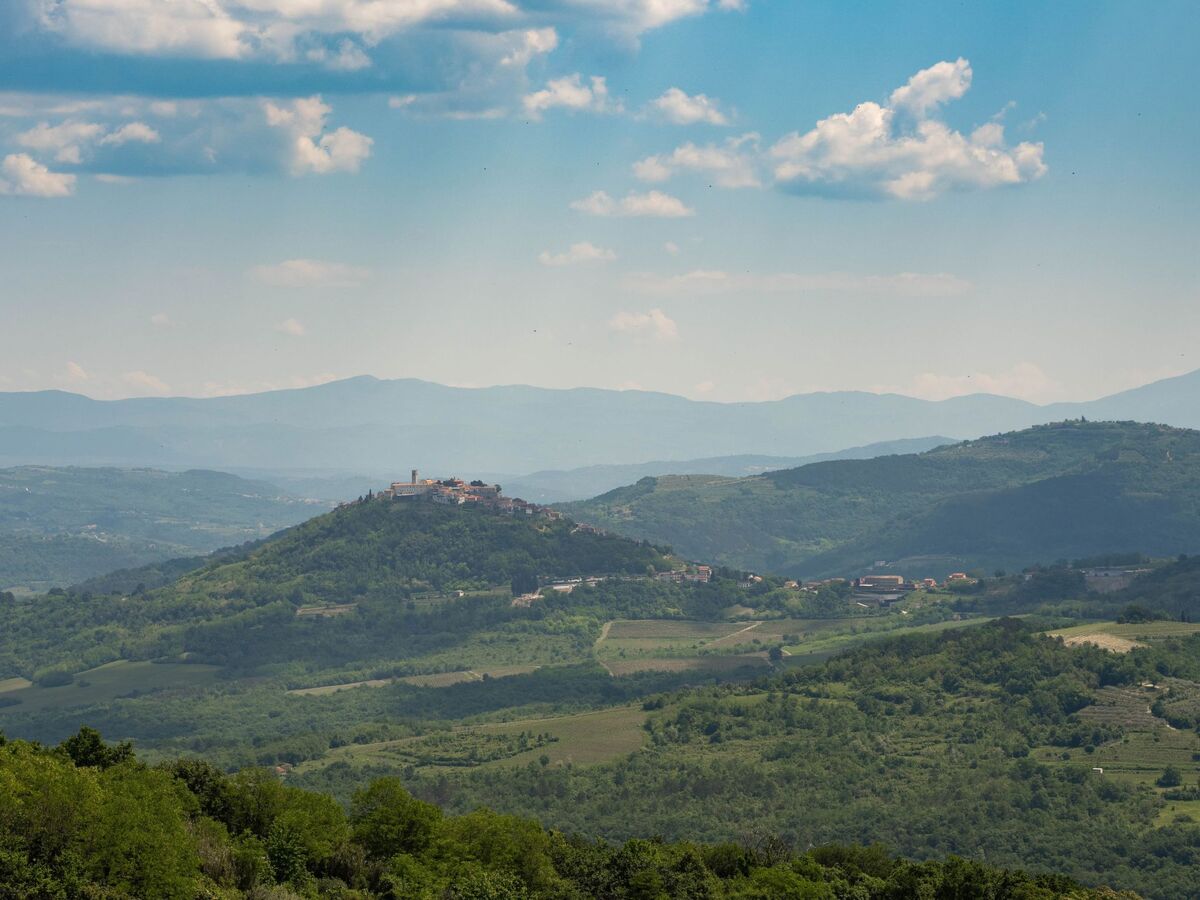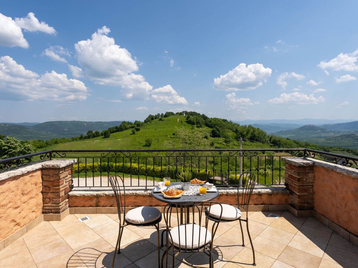One room leads to a spacious balcony with seating, from which there is a wonderful view of Motovun and the green landscape.