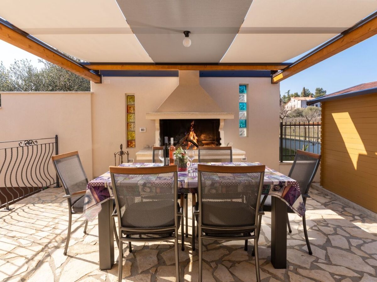 Summer kitchen with big fireplace, dining table and 2 parking spaces.