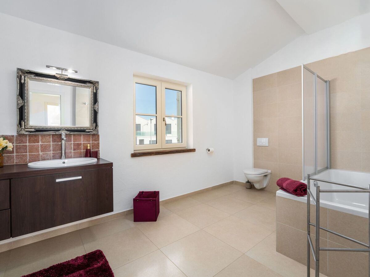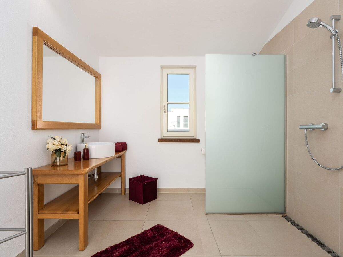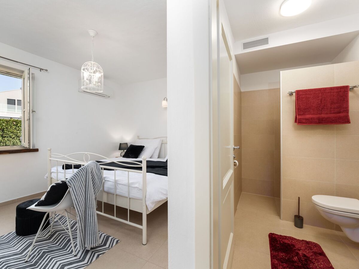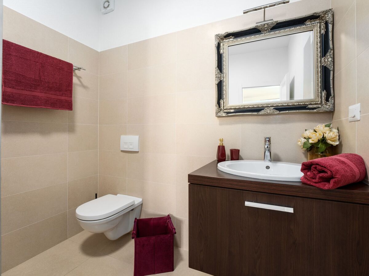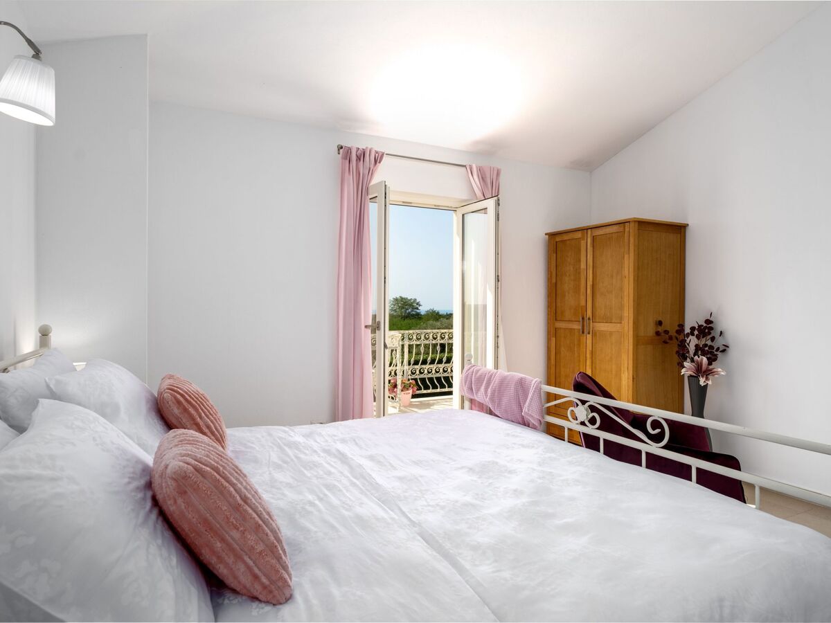 One bedroom with en-suite bathroom is located on the ground floor of the house and on the first floor there are: a spacious double bedroom with en-suite bathroom, two double bedrooms sharing a bathroom with bathtub/WC in the hallway and two double bedrooms each with en-suite bathroom and exit to the balcony with beautiful panoramic sea views.