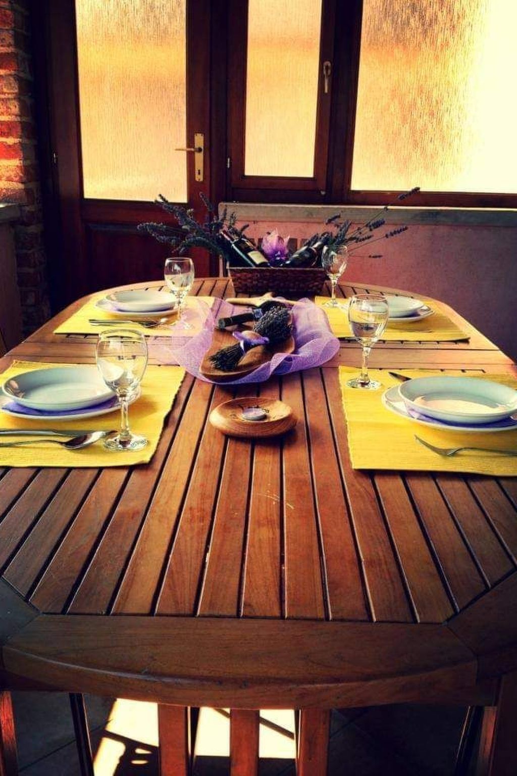Devant la maison au rez-de-chaussée se trouve une grande terrasse couverte avec une table et six chaises où il est possible de manger en été.