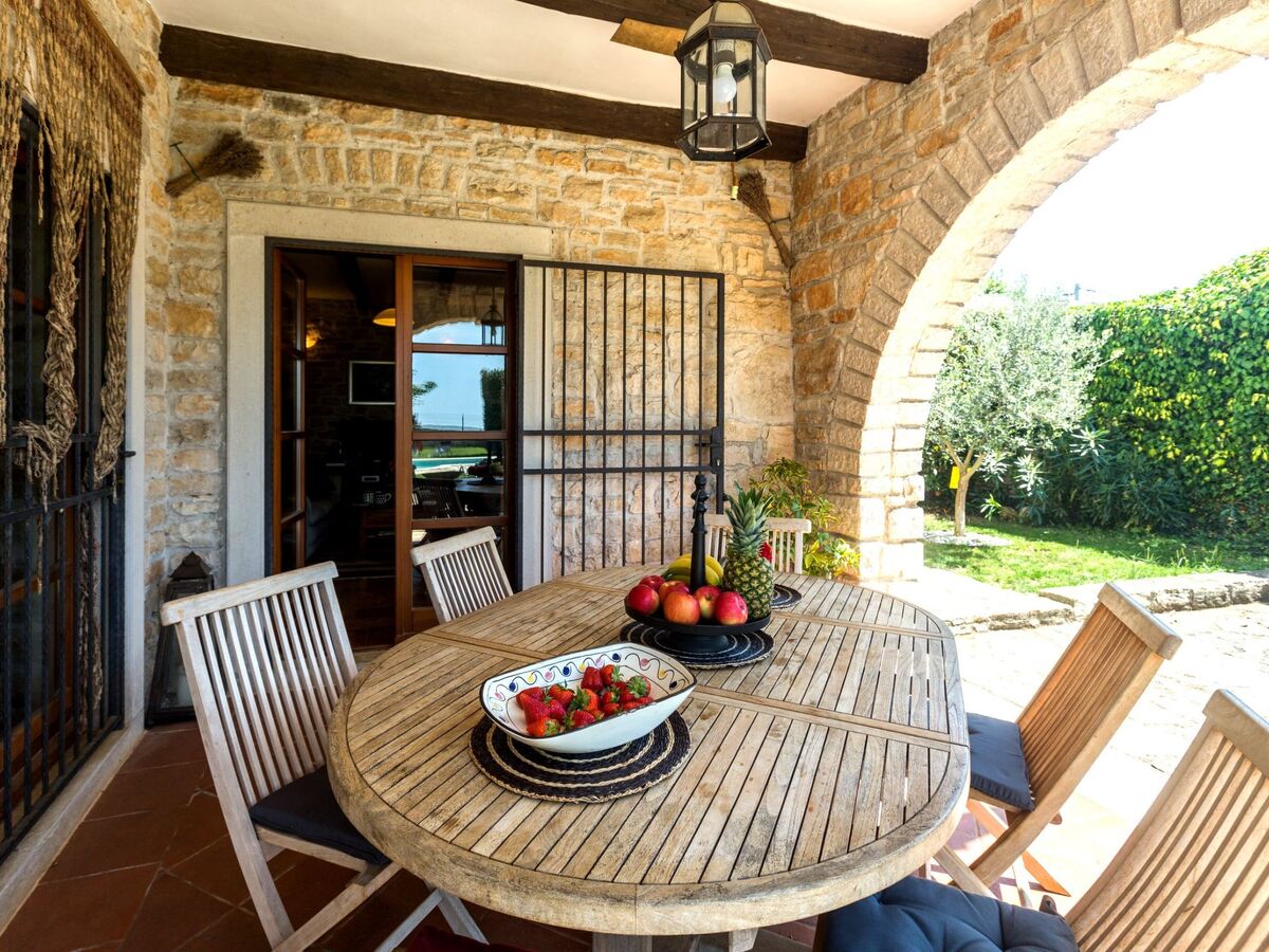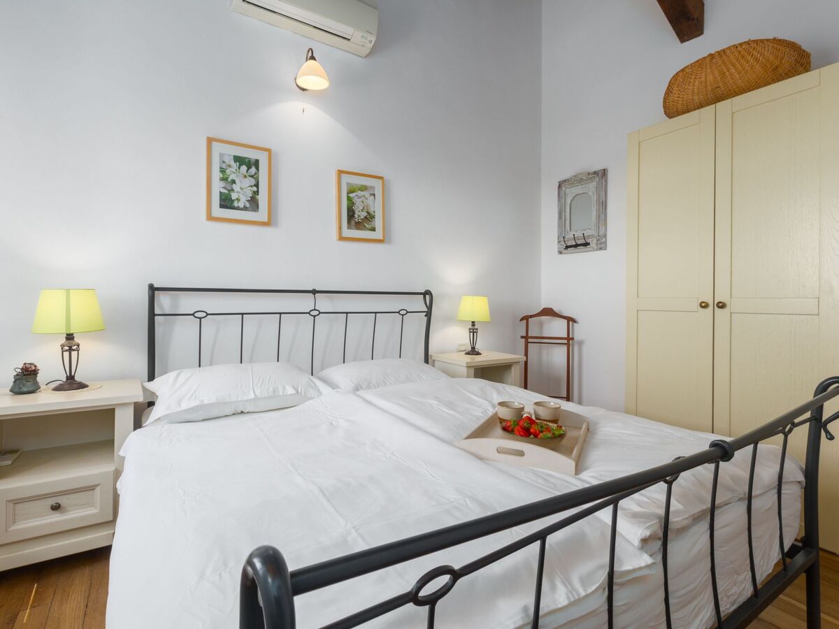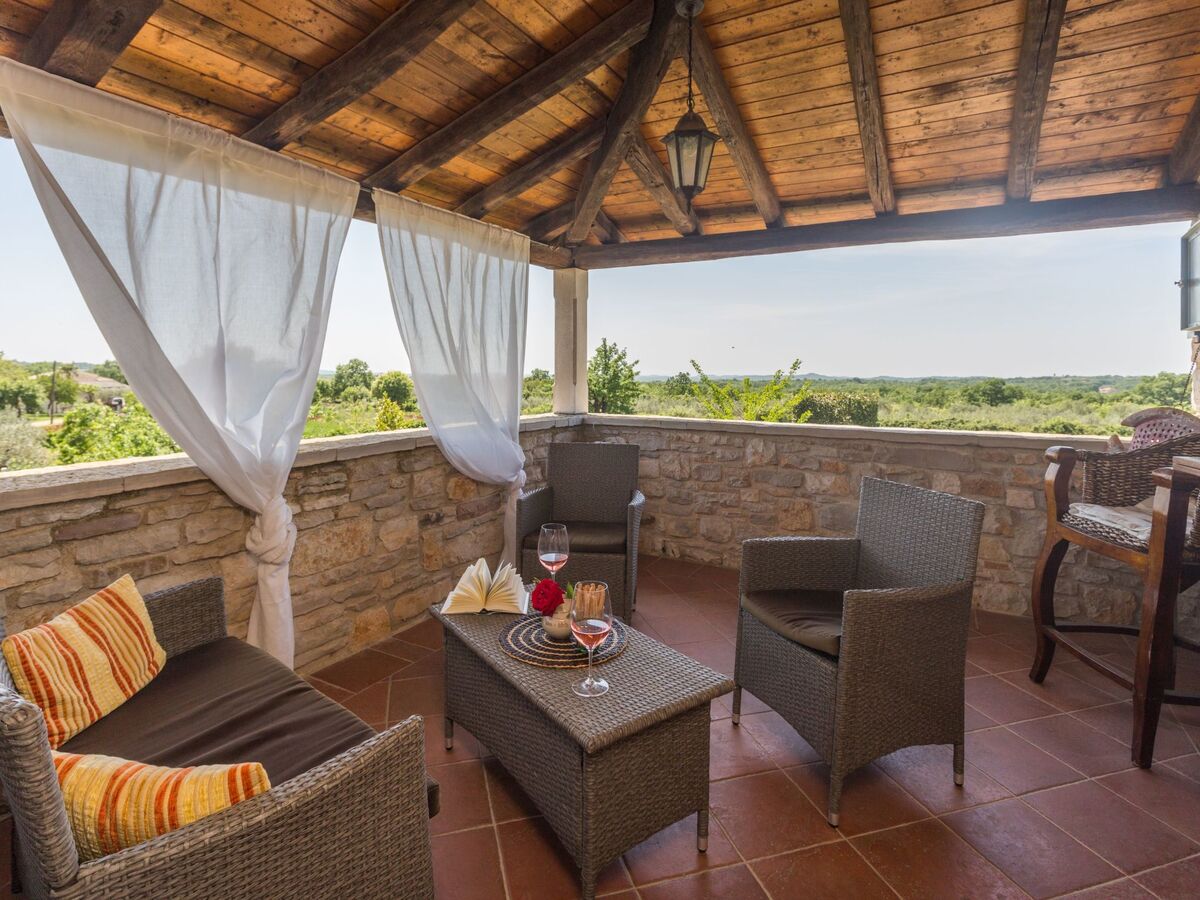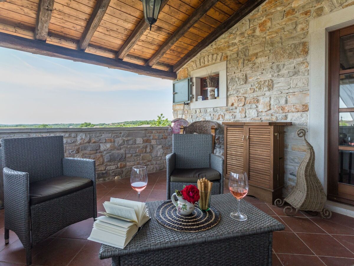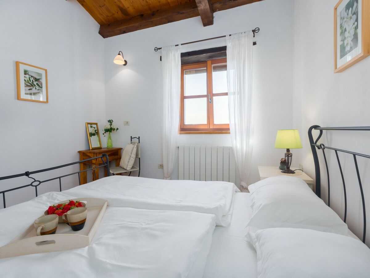 On the ground floor of the house is the tastefully furnished living area with fireplace, kitchen with dining table with exit to the covered terrace and garden with pool, as well as a shower / WC.on the first floor this house offers a spacious bedroom with double bed and private bathroom with shower / tub, exit to the covered balcony with a fantastic view of the sea and the Istrian landscape.