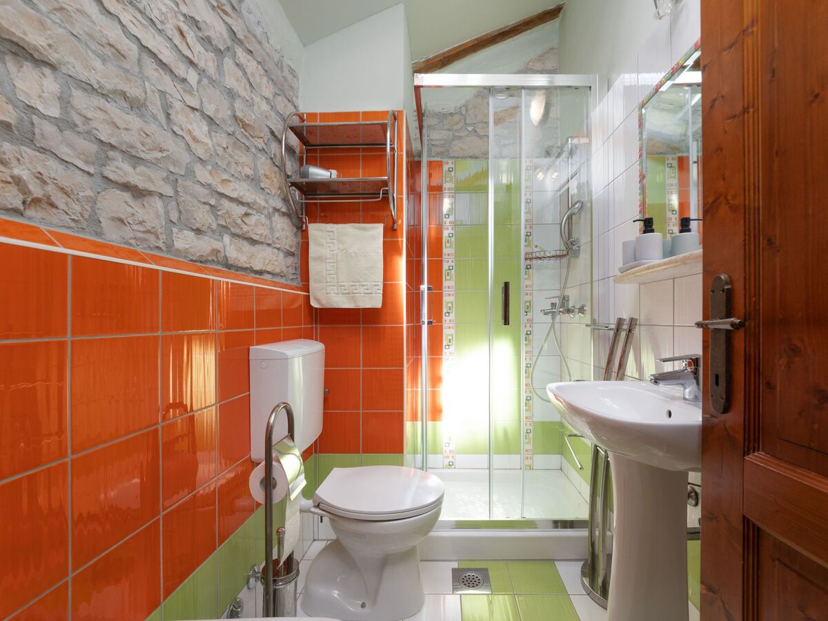 On the first floor there is a bedroom with double bed and bathroom with bathtub and another bedroom with separate beds and bathroom with shower.