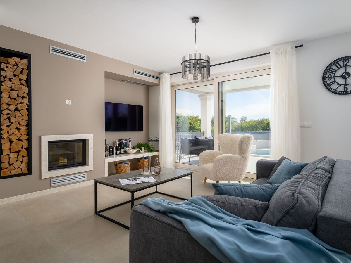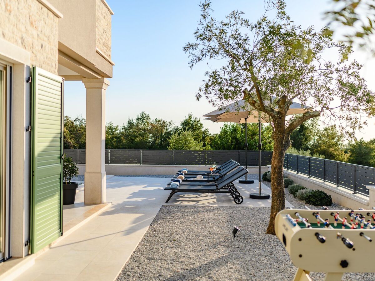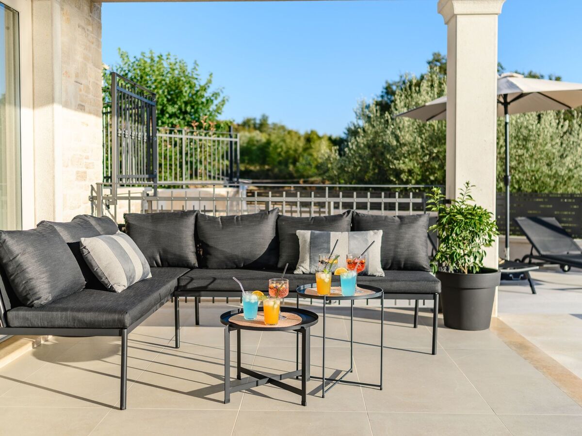 Located in the peaceful village of Jurcani, the villa is surrounded by lush greenery, olive trees and forests, offering a peaceful retreat away from the hustle and bustle.