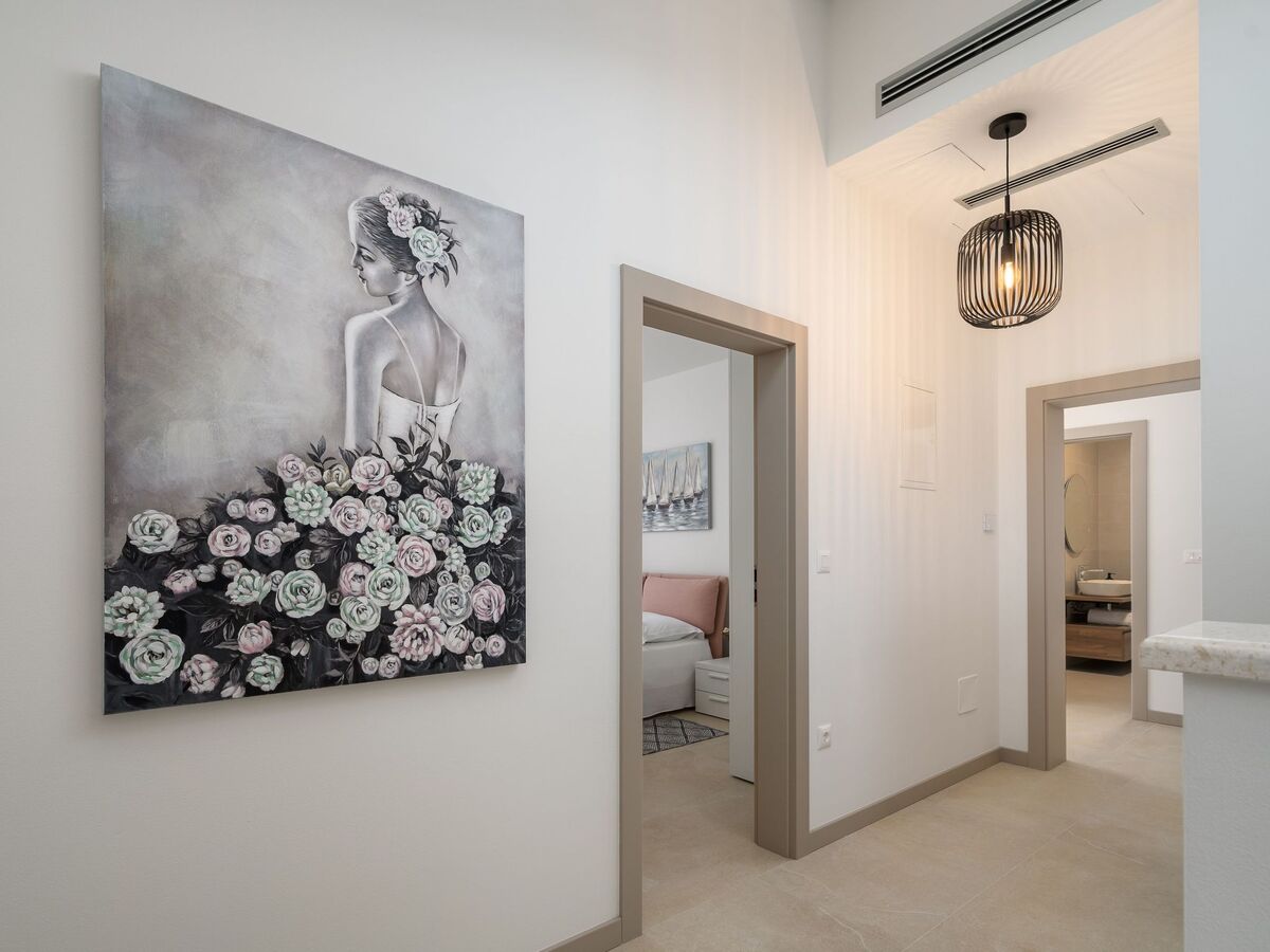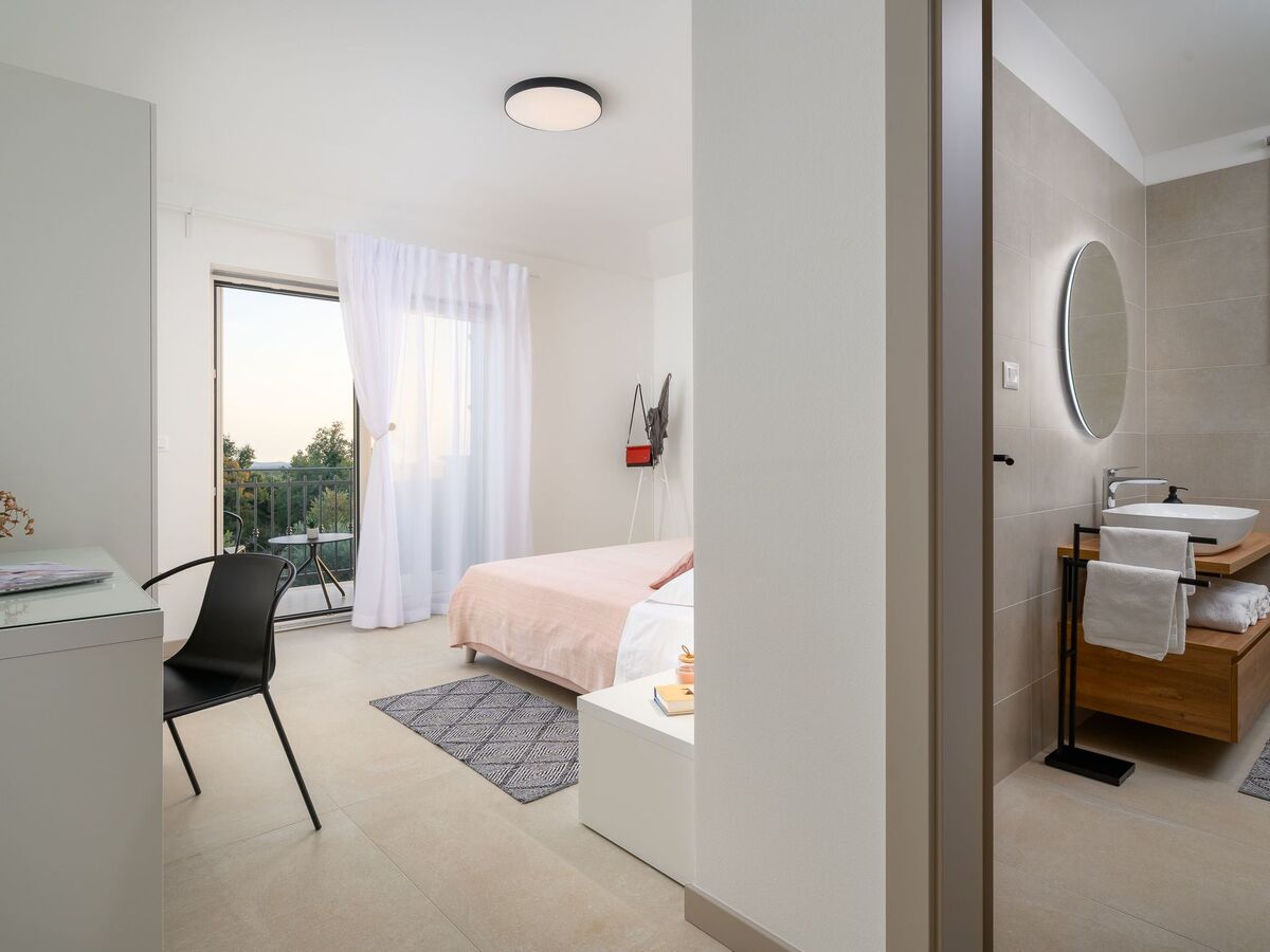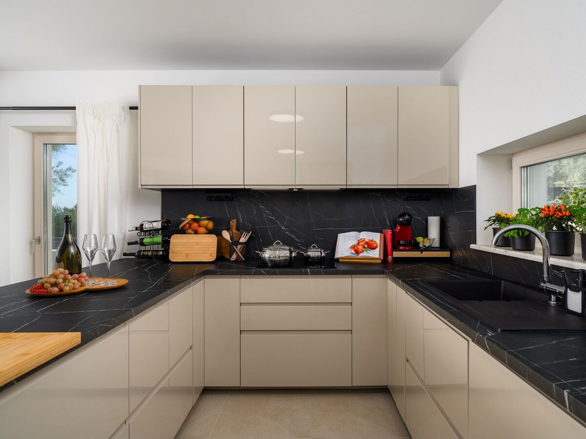 Located in the peaceful village of Jurcani, the villa is surrounded by lush greenery, olive trees and forests, offering a peaceful retreat away from the hustle and bustle.