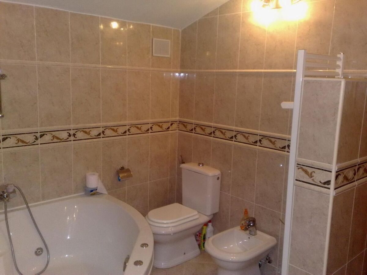The ground floor has a living room with a rustic ceiling, with a fireplace, air conditioning, leather sofas and a flatscreen TV with satellite channels.