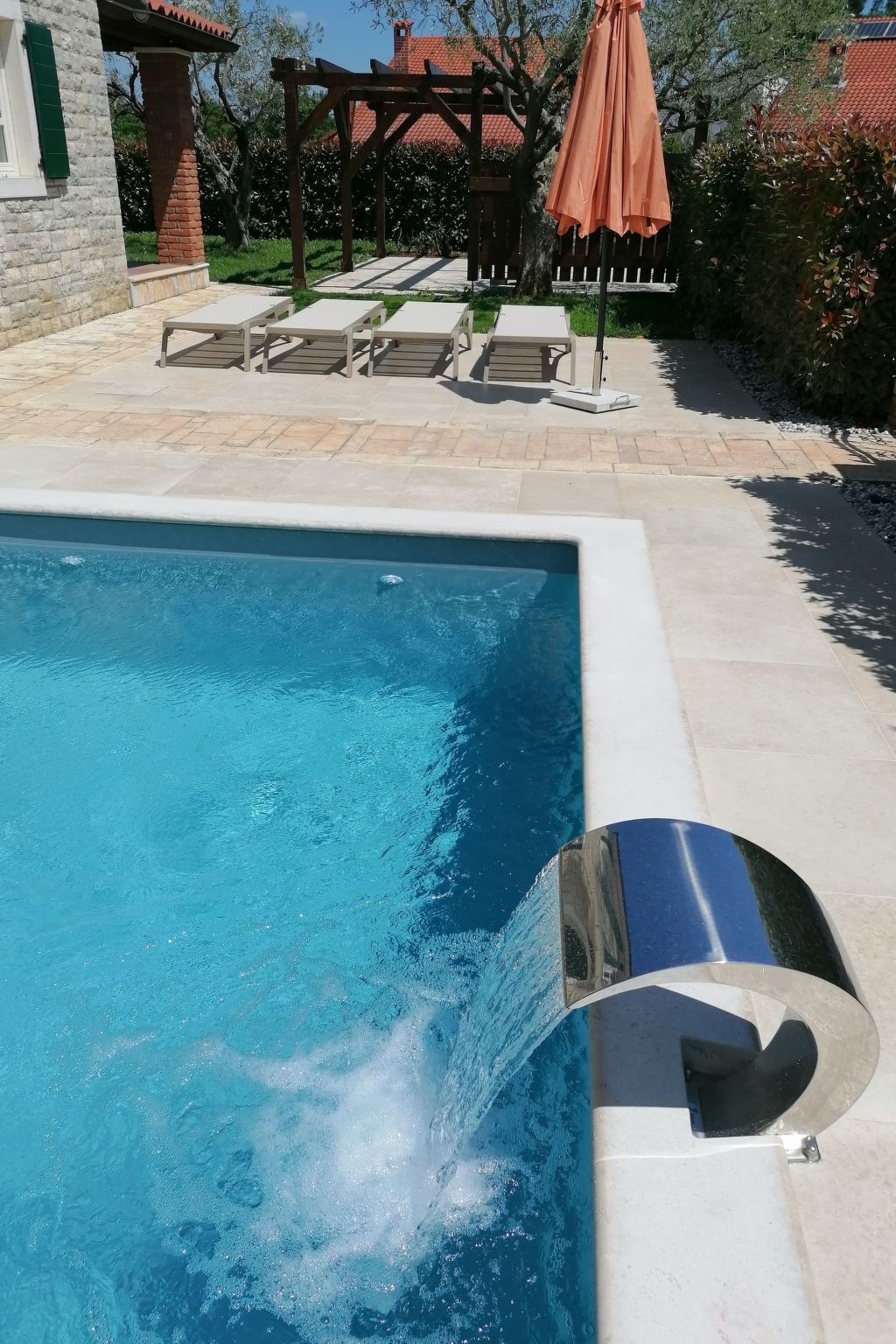 The 122m² modern holiday house is in Bujici, a green suburb of Porec, just 3km away.