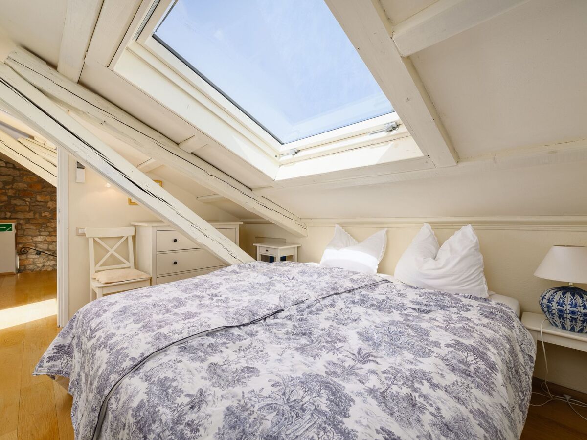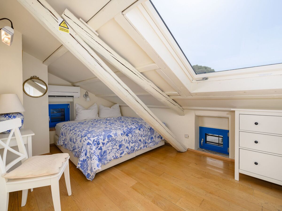 On the top floor there are two further bedrooms with double beds and panoramic views of the sea and the green hinterland.