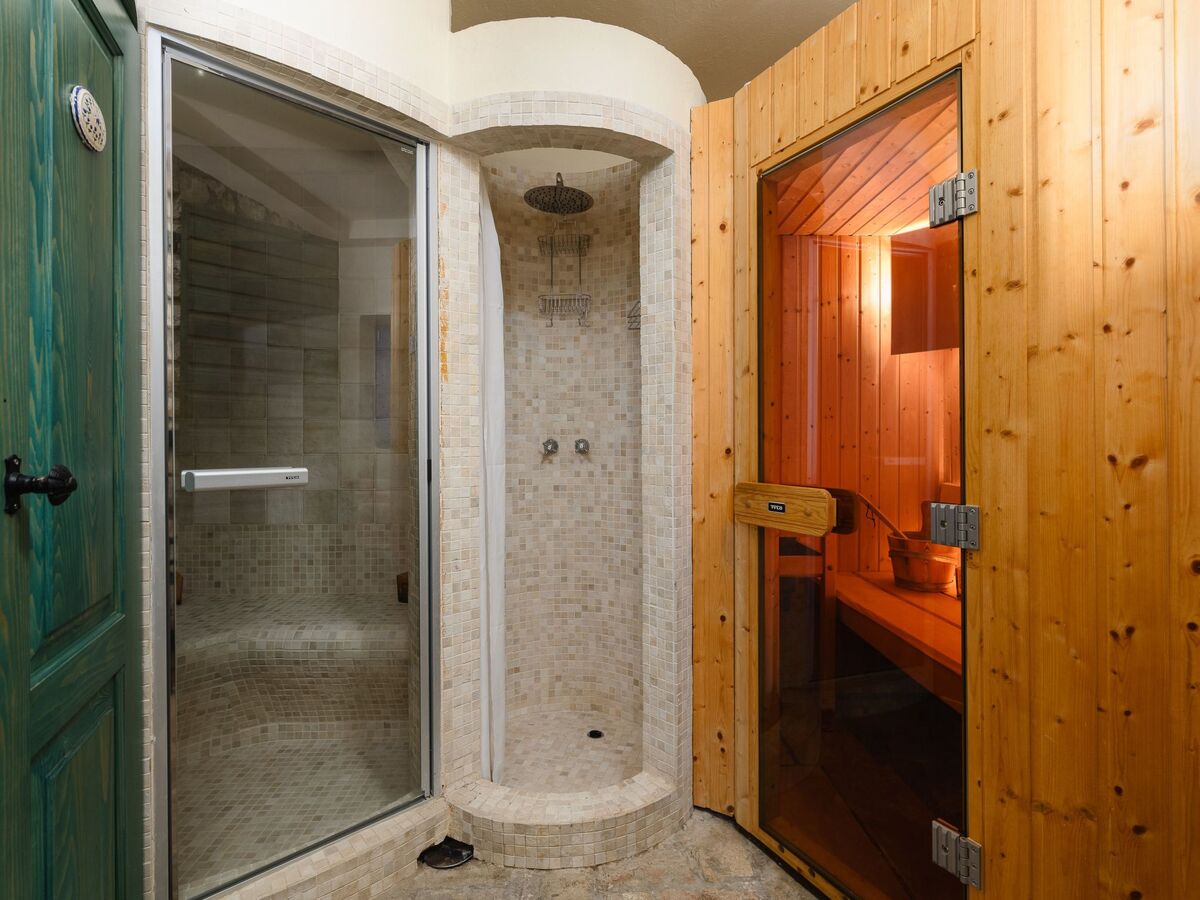 On the ground floor of the house there is a spacious living room with fireplace and satellite TV, a fully equipped kitchen with dining table, as well as a Finnish sauna, Turkish steam bath with shower and a separate toilet.