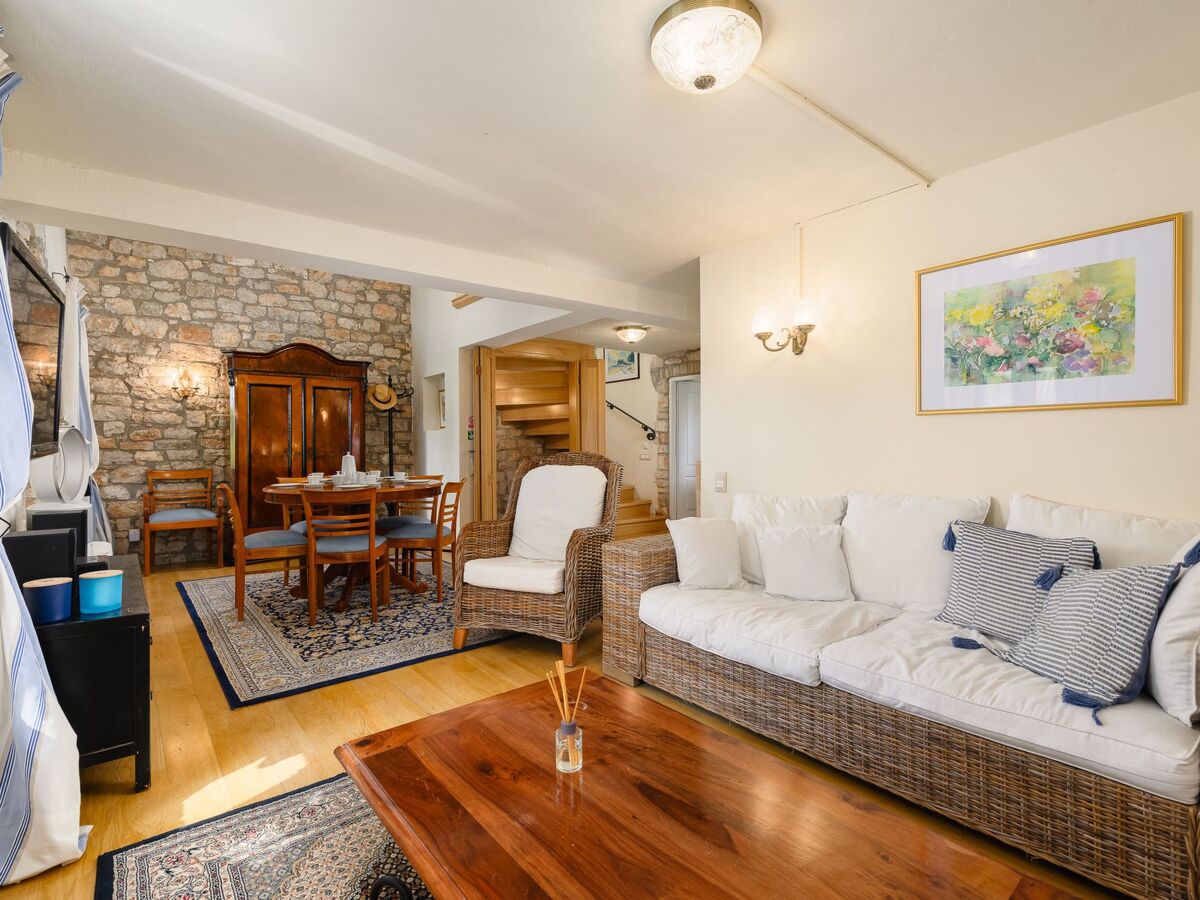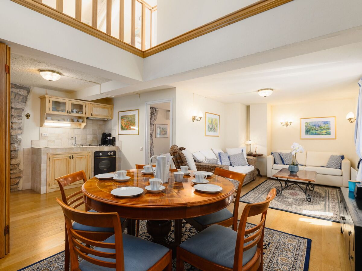 On the 1st floor there is a living room with kitchenette, dining room and sitting area - all in one room with access to a covered balcony with seating and beautiful views.