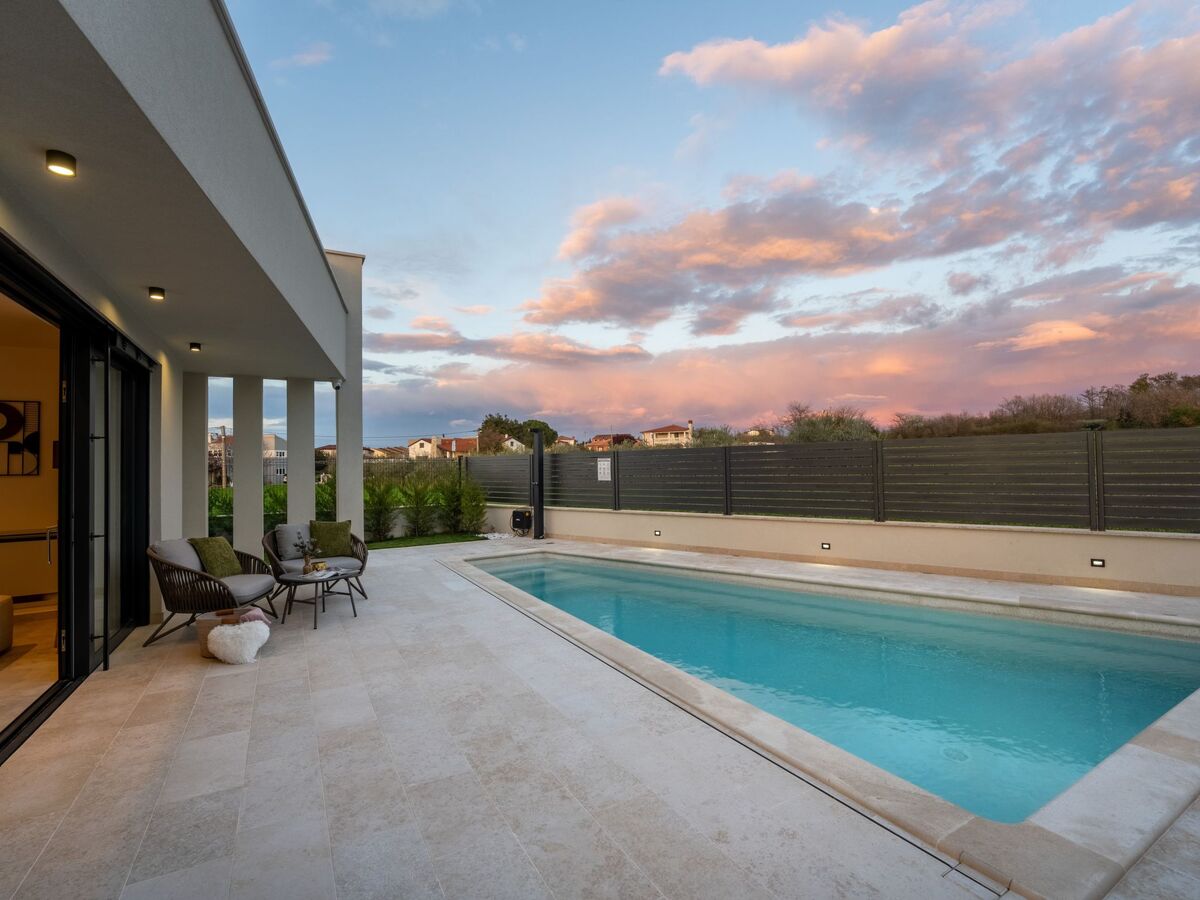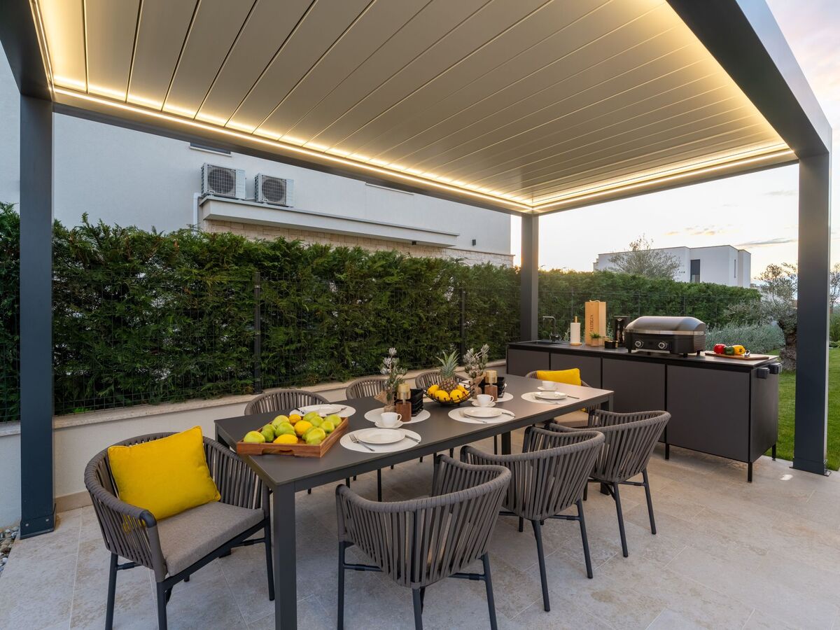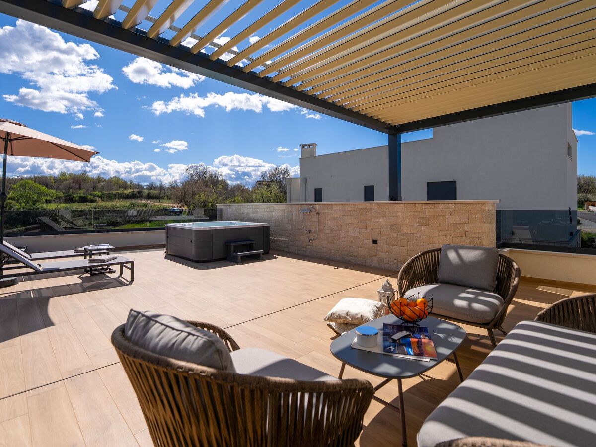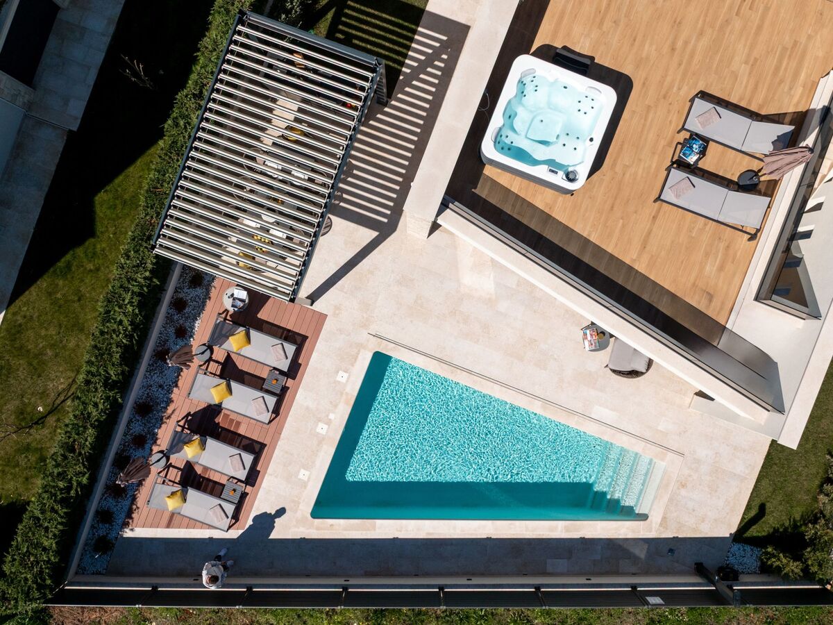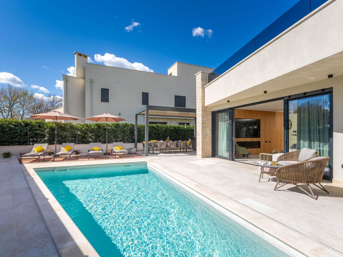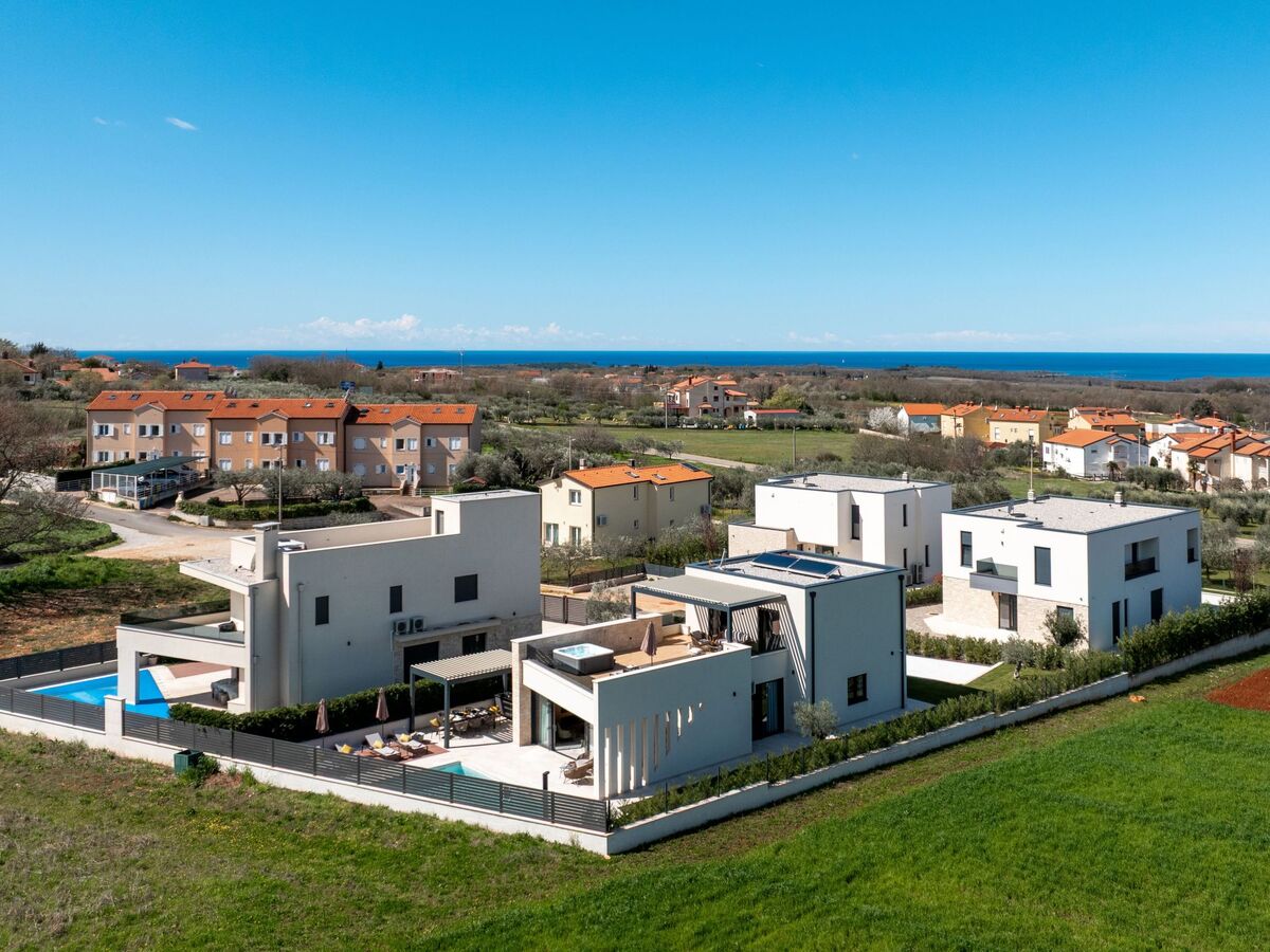 La Villa Pelin Exclusive est une maison de vacances moderne et luxueuse située en bordure du quartier résidentiel calme de Stranici, à seulement 4,5 km de la plage et à 10 minutes en voiture de Porec.