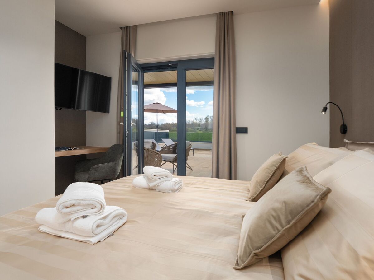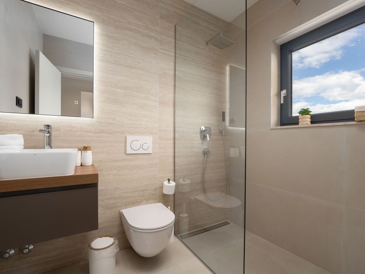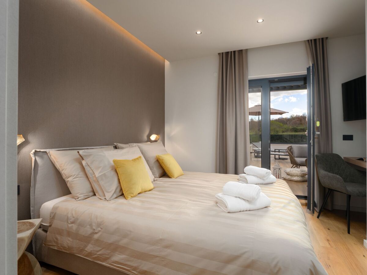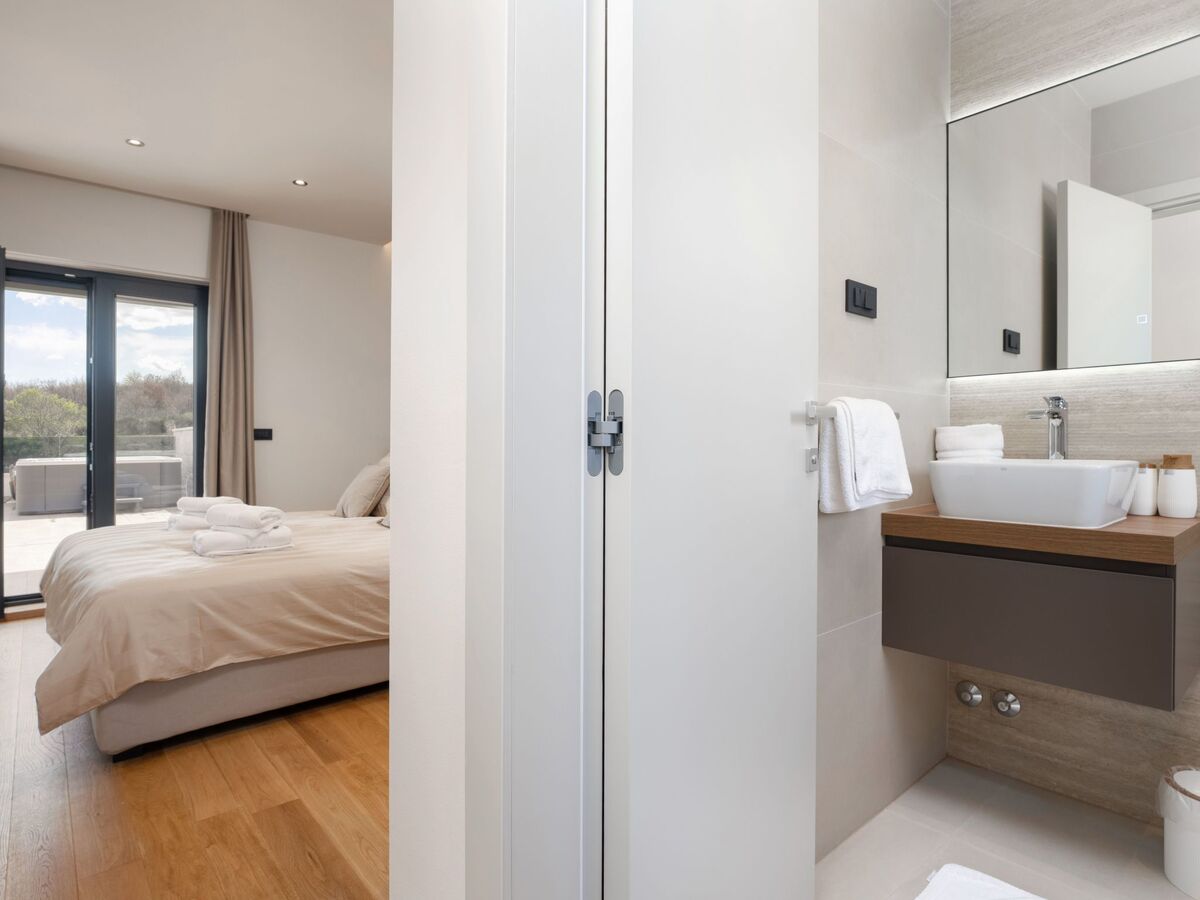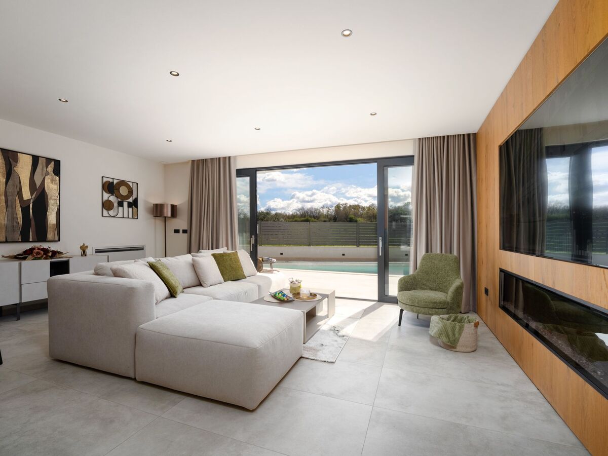 La Villa Pelin Exclusive est une maison de vacances moderne et luxueuse située en bordure du quartier résidentiel calme de Stranici, à seulement 4,5 km de la plage et à 10 minutes en voiture de Porec.