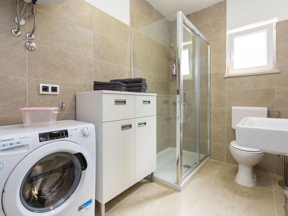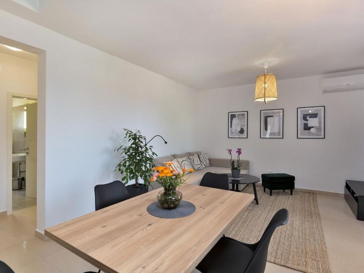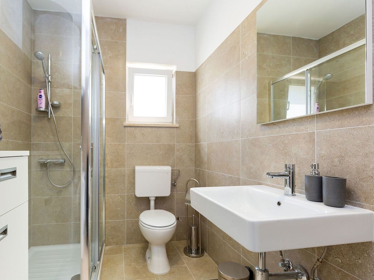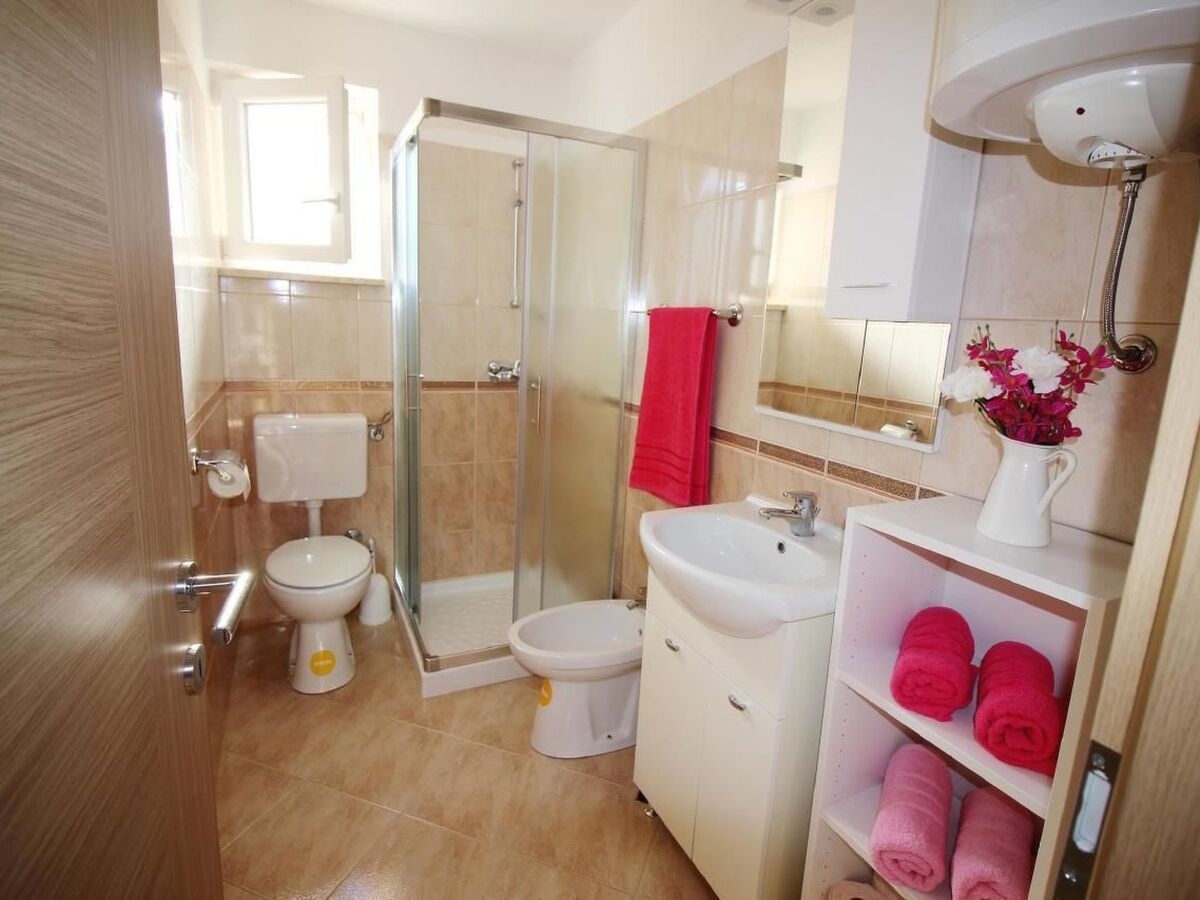 In the upper part of the house is the modern flat for 4-6 persons and consists of a living room with fully equipped kitchen, dining table, pull-out couch and covered balcony with beautiful sea view, two bedrooms and bathroom with shower/WC.
