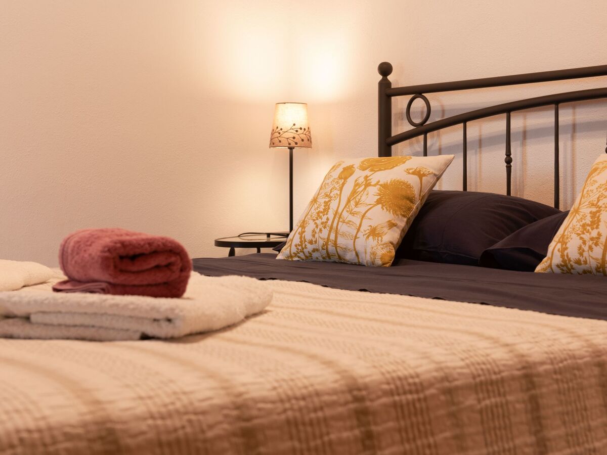 The third bedroom has two 90 cm x 200 cm single beds which you can push together to make a double bed.