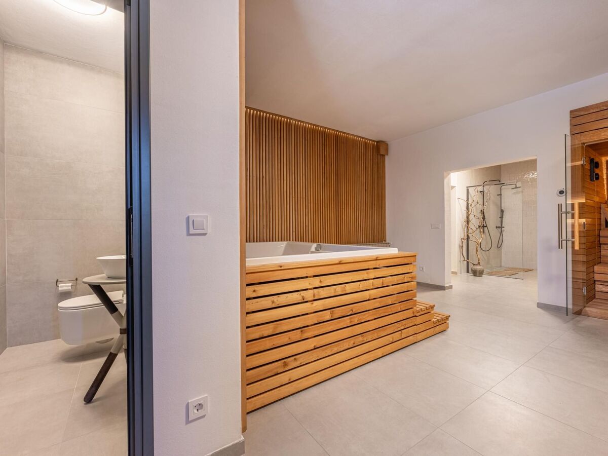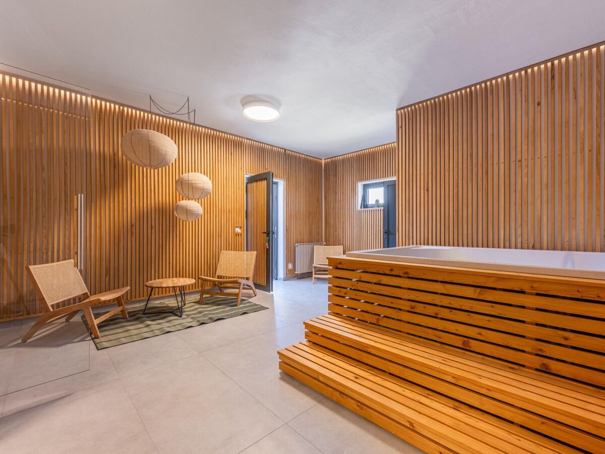 Indulge in the ultimate relaxation in the spa in the villa's basement, featuring a sauna, indoor jacuzzi, and shower.