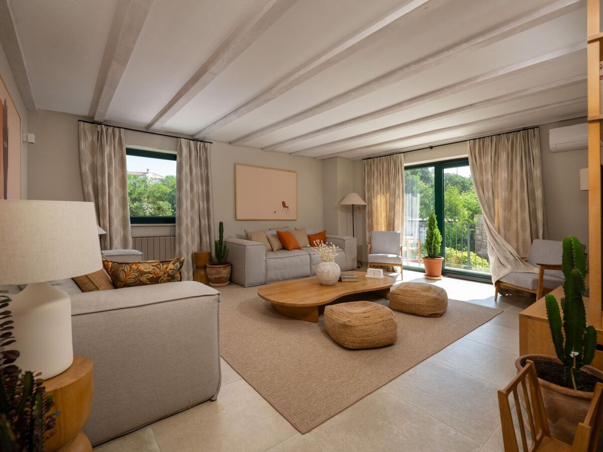 Step into the living room, where contemporary design meets elegance with its neutral color palette and stylish furnishings.