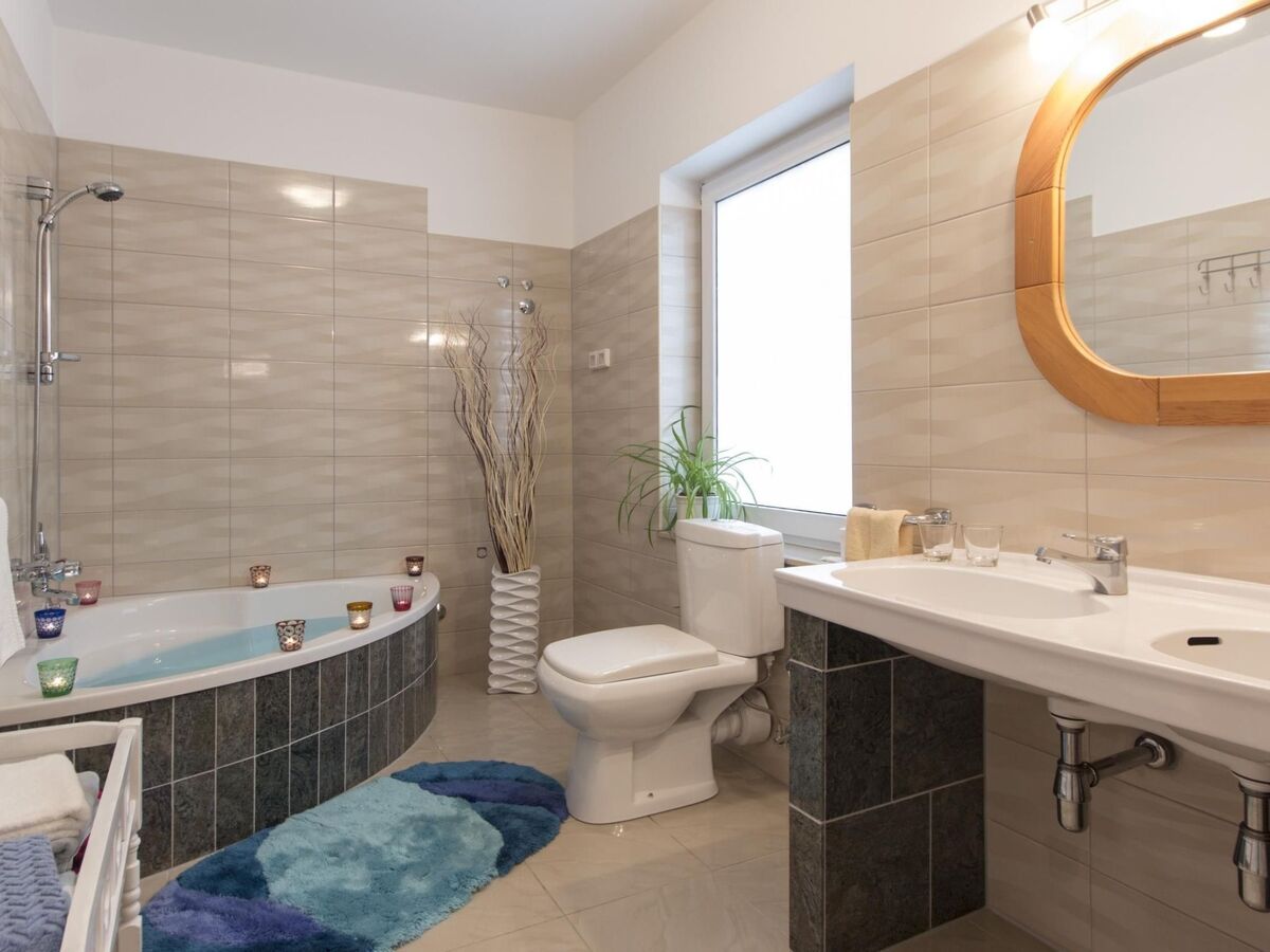 Au rez-de-chaussée, se trouvent deux chambres à coucher / grands lits, un grand coin repas, une cuisine séparée et un couloir avec une entrée.