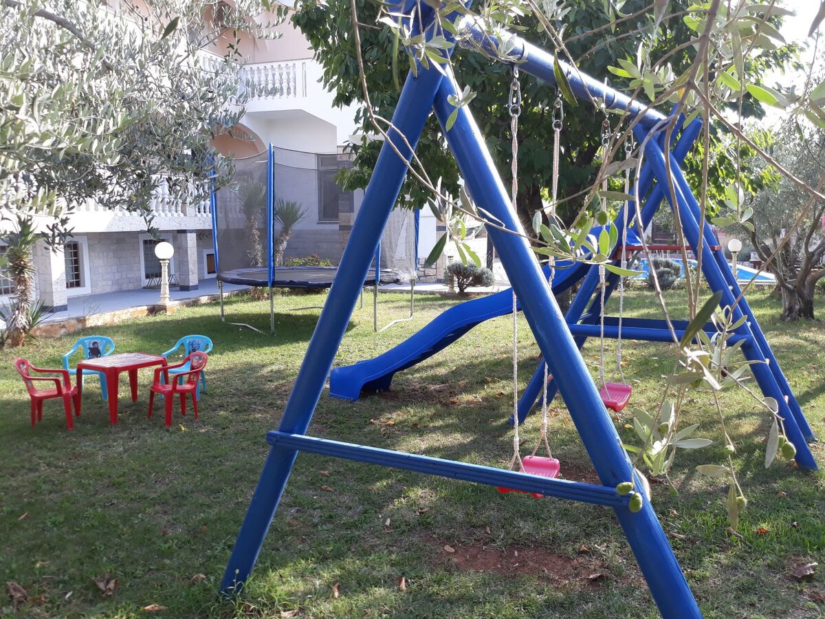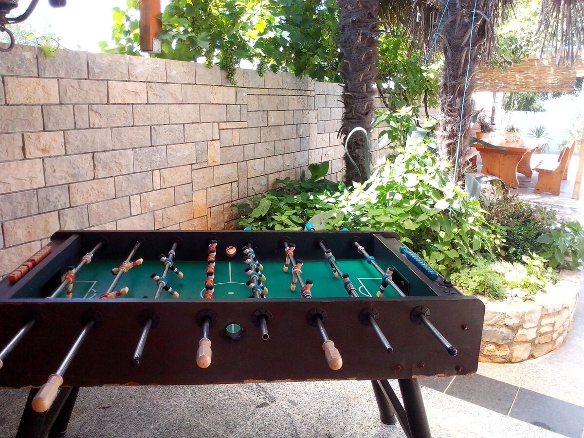 On trouve également sur le terrain une table de ping-pong, un baby-foot, un panier de basket, un trampoline et une balançoire.