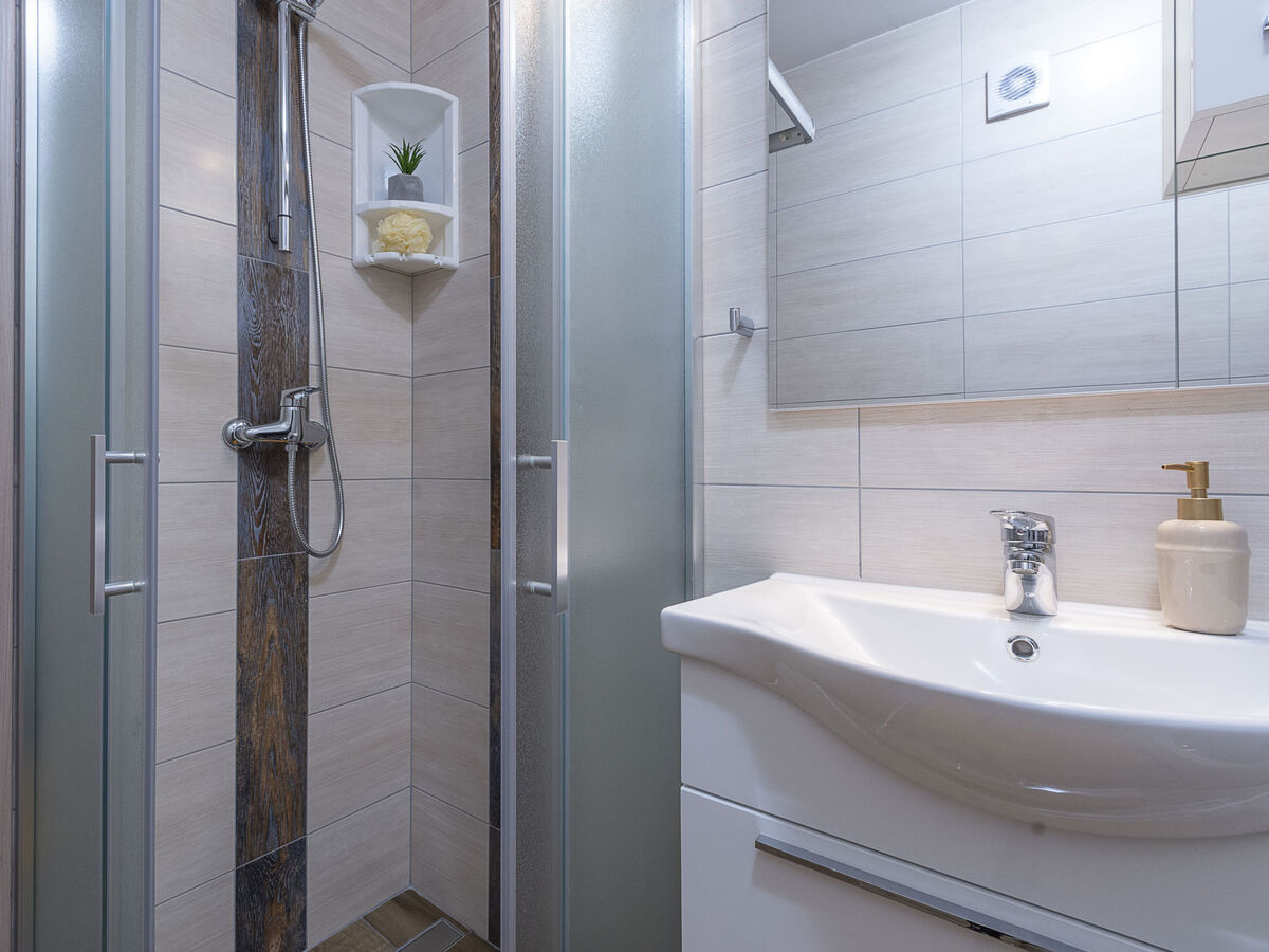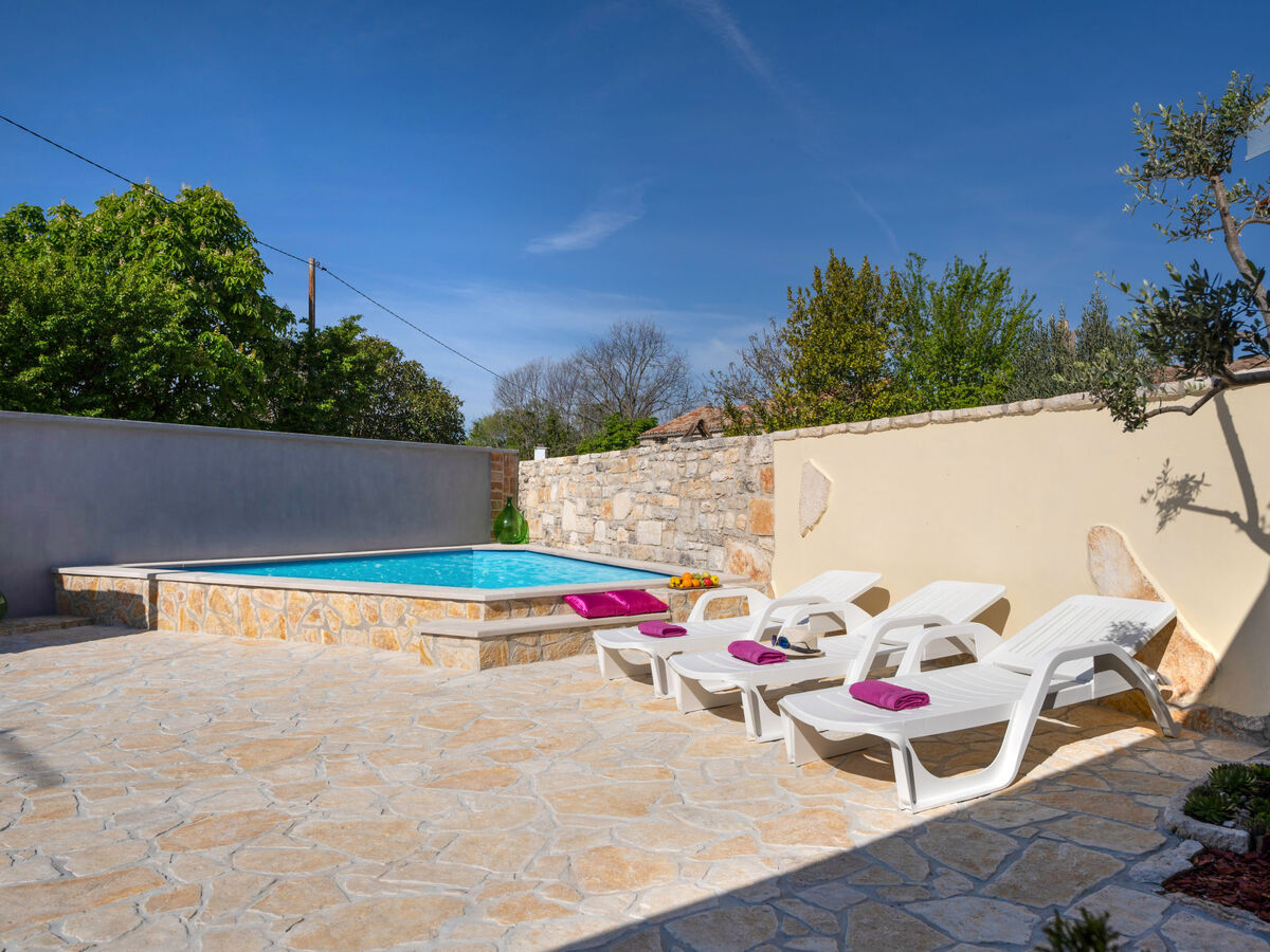 A usage privé: terrain 120 m2 (clôturé), piscine (18 m2, profondeur 140 cm, disponibilité saisonnière: 01.Mai.
