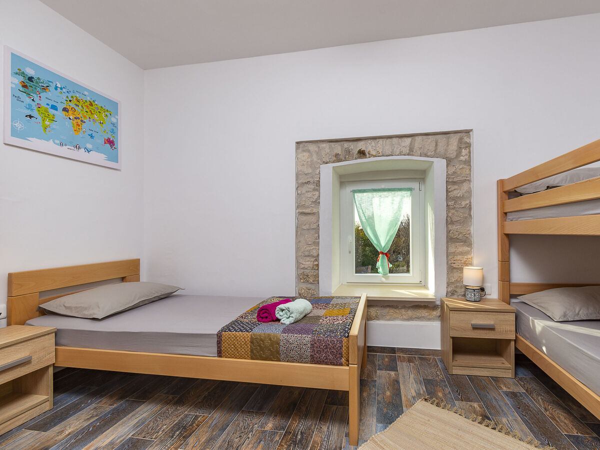 1 chambre avec 1 lit (90 cm, longueur 200 cm), 1 x 2 lits superposés (90 cm, longueur 200 cm), air-conditionné.