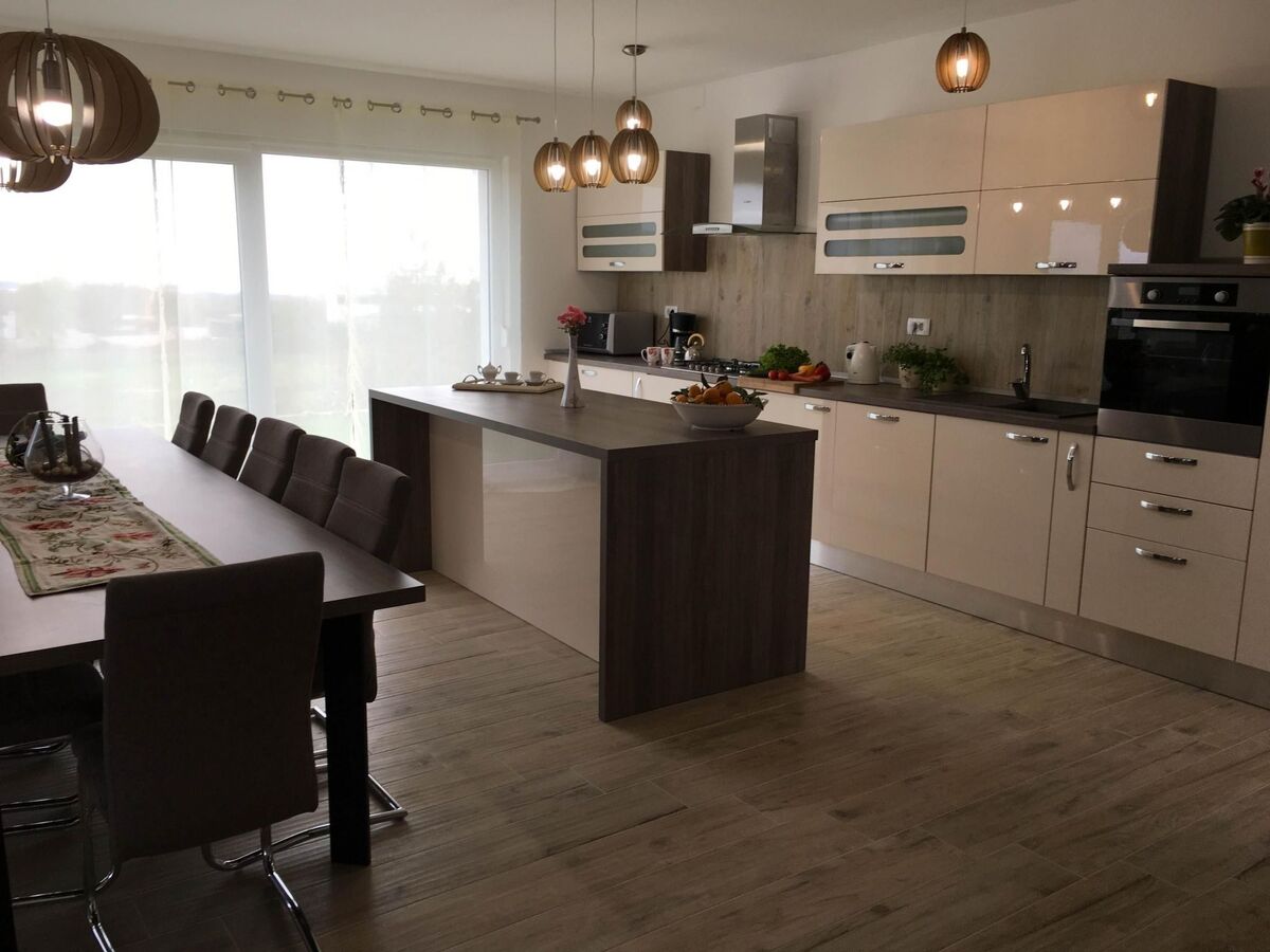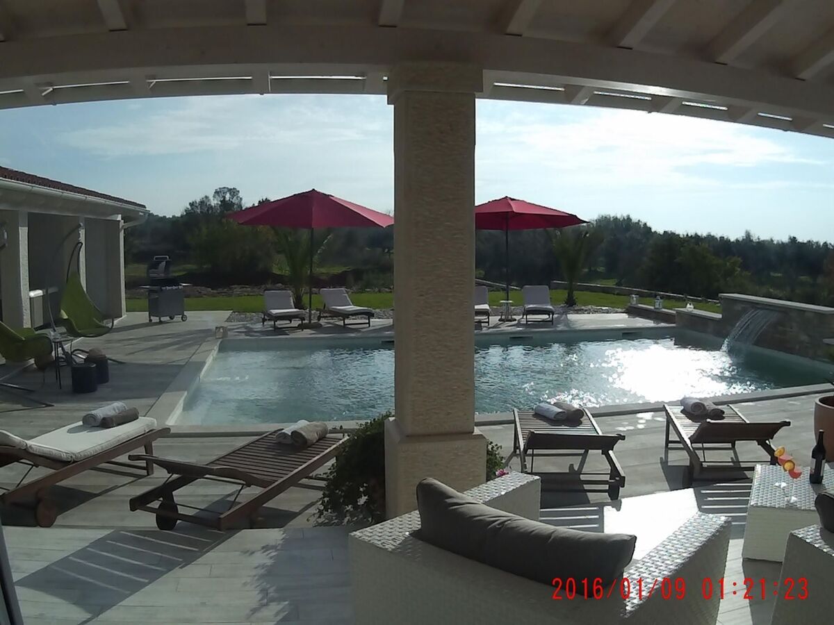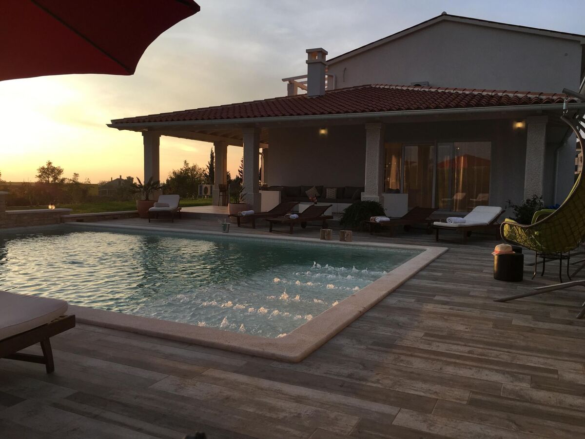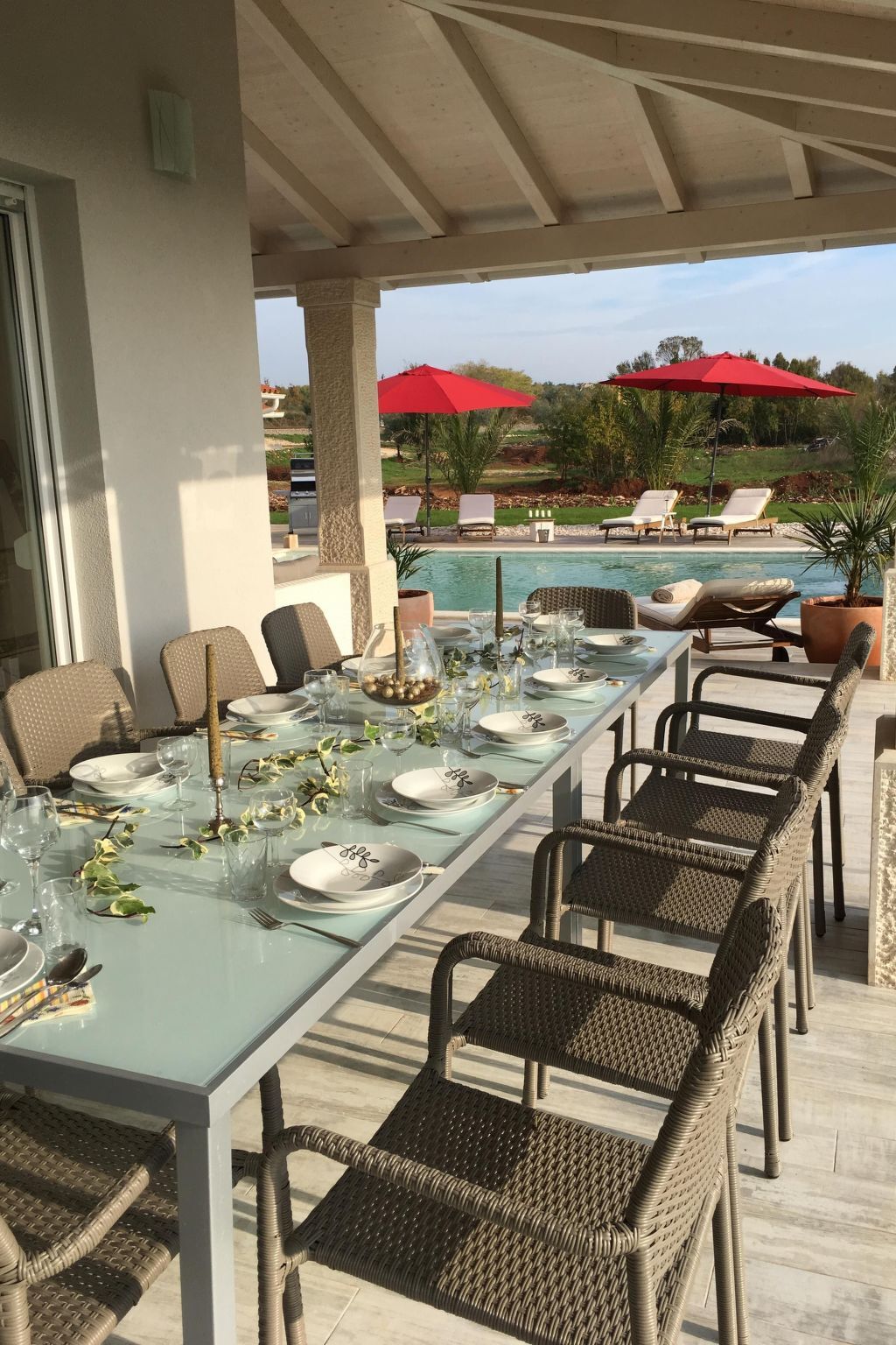 This fabulous white villa lies in Vodnjan, on the southern tip of the Istrian peninsula, near Pula, affording a view of the sea and the Brijuni Islands.