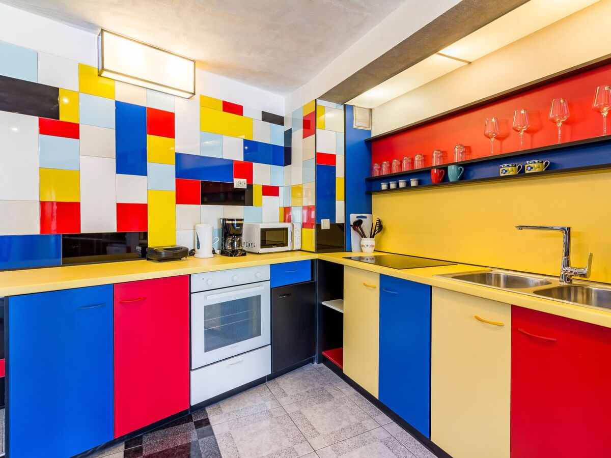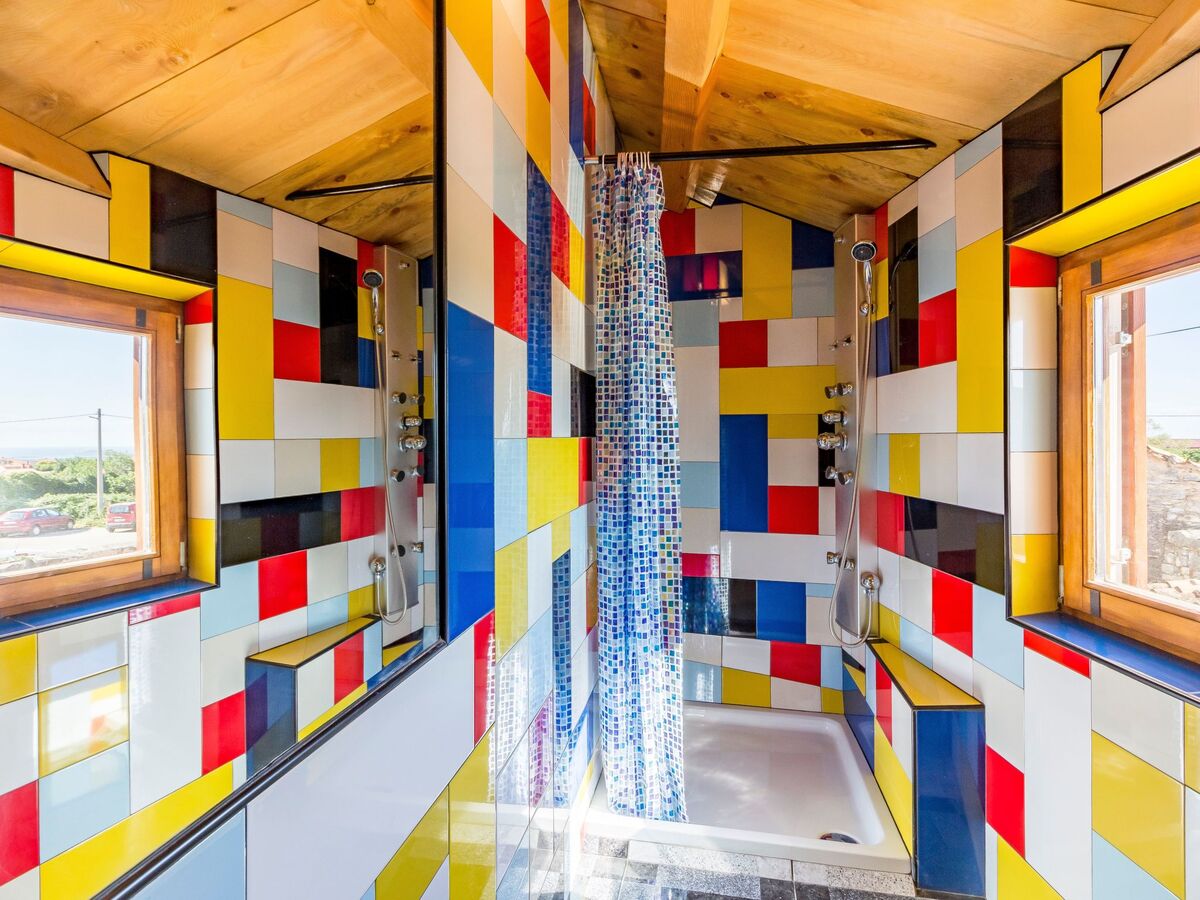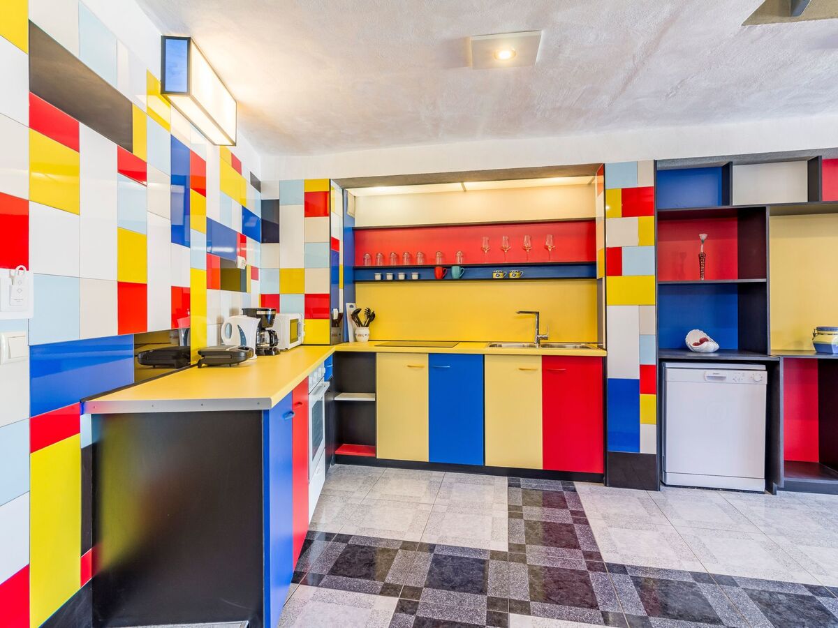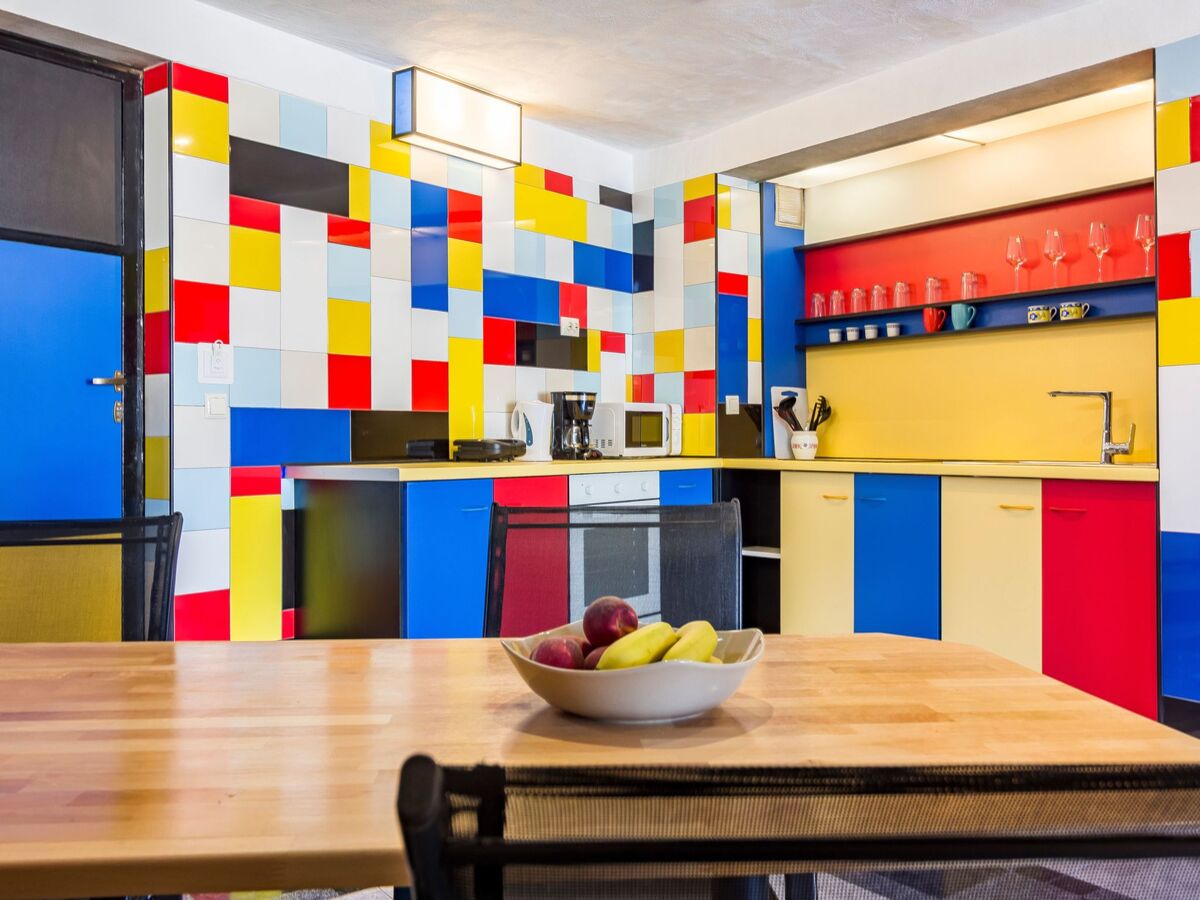 The holiday house provides 65m² of living space comprising two bedrooms, two bathrooms, and a kitchen and living room for four people, whereby the design à la Mondrian is realised individually in each room.
