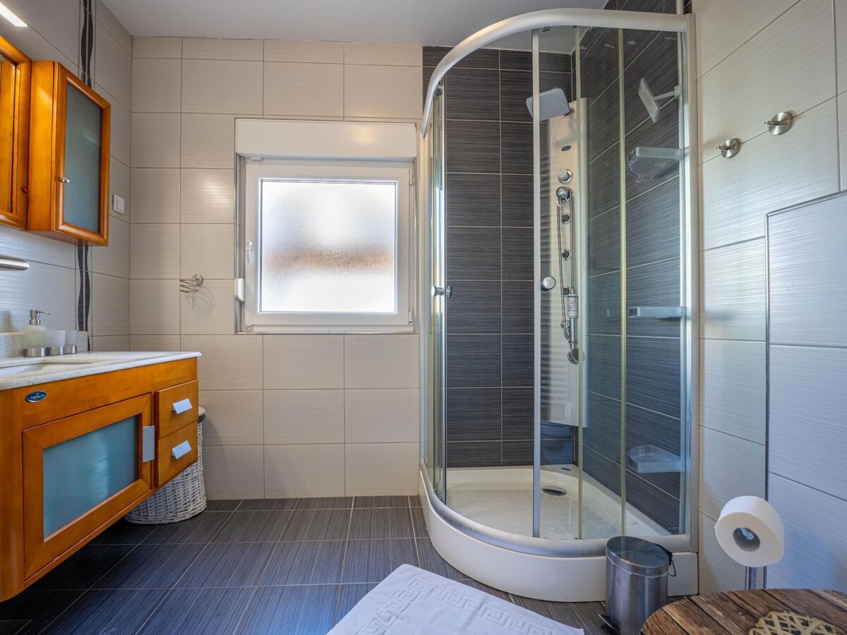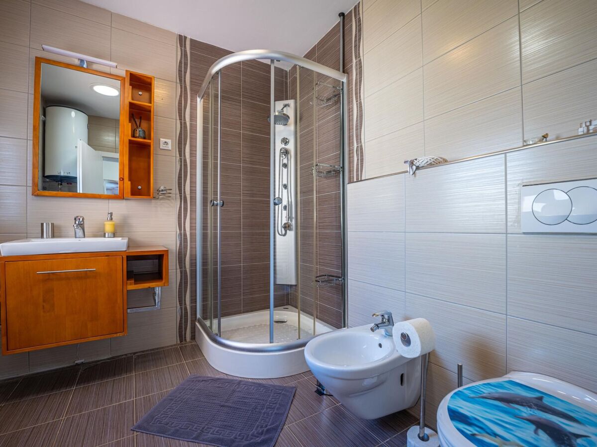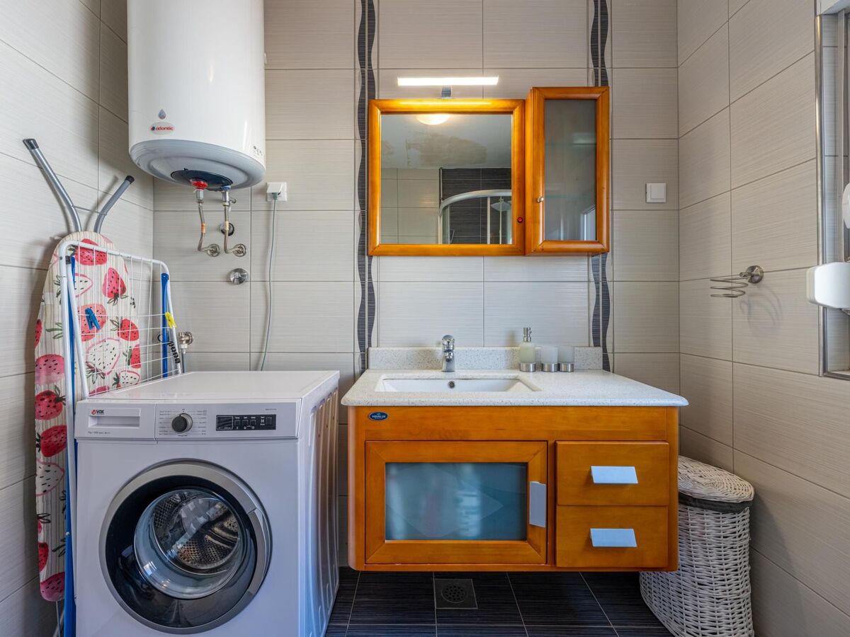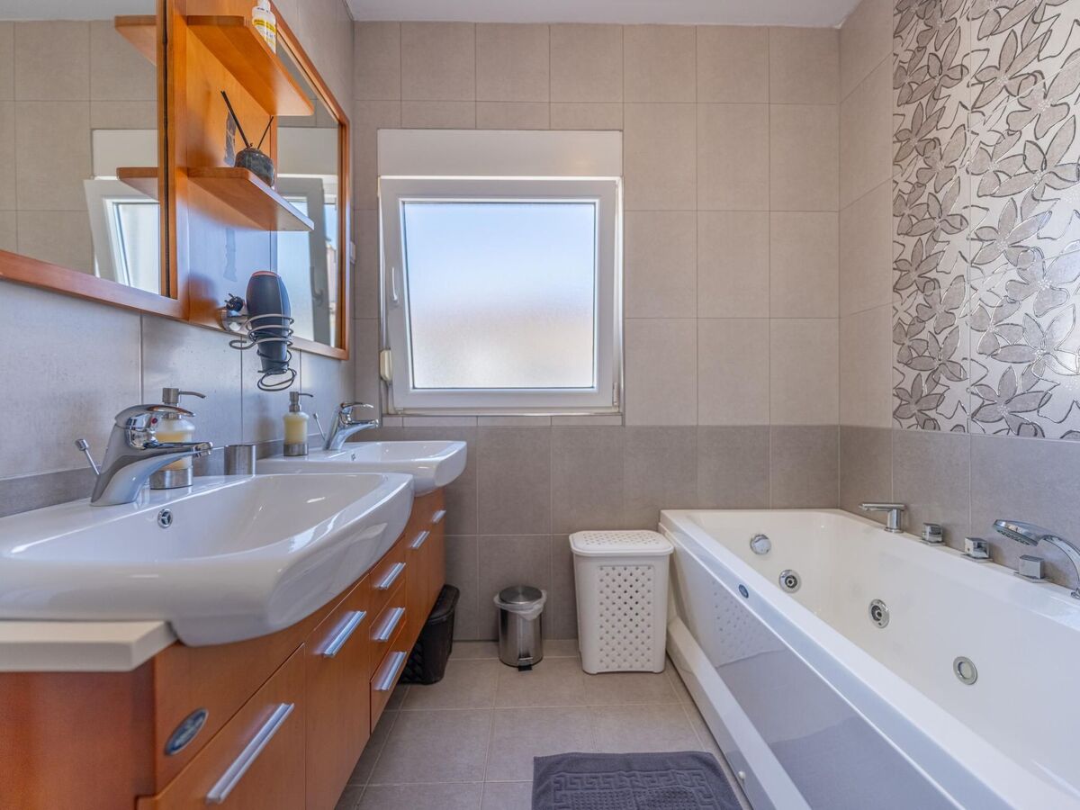 The interior of the house, which covers 185 m2, consists of 4 bedrooms with double beds, 3 spacious bathrooms